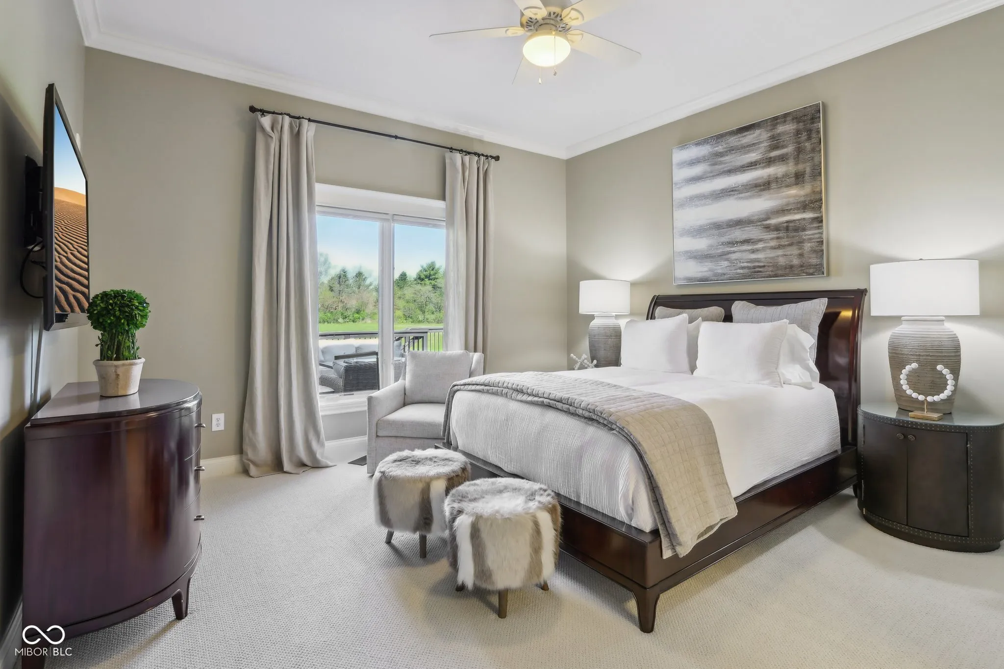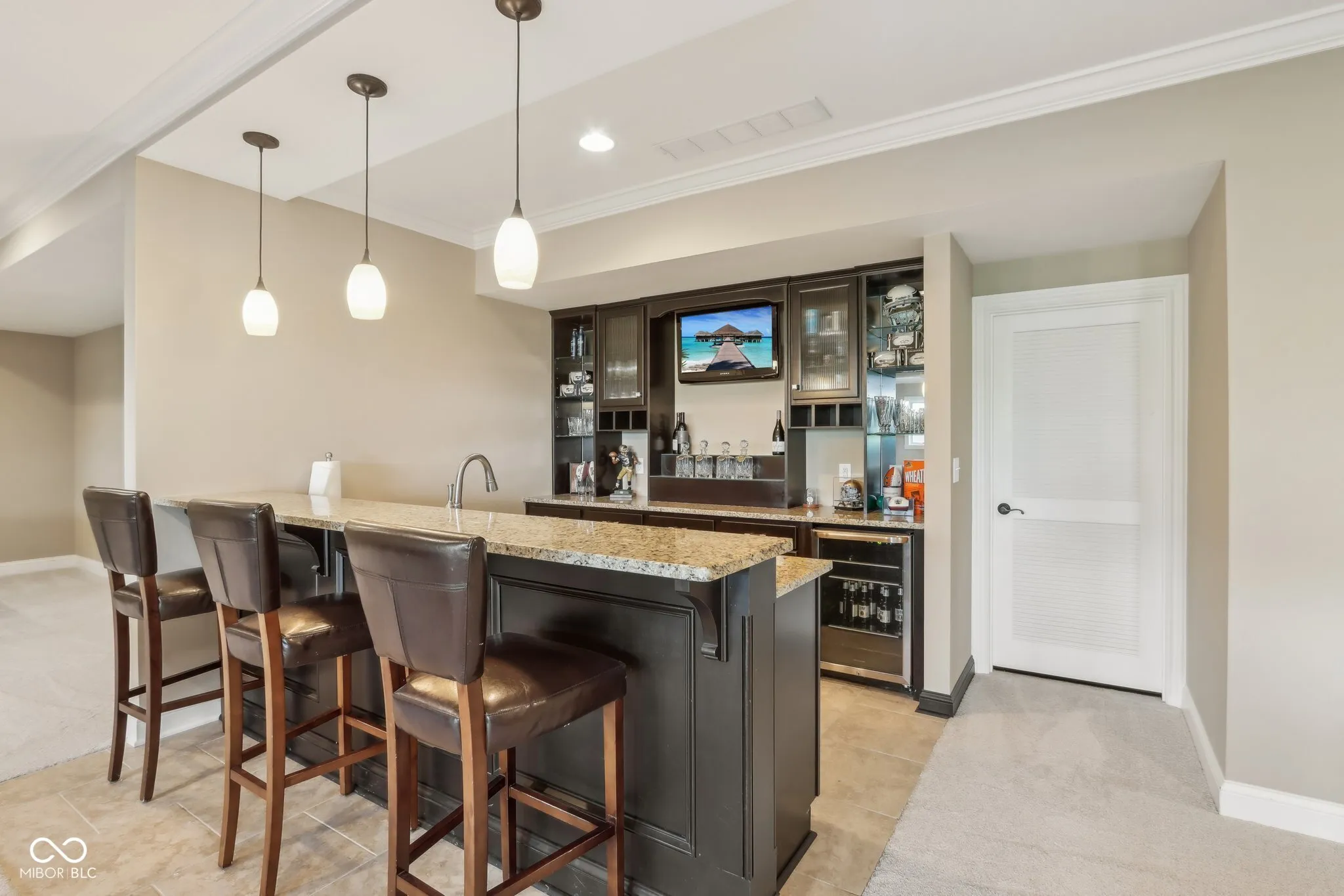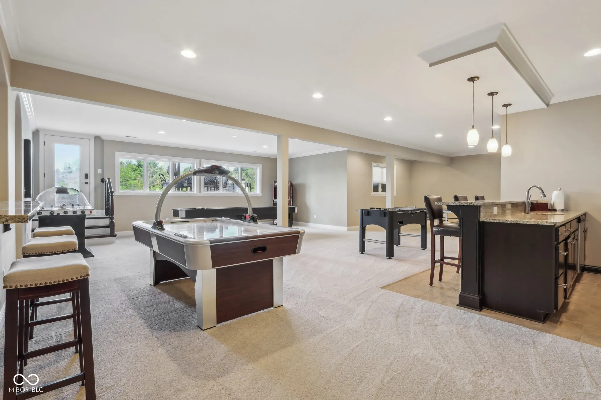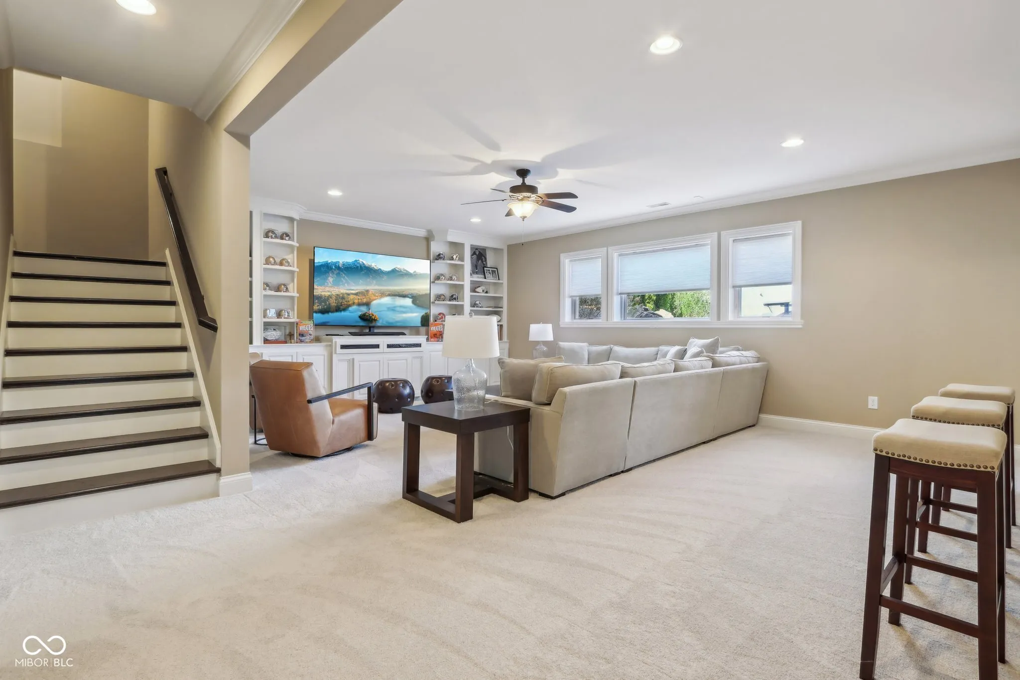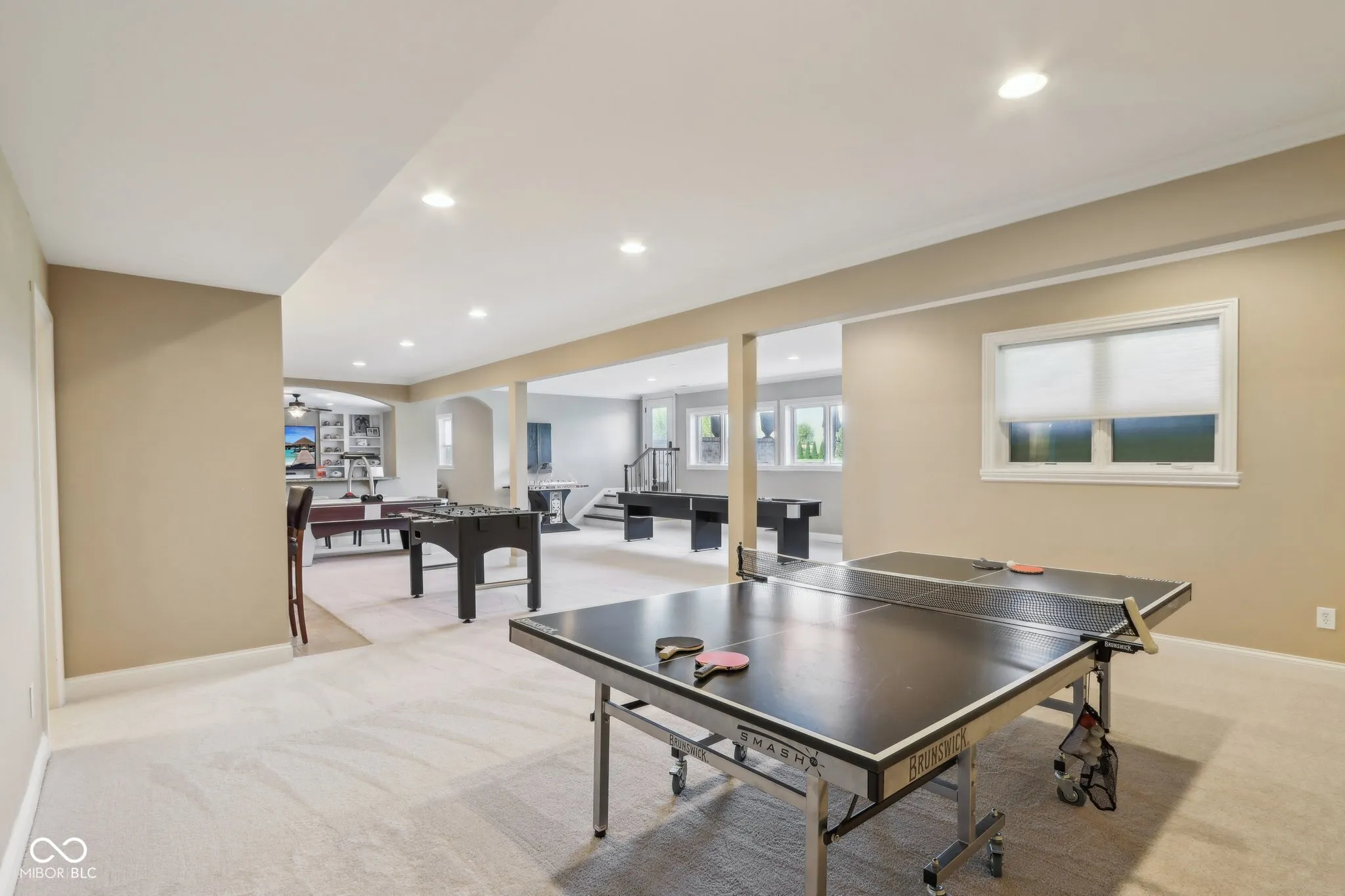 Prepare to be impressed by this exquisitely crafted and meticulously maintained 5-bedroom, 6.5-bath luxury home, offering over-the-top elegance and comfort in every detail. From the moment you step into the grand two-story foyer, you’ll be captivated by the open, light-filled floor plan and extensive custom millwork throughout. The heart of the home is the show-stopping great room featuring a dramatic two-story stone fireplace, gorgeous coffered ceiling, and custom built-ins. Entertain in style in the formal dining room or relax in the cozy hearth room with stunning views of the expansive green space behind the home. The chef’s kitchen is a dream with granite counters, top-tier GE Monogram appliances, including a newer 48″ built-in fridge, double ovens, gas cooktop, wine fridge, hot water pot dispenser, and breakfast bar seating. The main level also features a private guest suite, elegant home office with French doors and built-ins, and gleaming hardwood floors. Upstairs, you’ll find a spacious primary suite with sitting area, fireplace, new luxury vinyl plank flooring, and spa-like bath with whirlpool tub, dual-head tiled shower, granite vanities, and oversized walk-in closets. Three additional bedroom suites each offer private baths and walk-ins, plus a bonus library with custom shelving and a convenient upper-level laundry room. The finished walkout lower level is a true retreat with new carpet, large family and rec spaces, full bath, custom wet bar, exercise room, and a home theater with tiered seating and surround sound. There’s also room to add a 6th bedroom with an existing egress window. The outdoor living is just as impressive with an upper-level deck, and lower-level paver patio with built-in grill station, hot tub, and wood-burning fire pit. 4-car garage, irrigation, and professional landscaping complete this truly exceptional property. Walking path to West Park directly across the street!