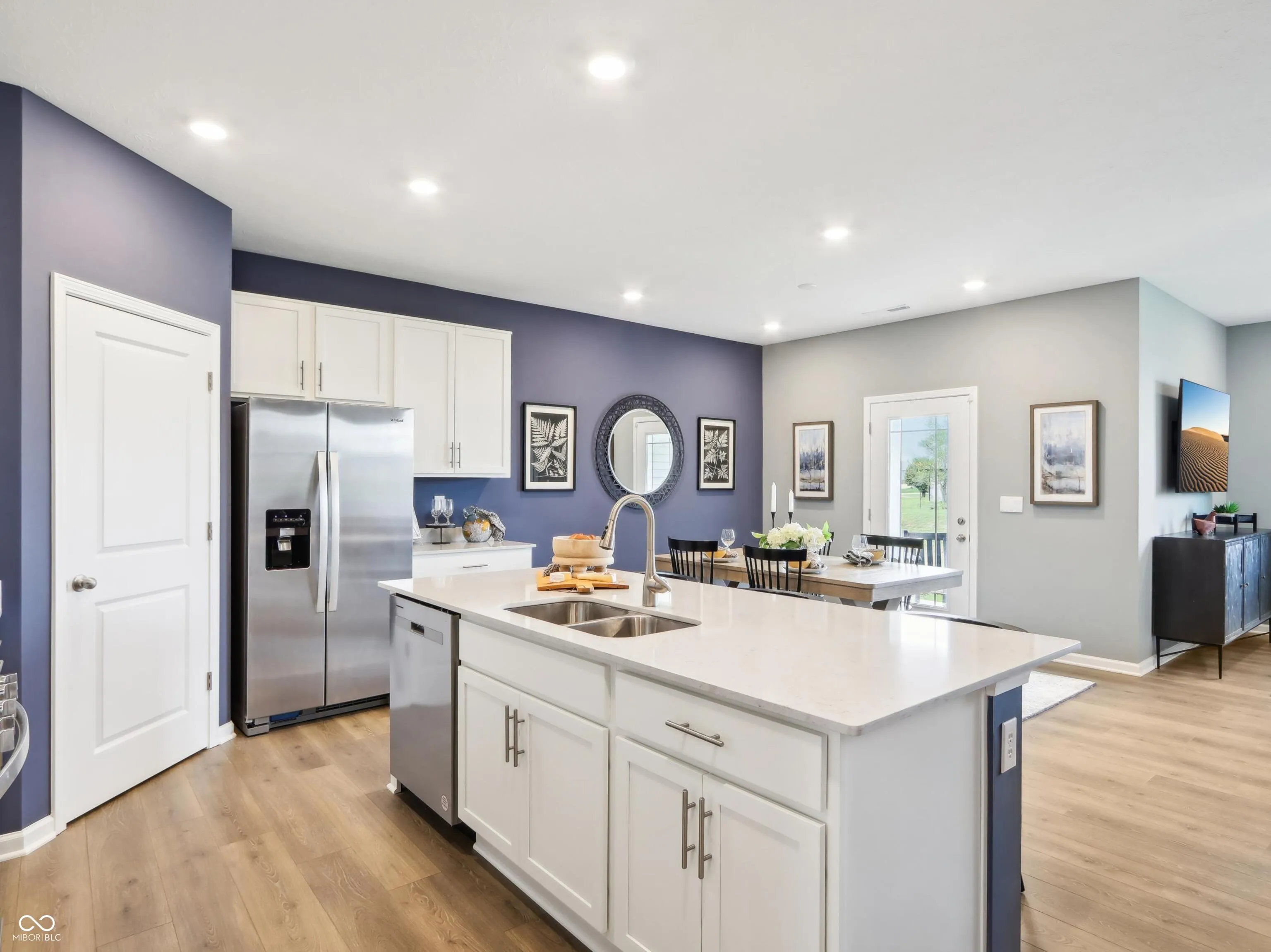Step into the epitome of modern living with this exquisite former model home by D.R. Horton, nestled in the prestigious Saddlebrook Farms North. The Chatham design artfully combines elegance and functionality, offering four spacious bedrooms and two luxurious baths, all within a single-level, open-concept layout. Revel in the effortless charm of solid surface flooring that stretches across the main living areas, ensuring both style and easy upkeep. At the heart of the home, a chef’s dream kitchen awaits, complete with a stunning built-in island, gleaming white cabinetry, and sleek quartz countertops-perfect for hosting culinary adventures. The primary suite is a tranquil retreat located at the home’s rear, featuring a generous walk-in closet and an opulent bath for ultimate privacy. Step outside to the inviting covered patio, an ideal setting for memorable gatherings with loved ones. Embrace cutting-edge convenience with America’s Smart Home Technology, including a smart video doorbell, Honeywell thermostat, Amazon Echo Pop, smart door lock, and the Deako light package. Here, modern sophistication meets everyday comfort in a home that truly has it all. Take some time out to enjoy the community walking trails and the expansive green space. This ideal location offers new homes in Johnson County and the peacefulness of a small town and the convenience of living near major roads, shopping, dining and entertainment.
