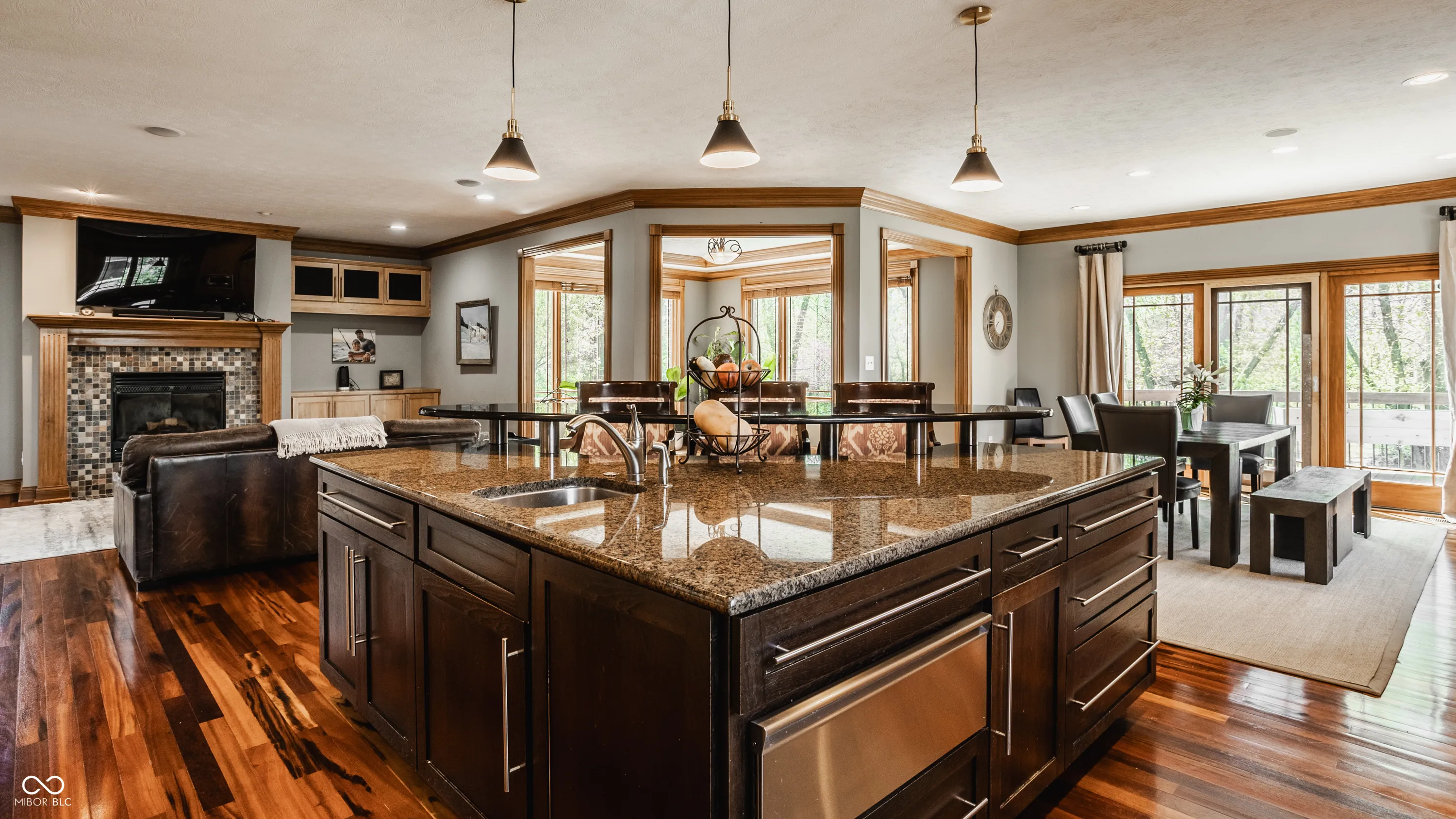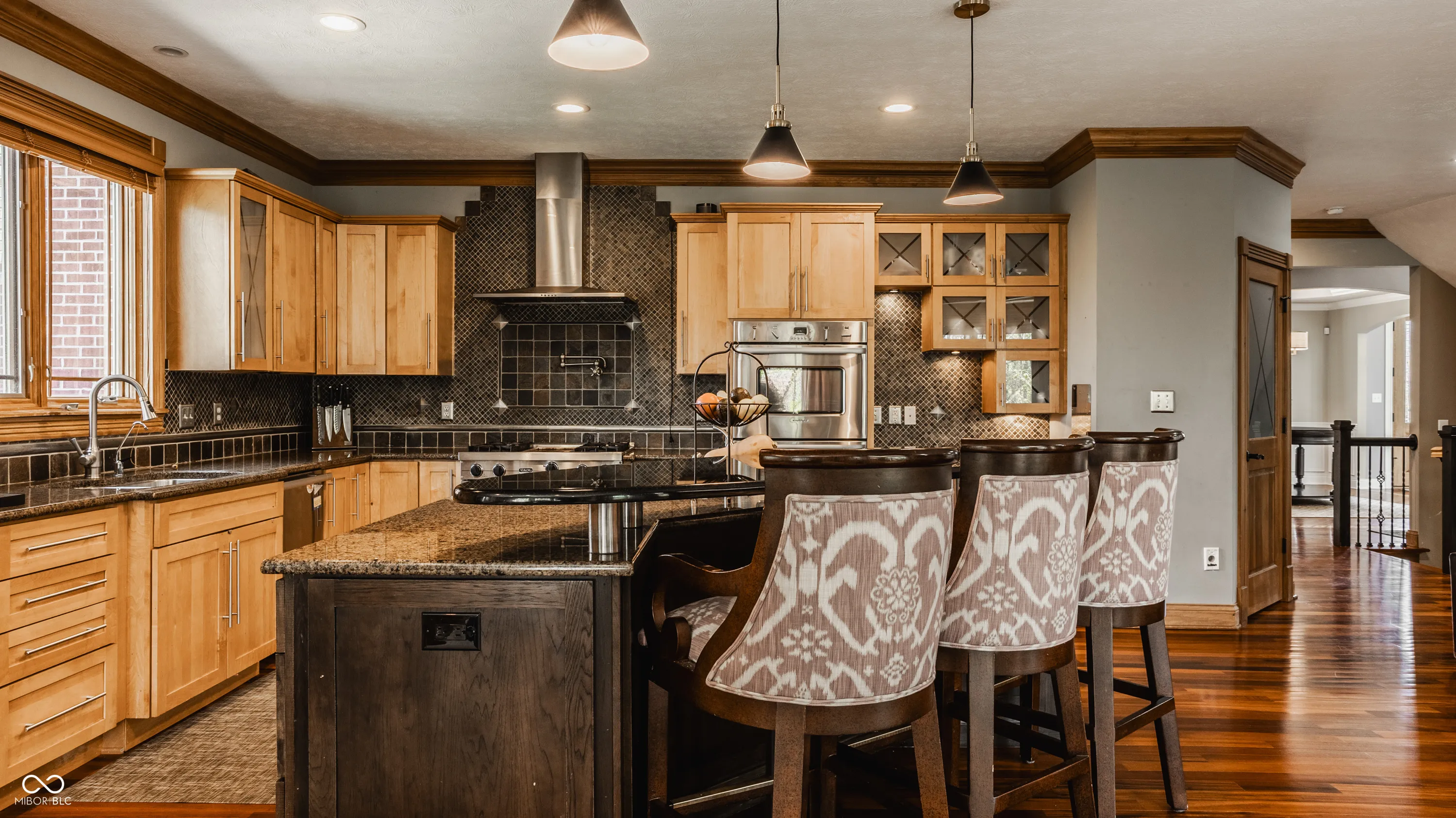 This elegant, expansive home in the Woods at Williams Creek truly has every element one could wish for in a perfect home. From it’s classic all brick front facade to its timeless light-filled interior, this home is just perfect. The main floor of the expansive 8,000+ square foot home is open and inviting. The two story great room boasts floor to ceiling windows overlooking the exquisite rear yard and is warmed by a beautiful hearth. The kitchen is the centerpiece of the main level and is open to a cozy family room with fireplace, sun room, and breakfast room which opens to a large deck and screened porch. The kitchen is prepped for any chef with a large center island, Fisher and Paykel double ovens, Viking gas range, and Subzero refrigerator. The upper level primary suite also take full advantage of the view of the rear yard with a private sitting room and beautiful picture windows. The primary bath was recently renovated and is a wonderful retreat with a whirlpool bath, expansive shower, dual sinks and vanity. Also updated were the primary closets – perfect for keeping a busy homeowner organized! Entertaining is easy in the home’s walk out lower level with theater room, awesome rec room with full kitchen, and guest suite with bedroom and full bath with steam shower. Resting on a 1.16 acre parcel the lush lot rolls to Williams Creek behind. An infinity pool and spa are prepped and ready for you to enjoy all summer long and the pool house is open!