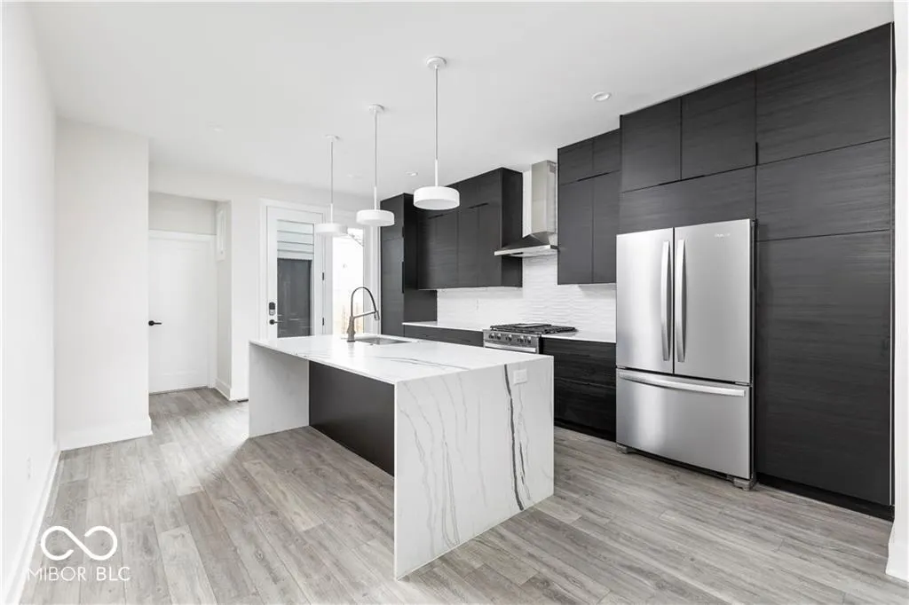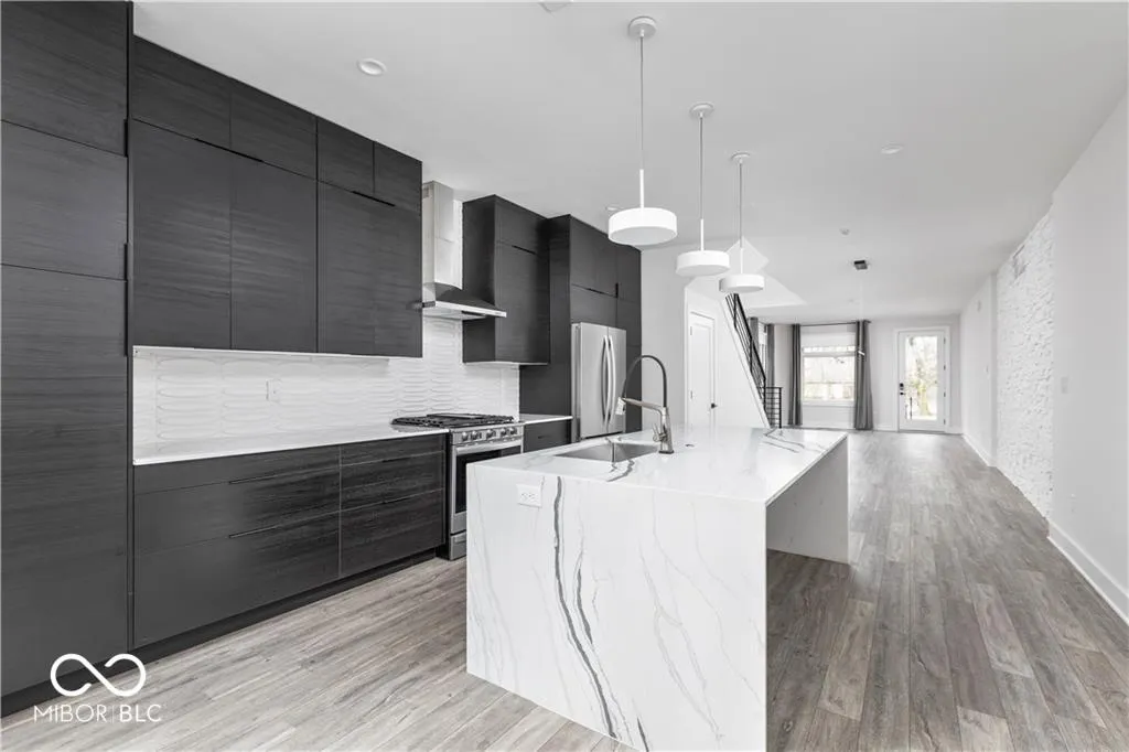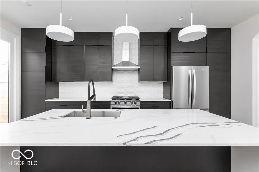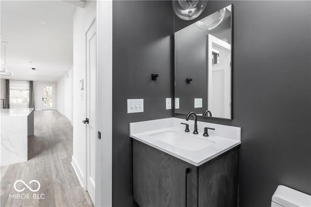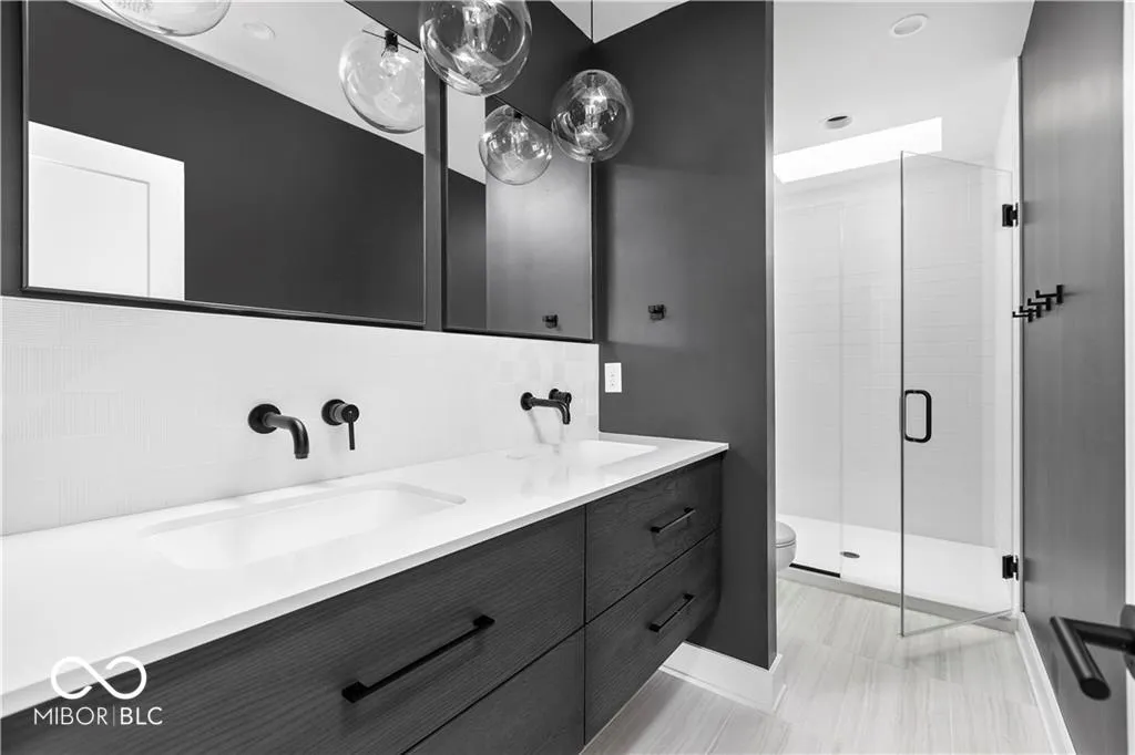 Modern designed 2 bedroom/2.5 bathroom townhome for rent in historic Herron Morton Place in downtown Indianapolis. Main floor has open concept and houses living, dining, and kitchen along with half bath. Kitchen features cabinetry to the ceiling, quartz waterfall island, stainless steel appliances and tile backsplash. Powder bath and closet off of back door. Natural light adorns staircase with skylight well to 2nd floor. 2nd floor has two bedroom suites and a private laundry room. Primary bathroom features dual vanity and walk in shower with skylight as well as double closet. Attached 1 car garage. Steps from Baby’s restaurant, Bocca, Gather 22, and Loco. Short drive to downtown hospitals, Eli Lilly, Sales Force, and IU Indianapolis.