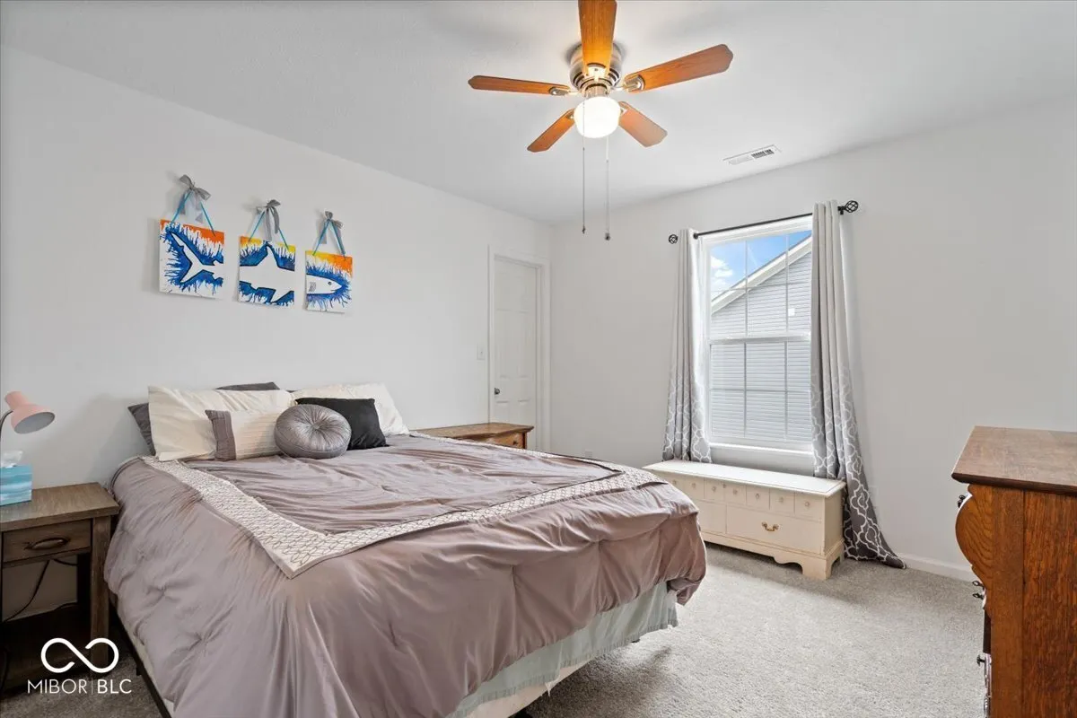 Welcome to Heron Creek on Greenfield’s west side – just minutes from I-70 and Mt. Comfort Road for an easy drive to Indy. This home sits on a quiet cul-de-sac and backs up to a peaceful pond, giving you the perfect mix of privacy and convenience. Enjoy your morning coffee or evening unwind on the back patio with a fenced yard and pretty water views. Inside, you’ll find the popular Spruce floor plan by Arbor Homes – bright, open, and full of thoughtful upgrades. The kitchen shines with quartz countertops, stainless appliances, upgraded cabinets, and a big walk-in pantry. Upstairs has four spacious bedrooms plus a loft, including a large primary suite with a walk-in closet and private bath. Double vanities in both full baths make mornings easier for everyone. Recent updates include new carpet on the stairs and refreshed landscaping out front. The home also offers extra storage with a larger under-stair closet and a 4-foot garage bump-out. Heron Creek has great amenities – pool, playground, sidewalks, and streetlights. School options include Mt. Vernon, Greenfield (with application), or New Palestine (with application). This one checks all the boxes – great location, great layout, and move-in ready!