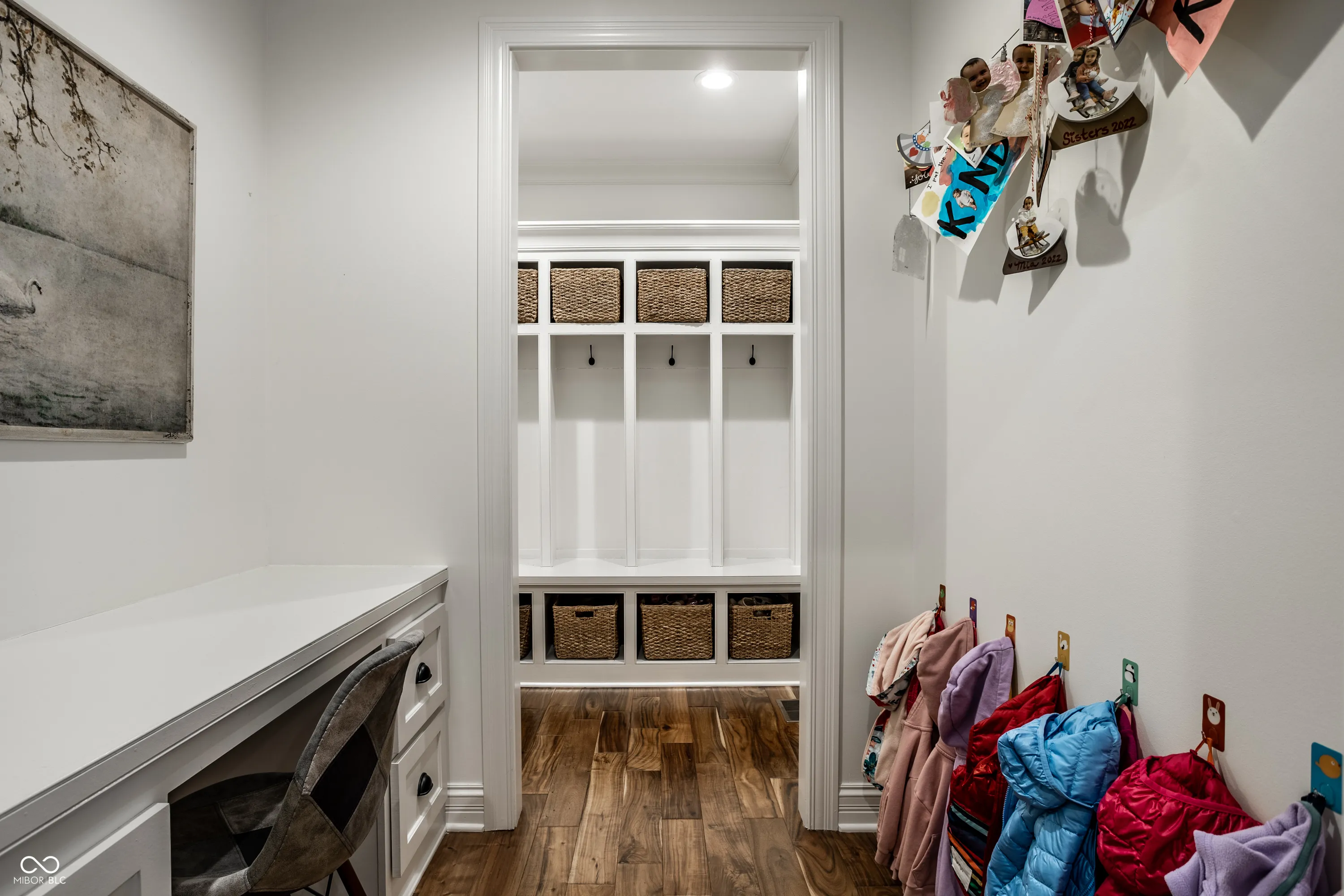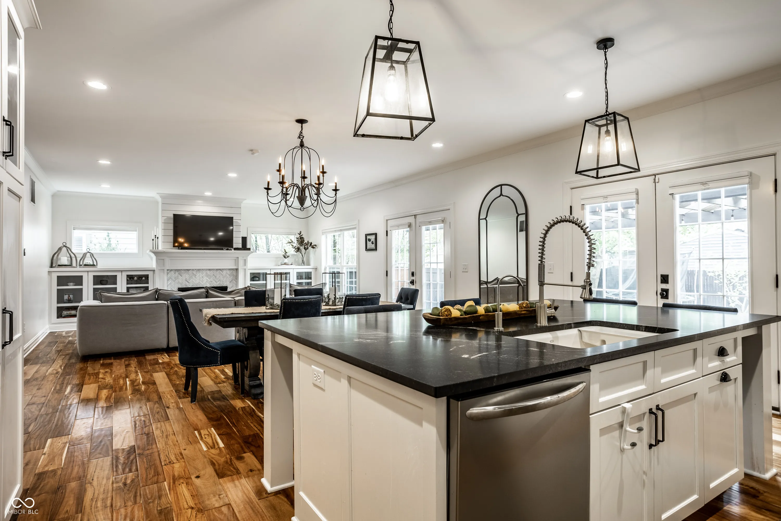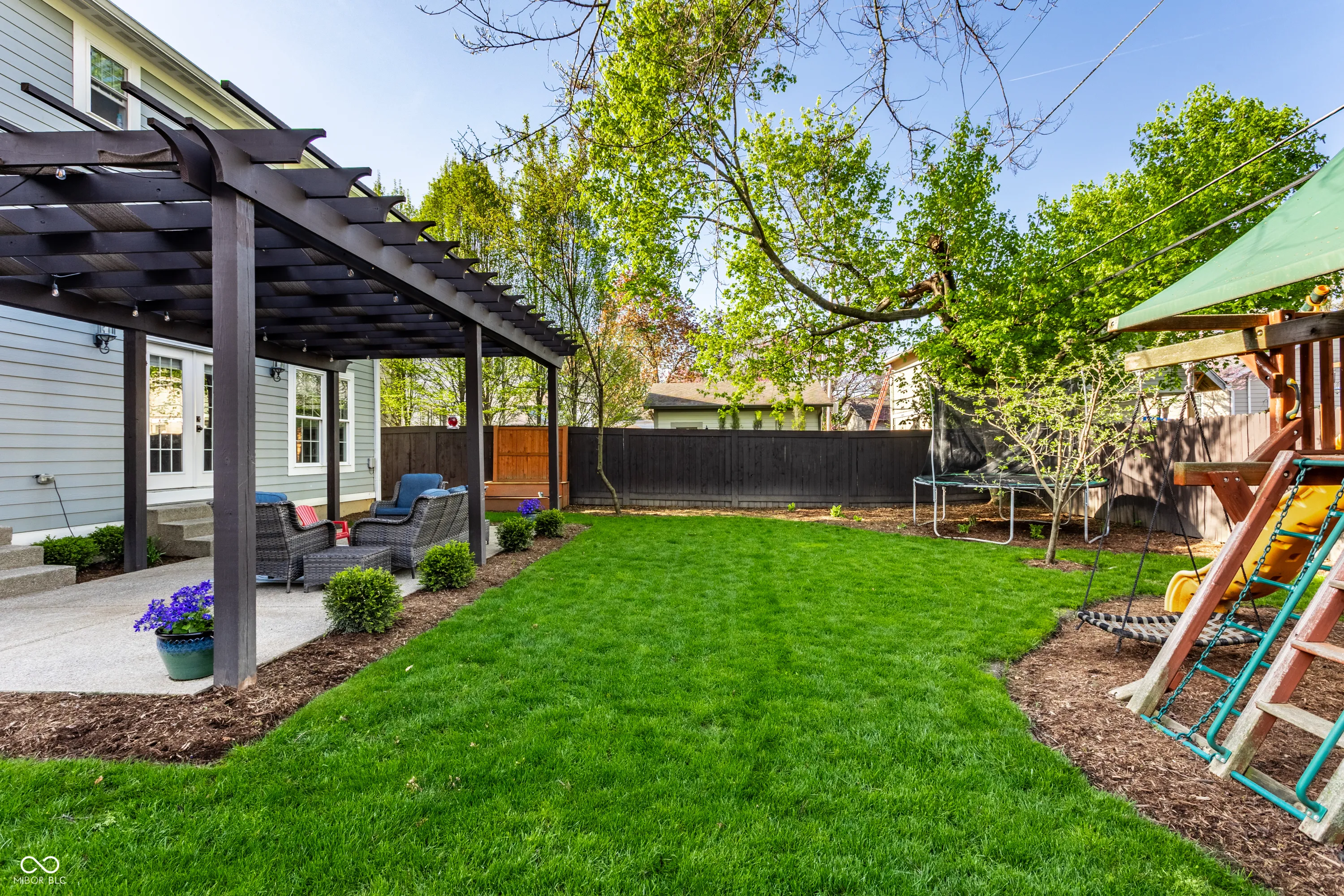 Experience the perfect blend of timeless charm and modern living in this stunning home ideally situated within walking distance of the Illinois Street Food Emporium, Graeter’s Ice Cream, Starbucks, local boutiques, Butler University, and more! Built in 2016, the open floor plan accommodates the modern lifestyle with a seamless flow between the exquisite kitchen and the adjacent family room with gas fireplace and built-ins. Double French doors invite you to the expansive patio with new pergola overlooking the private, fenced backyard. Two work spaces include a home office with built-ins and a separate command center/planning desk area. Upstairs features brand new carpet throughout, a large laundry room, and four generous bedrooms including a lovely primary suite with spa-style bath and dreamy walk-in closet. The finished lower level lends itself to family fun and entertainment with a rec/playroom, 5th bedroom and full bath ideal for guests, and abundant storage space with fitness room.