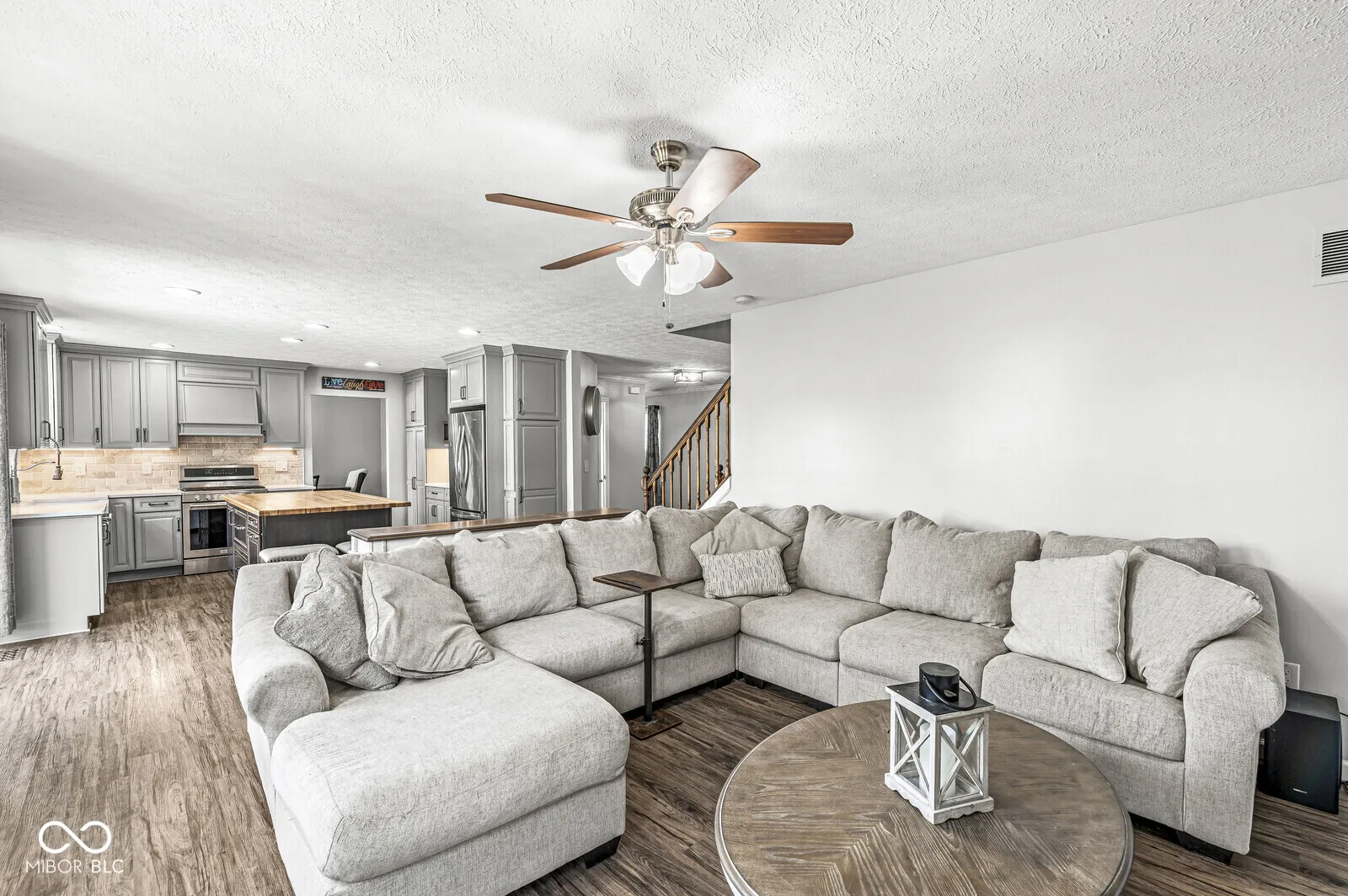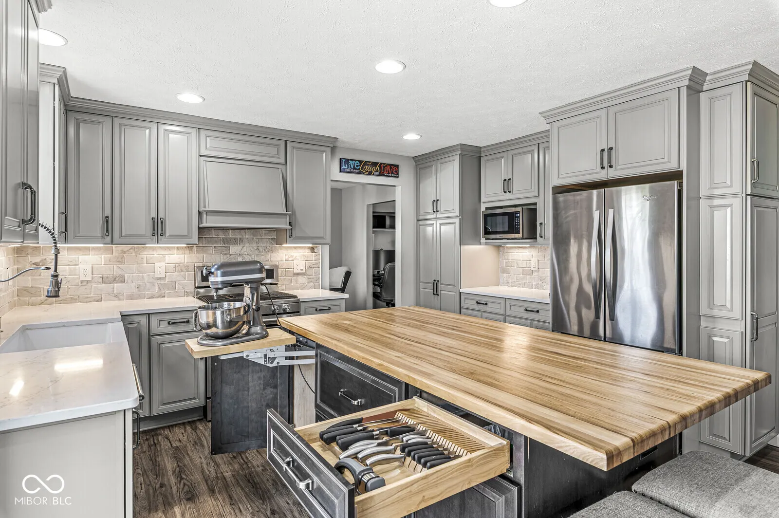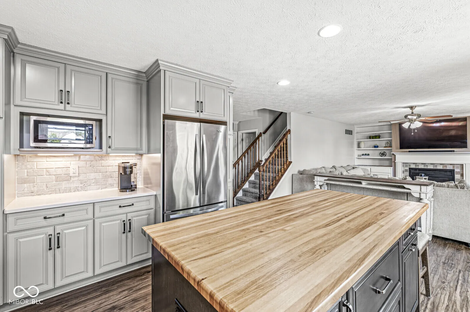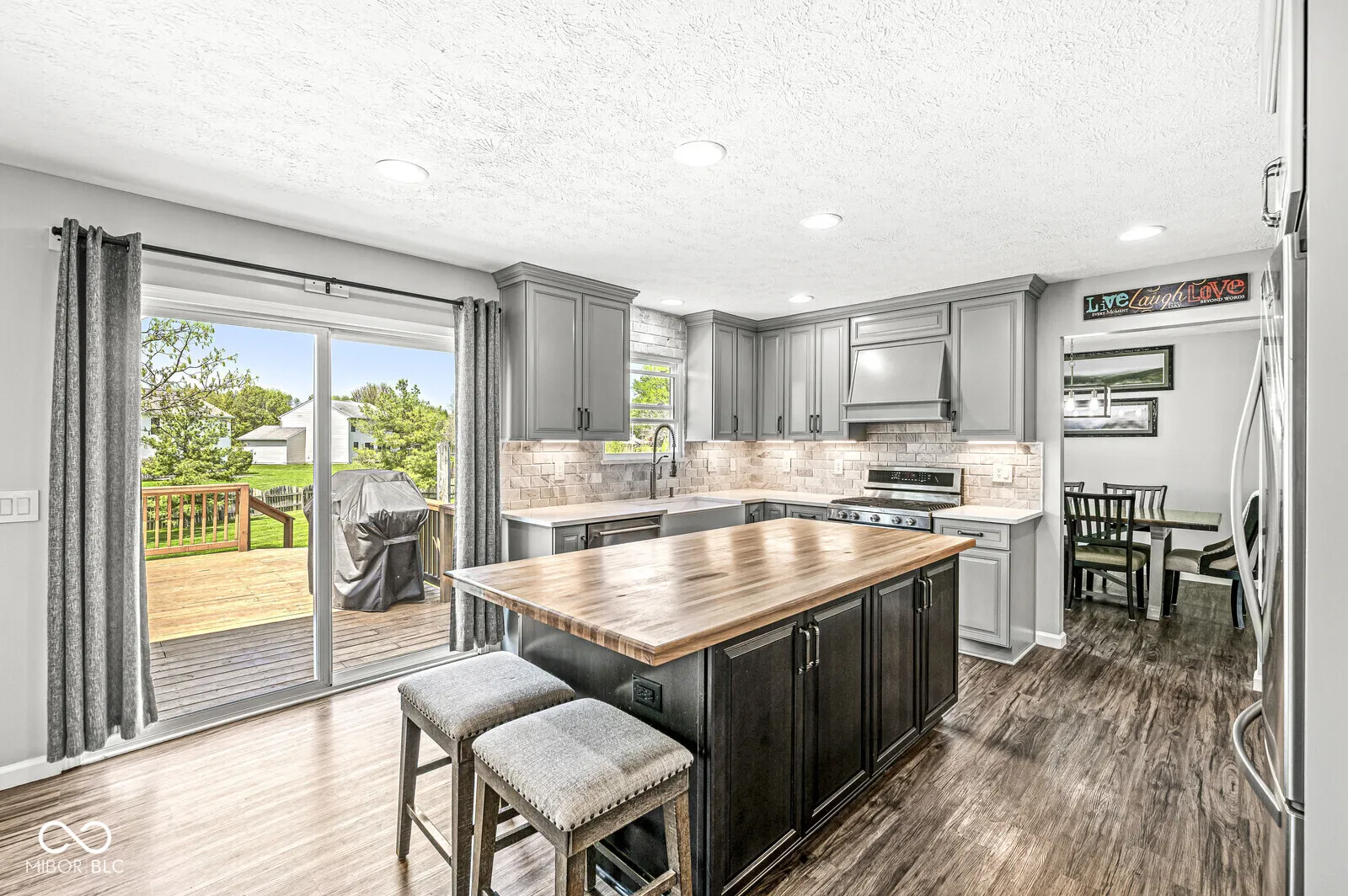 The kitchen is the centerpiece of this home, updated for both style & everyday use. It features custom 42-inch gray cabinets, quartz countertops, a large farmhouse sink, stainless steel appliances, a center island with a butcher block top, soft-close cabinets & drawers, under-cabinet lighting, a vented hood, & pull-out shelves for easy organization. View the pictures to see the unique cabinets. This home offers 5 bedrooms & 2.5 bathrooms. Each bedroom has a walk-in closet. Both the primary & hall bathrooms were refreshed in April 2025 with soft-close double vanities, vinyl plank flooring, humidity-sensing fans, brushed nickel fixtures, & updated lighting. Luxury vinyl flooring covers the main level, while newer carpet finishes the upstairs. All windows were replaced in April 2025 with a transferable warranty. Other major updates include HVAC system & water heater in 2020, roof replacement in 2016. Fresh paint, new outlets & cover plates, & updated lighting throughout make the home feel move-in ready. The unfinished basement, approximately 26 x 42 feet, adds over 1,000 square feet of opportunity to customize a recreation room, gym, or additional storage. The living room, updated in 2020, features built-in cabinets & a remodeled gas fireplace mantel. An updated stair railing adds a clean, modern touch. The laundry room was also updated to match the kitchen’s cabinetry & flooring. Half bathroom on the main level was refreshed in 2017 with new tile, vanity, & paint. The backyard is .53 acres, one of the larger lots in the neighborhood. A 20 x 25 deck, replaced in 2024, offers great space for outdoor dining or relaxing. Several sections of the privacy fence were updated in 2025. The garage is well-equipped with insulated doors, updated openers, an HVAC split system, & built-in storage. Located on a cul-de-sac, near a playground, half-court basketball area, & trails connecting to the Plainfield trail system. Plainfield schools. This home is a must see!