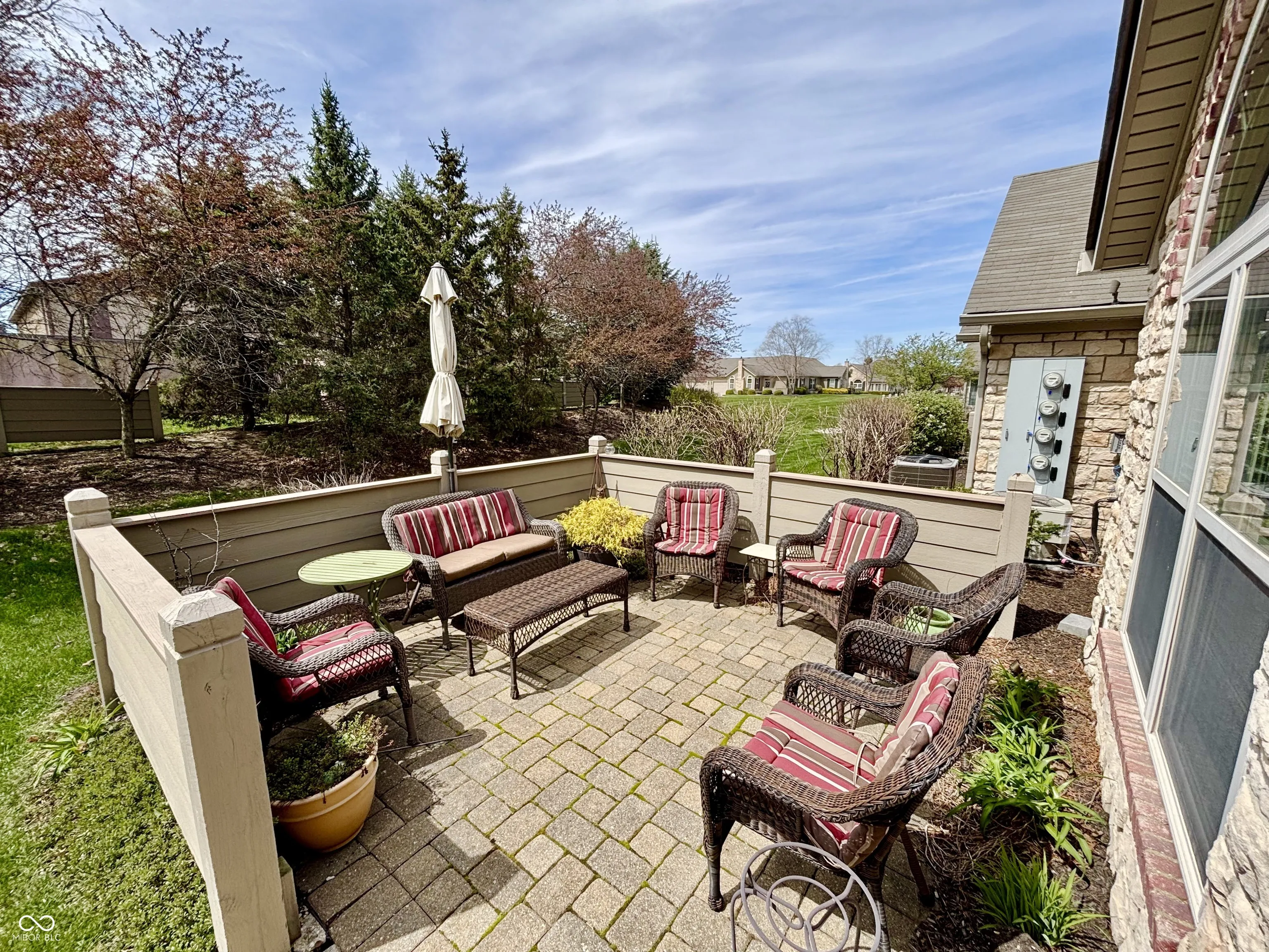 Welcome to one of Westfield’s premier communities, The Maples at Spring Mill. Situated a stone’s throw from restaurants, grocery stores, shopping, and just a few miles from Grand Park. Come and enjoy a truly stress free living, without all the worries of exterior maintenance that goes along with home ownership. Take advantage of the pool, fitness center and clubhouse. The Maples at Spring Mill is a very active community with water aerobics classes, a walking group, game nights, book clubs, a ladies lunch, and more. This immaculately maintained ground level condo is a highly sought after end unit that comes with a finished 2 car garage, ample extra outside parking for guests, a large back patio that faces the sunset, a wonderful backyard that you don’t have to mow and is surrounded by mature trees. Going inside you will find a light filled open floor plan with vaulted ceilings, hardwood floors and an expansive kitchen with ample cabinets and multiple pantries. This home offers a ton of flexibility with a formal dining room and sunroom that could be used as additional bedrooms, offices, or living space. The master suite enjoys double sinks, a stand up tile shower with bench, and a large walk-in closet. A separate laundry room with utility sink and included high end washer and dryer complete this wonderfully maintained home.