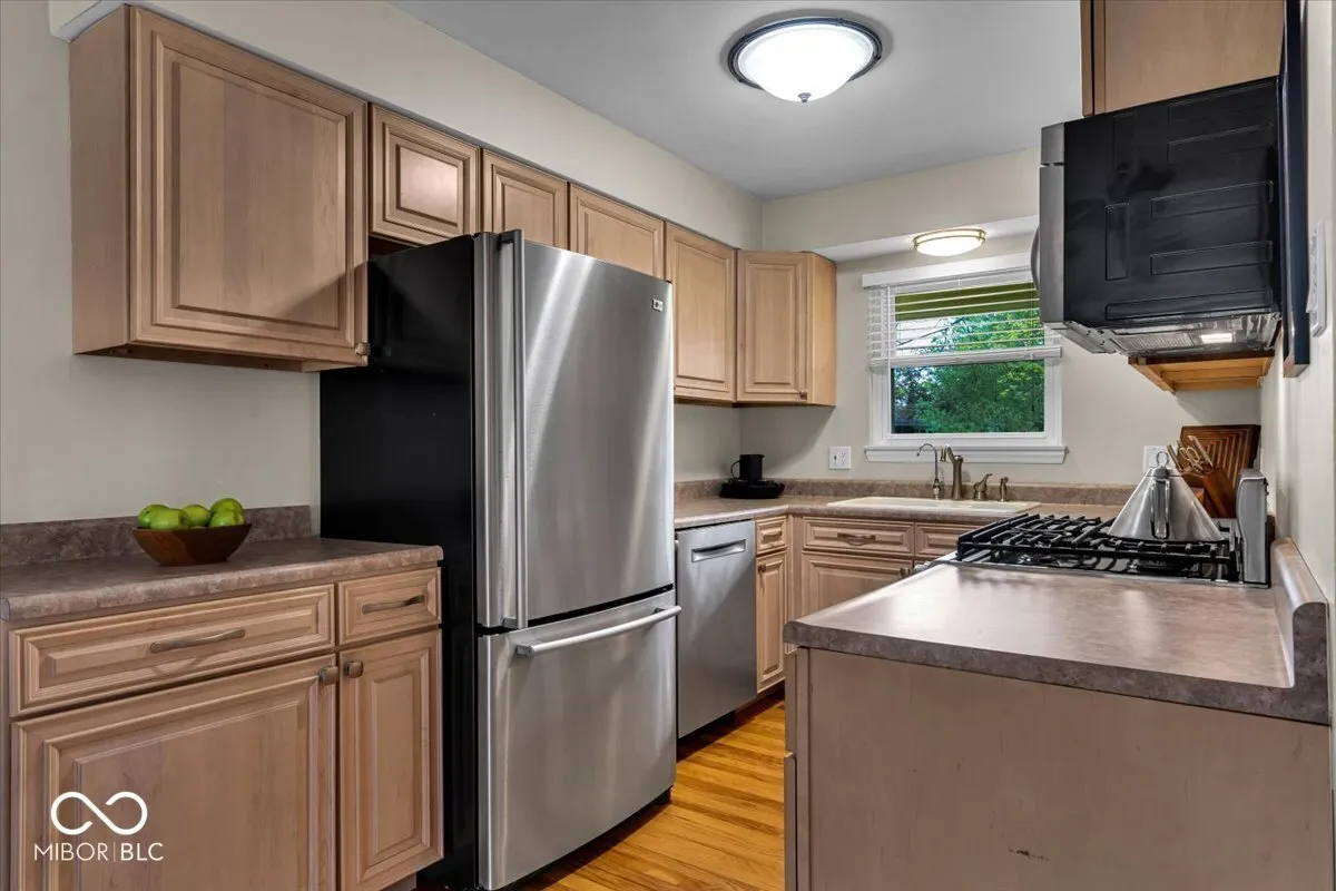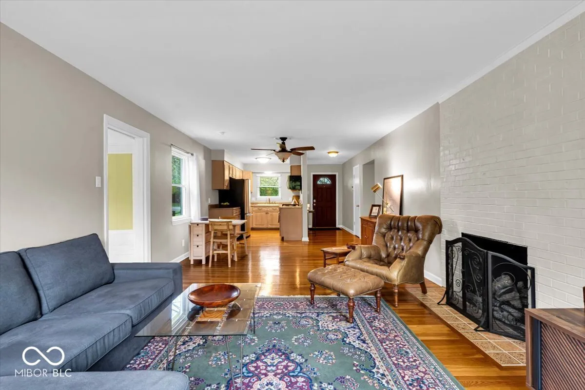 Classic Midcentury Brick Ranch on quiet, private HALF ACRE Lot in coveted Washington Township. Inviting covered Front Porch caters to morning coffee and evening happy hour. Entry Foyer has a view across the spacious Living Room, brightly lit by a wall of windows overlooking the generous rear yard. Cozy up to the timeless gas log Fireplace with floor to ceiling brick surround and ornate tiled hearth. Charming Kitchen features updated hardware, water purifier, and stainless appliances, including a Gas Range and Microwave Hood vented to the exterior. Beautiful, solid Hardwood Floors grace the original Main Level. Conditioned Sunroom offers optional dining, entertaining, and relaxation space, with direct access to the open Patio – perfect for your grill or smoker. Primary Bedroom has trimmed out triple sliding door closet. First level Full Bath features deep linen closet and combination tub/shower with tiled surround. Separate Powder Room conveniently services visiting guests. Awesome, recently refinished WALK OUT Basement has loads of possibilities: Screening Room, Exercise Space, Corner Office, Hobby Area, Playroom, and more. Lower Level Full Bath and exterior entrance adds Multi-family opportunity. Loads of unfinished space allow for seasonal storage. Laundry area includes convenient utility sink for all your home and gardening projects. Attached Carport leads to rear load driveway with basketball hoop, perfect for summer ball. Incredible fully fenced rear yard has space for pets and play, along with a built-in firepit, shaded by mature trees. New Roof and Heat Pump. Newer Water Heater and Windows. Amazing location – minutes from Some Guys Pizza, Taylor’s Bakery, 62nd Street Market, and the desirable, new Nickel Plate Trail. Highly regarded Washington Township Schools. Easy commute to Highway access, Downtown, Broad Ripple, and the North Side!