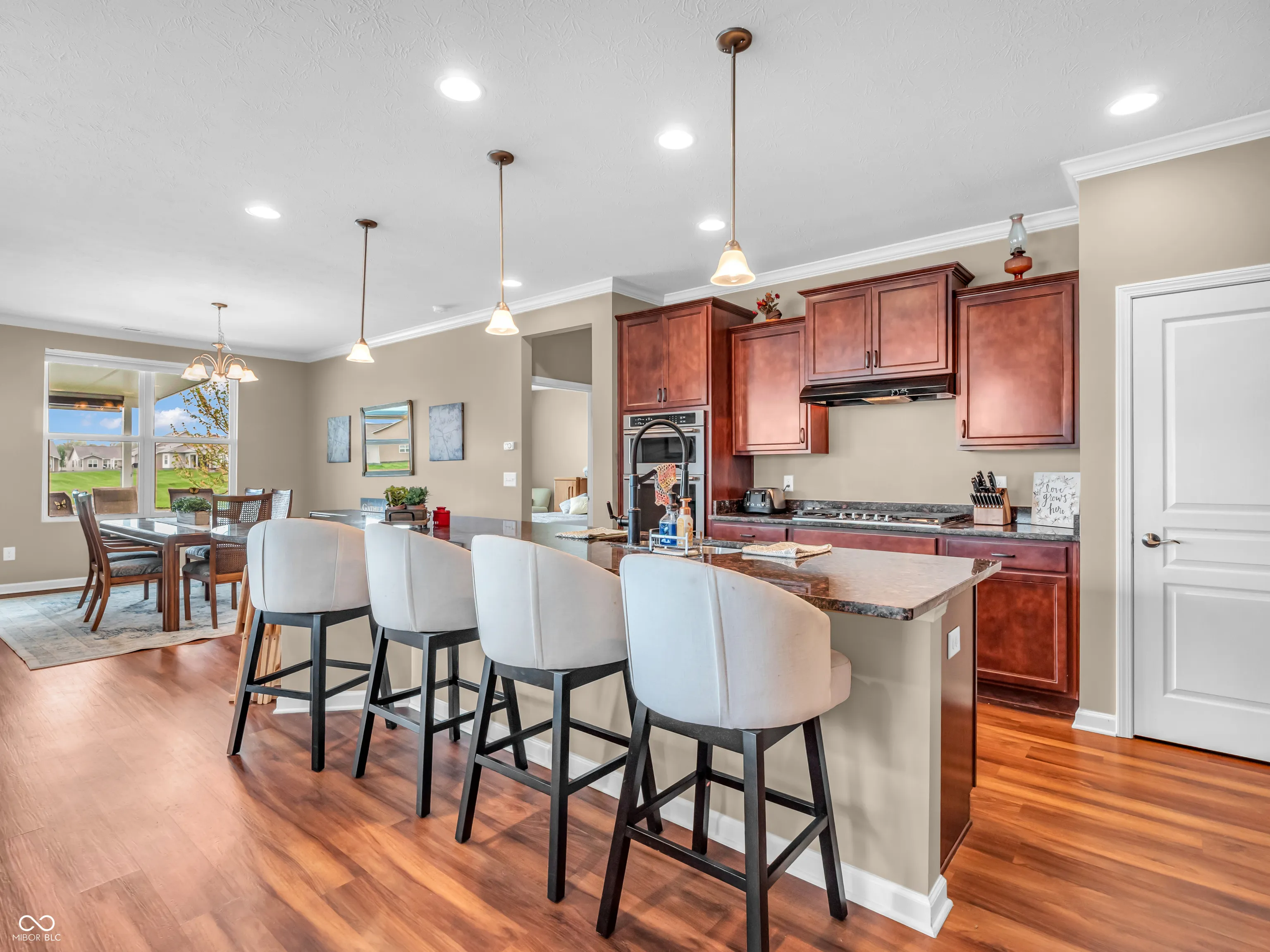 Rare opportunity to purchase a 3bedroom/3bath home, at this price point, in Hendricks County’s only 55+ community, Vandalia. The floor plan is great for entertaining including overnight guests. Neighborhood amenities include: heated pool, pickle ball courts, clubhouse, activities, clubs, and if that’s not enough, a membership to Plainfield’s Aquatic Center. The main level features an extra wide foyer, 9ft ceilings, crown molding, vinyl plank flooring, and split floor plan. The kitchen features a large center island, gas stove, and pantry, and it opens to the family room and dining room areas. Off the family room is a delightful sunroom with a view of the back patio and pond. The spacious primary bedroom and bathroom has a walk in closet, double sinks, and a seated vanity area. This amazing main level floor plan is rounded out with an office, 2nd bedroom and full bath, and laundry room. Upstairs private suite includes a bedroom, full bathroom, and bonus room. The outside space is just as amazing with a covered patio with automatic retractable shades where you Downsizing? Don’t be stressed because this home offers so much space including a 3rd tandem bay in the garage! HOA takes care of lawncare and snow removal. Come see this home, visit the clubhouse, pool, and other amenities, and see why Vandalia is referred to as “resort like” living!
