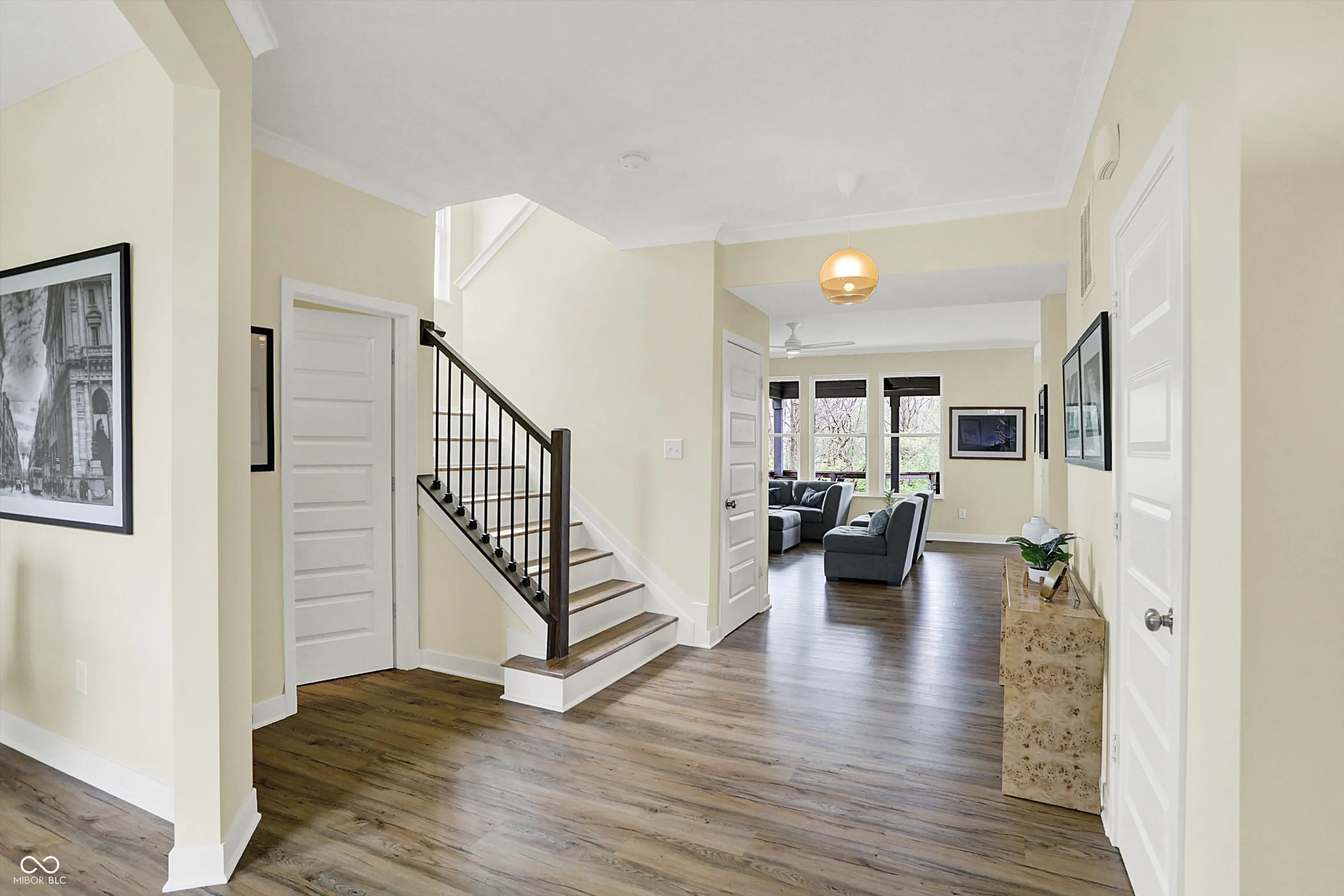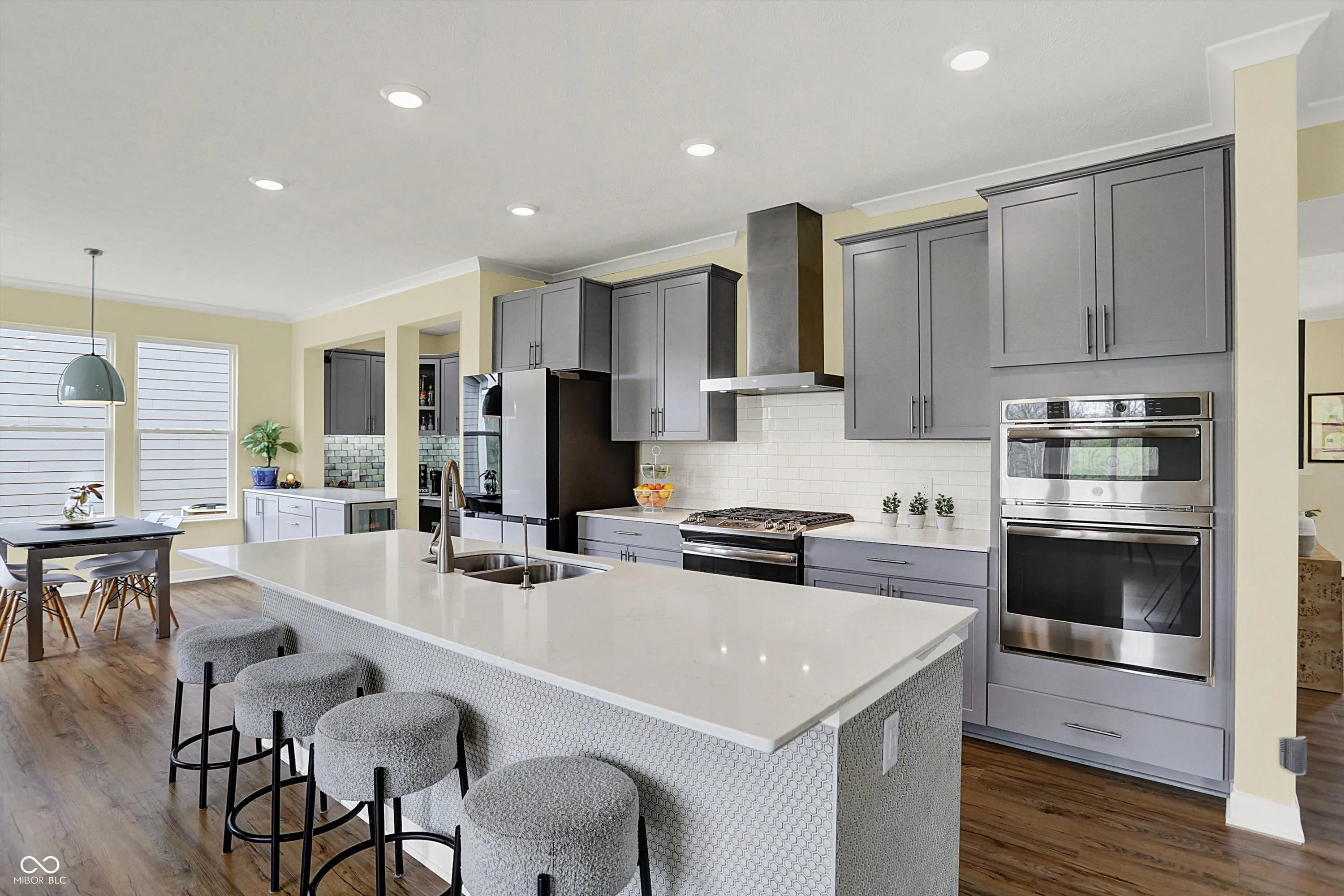 Welcome to this beautiful 4-bedroom, 2.5-bath home that perfectly blends comfort, style, and functionality. Nestled in a prime location backing to Overly Worman Park, this home offers direct access to an abundance of outdoor amenities including hiking and mountain bike trails, a fishing pond, frisbee golf, and a playground – perfect for nature lovers and active families. Step inside to find luxury vinyl flooring throughout the main and upper levels. The open floor plan is anchored by a spacious great room featuring a gas fireplace with a custom tile surround and a dramatic wall of windows that frames stunning natural views. The gourmet kitchen is complete with a gas cooktop, built-in oven and microwave, walk-in pantry, and a custom coffee bar. The dining area just off the kitchen makes entertaining a breeze. Work from home with a main floor office, and unwind upstairs in the master en-suite featuring a deluxe walk-in shower, double sinks, and large walk-in closet that conveniently connects to the upper-level laundry room. Three additional generously sized bedrooms offer space for family or guests. Enjoy outdoor living at its finest with an expanded multi-level composite deck. The walk-out basement opens to the lower deck with an inviting hot tub – ideal for relaxing or entertaining year-round. Don’t miss the chance to make this property your next home!