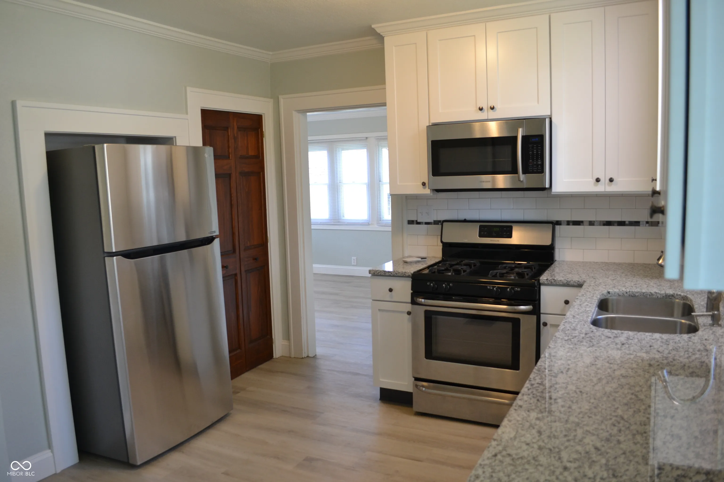 Beautiful totally updated home in Perry Township. Great location close to downtown and highways. This cozy home is ready to move in. Exceptional rehab of this home. The 2 bedrooms are nice size. The living room with a wood burning fireplace is ready for your touches. New kitchen with granite counters, white shaker cabinets and all new stainless steel appliances. Nice pantry as well. Great dining room with plenty of windows and built in shelves. New washer and dryer are in the dining area on the main floor for easy use. The basement has new mechanicals and plenty of space for a man cave or crafts room. All fresh painted and ready to call home. New windows make this home ready to go for a long time. The garage has a workshop area in it. There is a nice size carport and a spacious mini barn. The lot size is great to make the back yard what you want it to be used for.