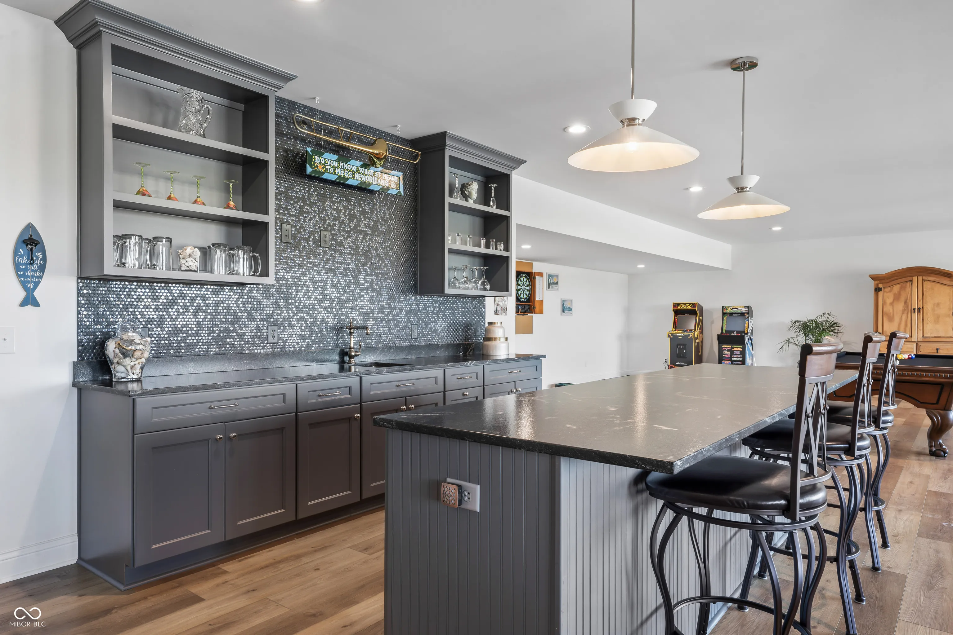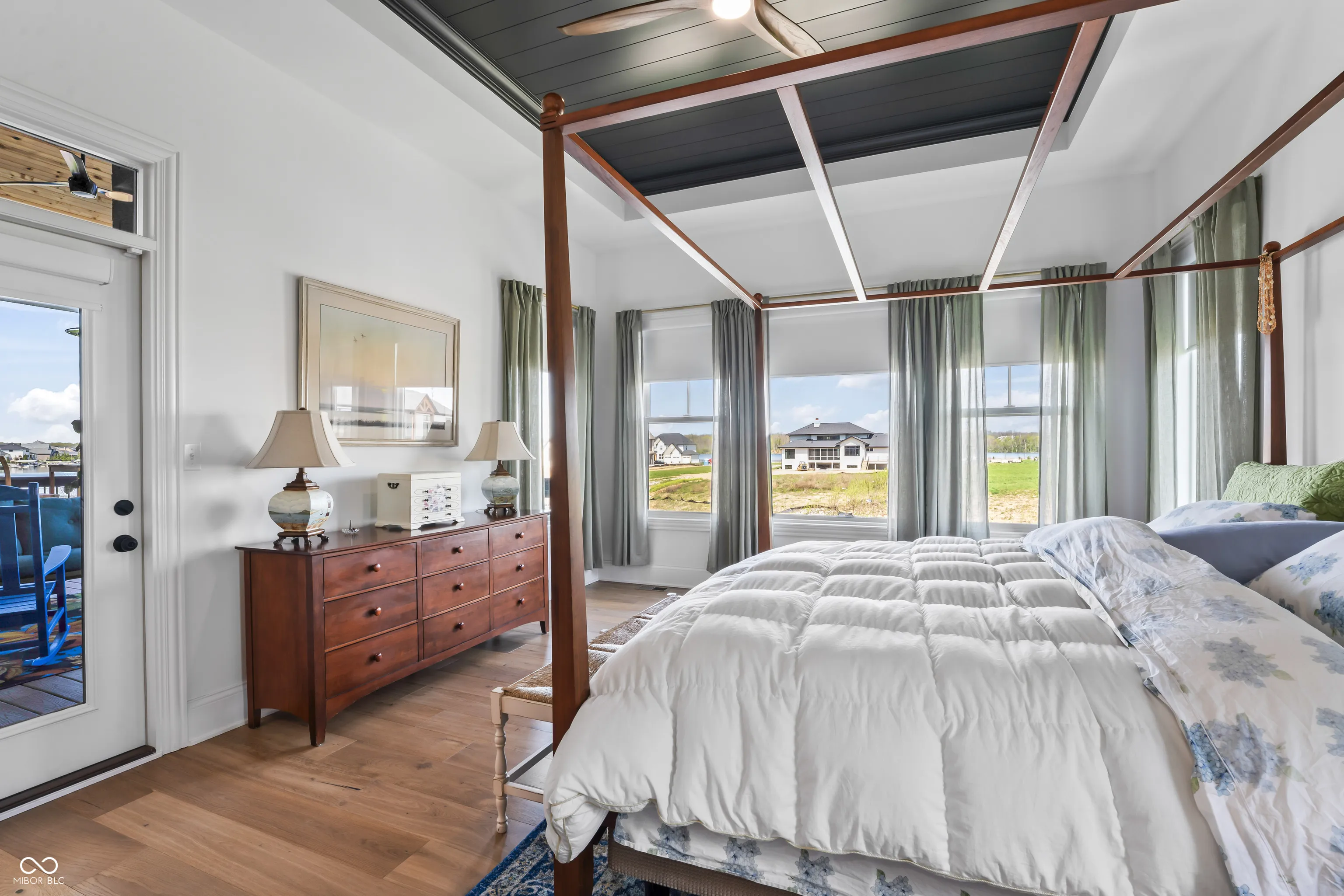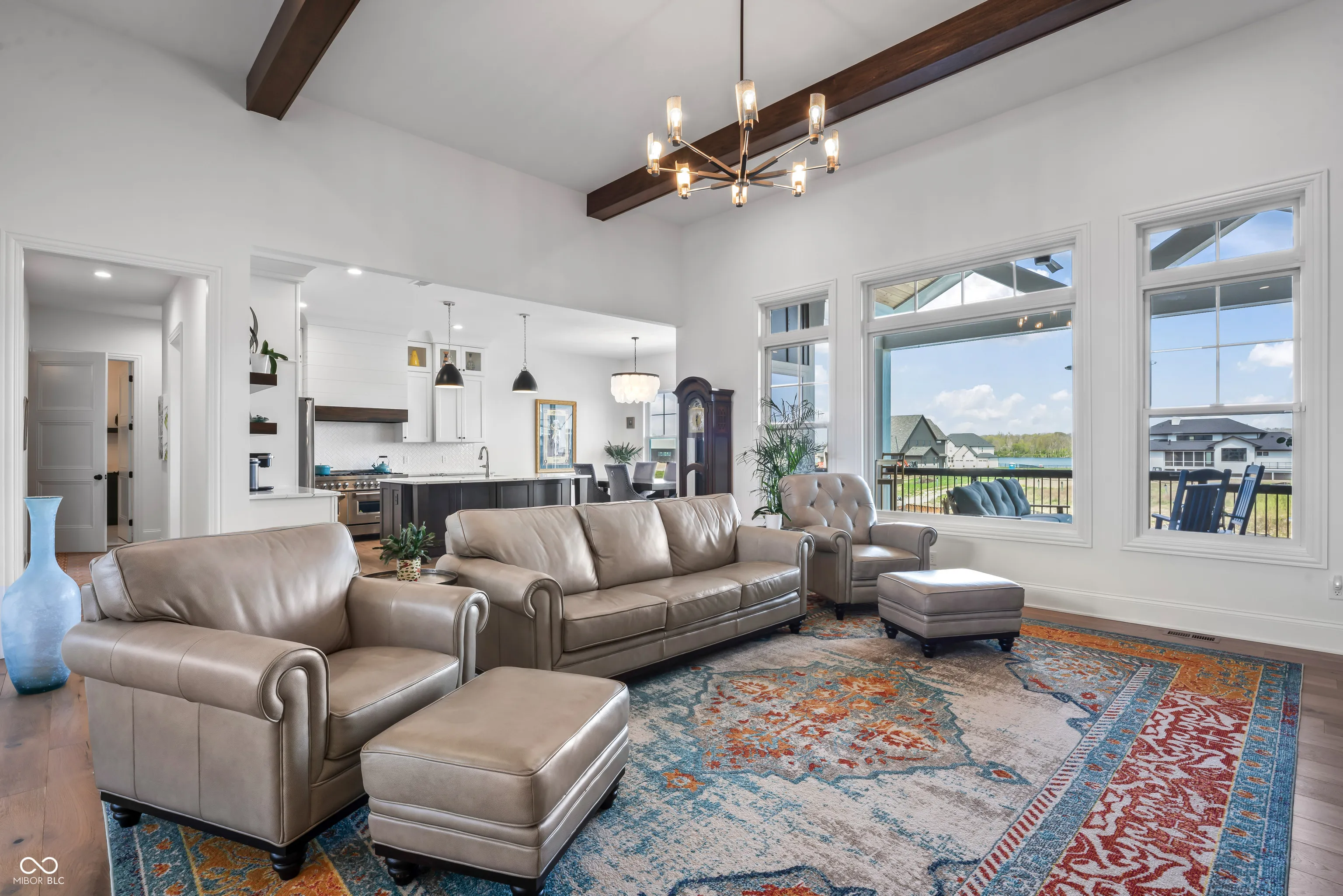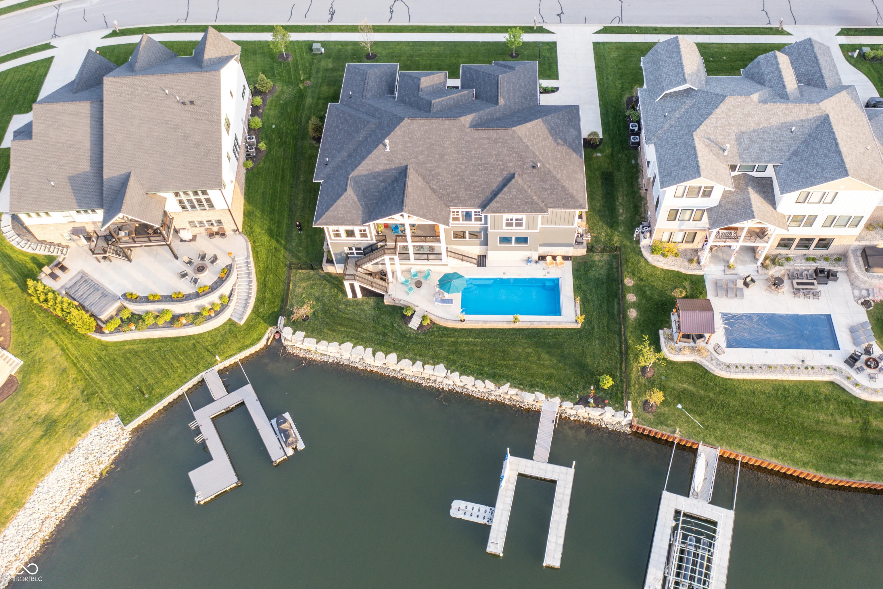 Absolutely stunning & almost brand new, this luxury waterfront home offers exceptional living in a highly sought-after community within award-winning HSE schools. Like new, this property features one of the widest water frontages in the neighborhood & includes a deeded boat dock for lake life from day one! With 5 bedrooms (3 upper & 2 in basement), a RARE 4-car garage, & premium finishes throughout, this custom home is designed for both style & function. The heart of the home is a chef’s kitchen featuring high-end appliances & ample space for entertaining. Enjoy an open floor plan with custom beams accenting the great rm, cozy fireplace, large dining room all overlooking a brand new backyard oasis, and evening sunset views. Primary bedroom tucked away on main level features private access to covered porch for morning coffee. Bedroom 2 has full bath and lots of natural light. AMAZING pantry off kitchen with huge laundry rm w wet sink tucked away off 4 car tandem garage entrance with n Convenient mudroom with locker system connects garage and main living of the home. 3rd bedroom or second office with full attached bathroom completes this side of the home. The walkout lower level is impressive & open featuring 4th bedrm with large walk in closet & connected full bath. Rec room, 5th bed/exercise room, AND spacious wet bar and large entertaining area leads to covered patio. Enjoy lake and pool life under the shade on main level patio or relax outdoors with a saltwater heated pool & a fully fenced yard-all with breathtaking sunset views over the water. This is lakefront living at its finest! Turn key & new without the wait or the hassle of making a house a home-mature landscaping installed, retaining wall, pool & surround, retaining wall, boat dock. Ready for your easy button-One owner bought fall of 2022 -see attached upgrade list of after builder upgrades. Why buy a $1m lot & wait 24 months to build? Start easy living now.