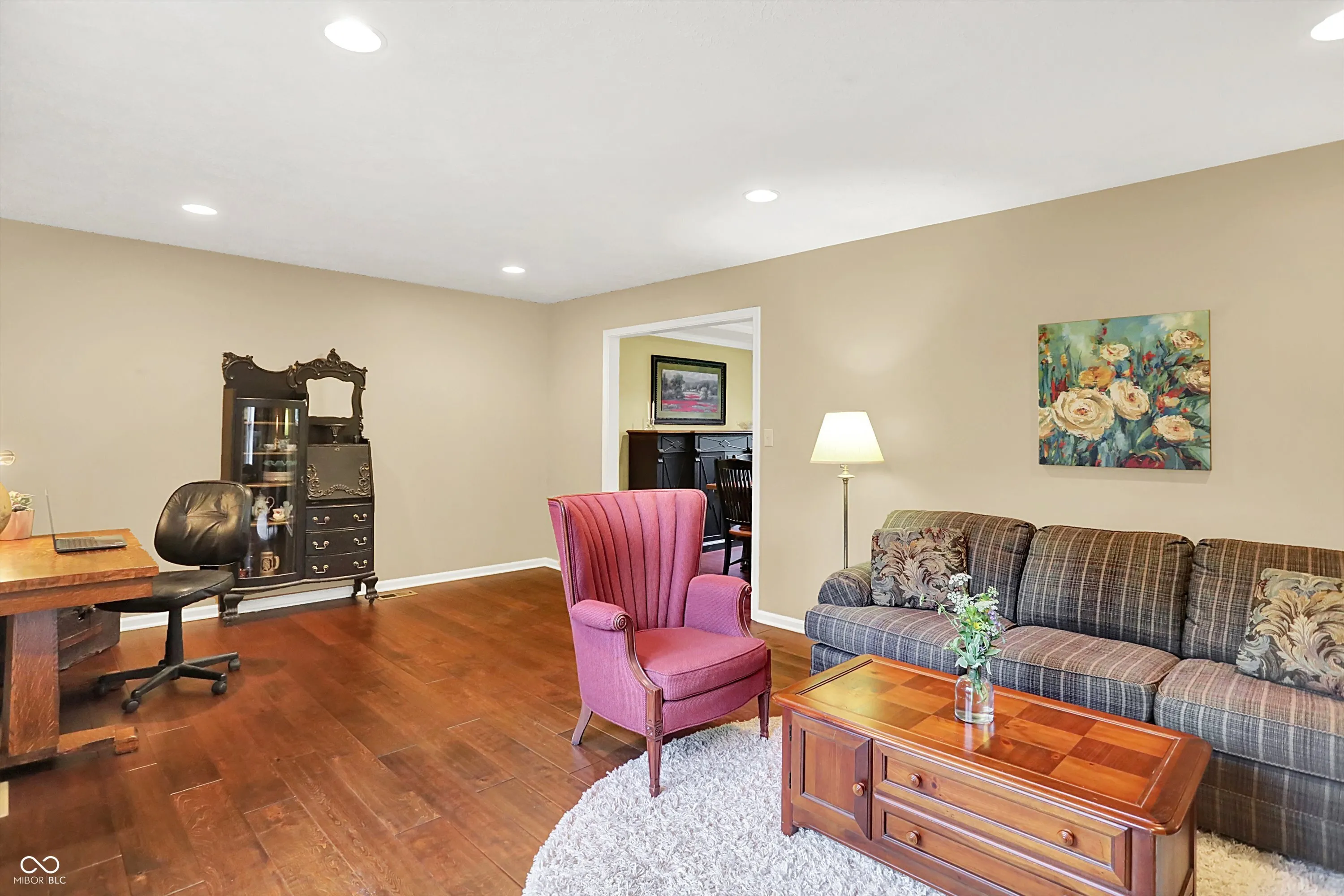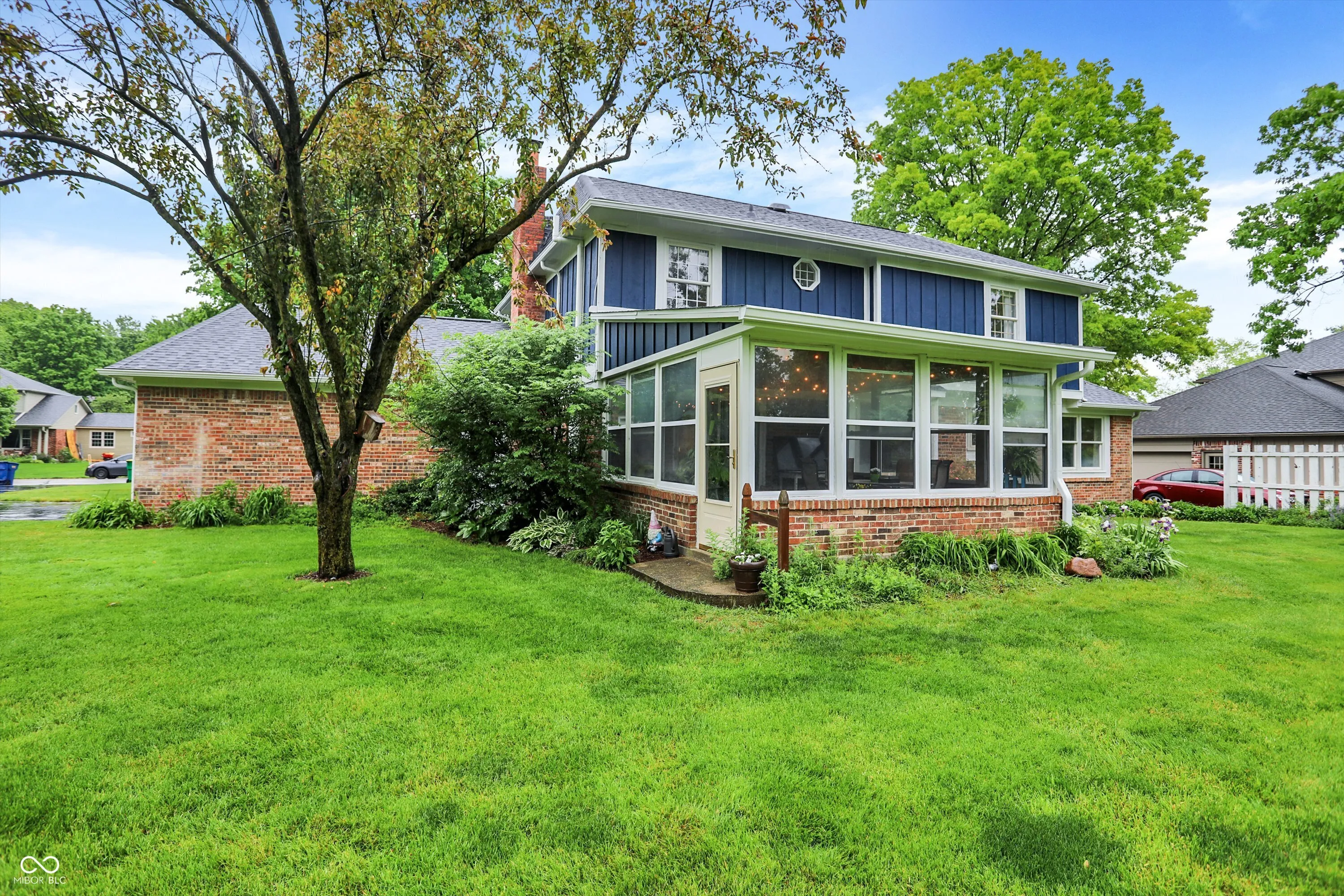 Charming Brick Home in Sought-After Colony Woods. This beautifully maintained 4-bedroom, 2.5-bath brick home sits on a generous 0.69 acre lot in the heart of Colony Woods, one of Zionsville’s most desirable neighborhoods. Located on a quiet, tree-lined street, the home offers timeless charm, thoughtful updates, and an unbeatable location – just steps from all three Zionsville schools, the Big 4 Rail Trail, parks, and less than a mile from the Village. Inside, a renovated kitchen features upgraded granite countertops, stainless steel appliances and a bright, south-facing breakfast area with views of the expansive backyard. Luxury hardwood plank flooring and recessed lighting flow through the main level. The family room offers exposed beams, a wood-burning fireplace, built-in shelves, and plenty of natural light. A sliding door opens to the large sunroom surrounded by mature landscaping – perfect for outdoor living. The flexible layout includes a full basement with a large rec room, ideal for entertaining or relaxing. All bedrooms feature ceiling fans, and the updated hall bath includes a newer sink and tiled shower. Major updates include a new roof (May 2025), Air Conditioner (August 2024), Water Heater (April 2025), and Sump Pump (April 2025). With top-rated schools, shopping, dining, and quick access to US-421, I-465, and I-65, this home offers both tranquility and convenience. Full of character and space to grow, this rare find won’t last long!