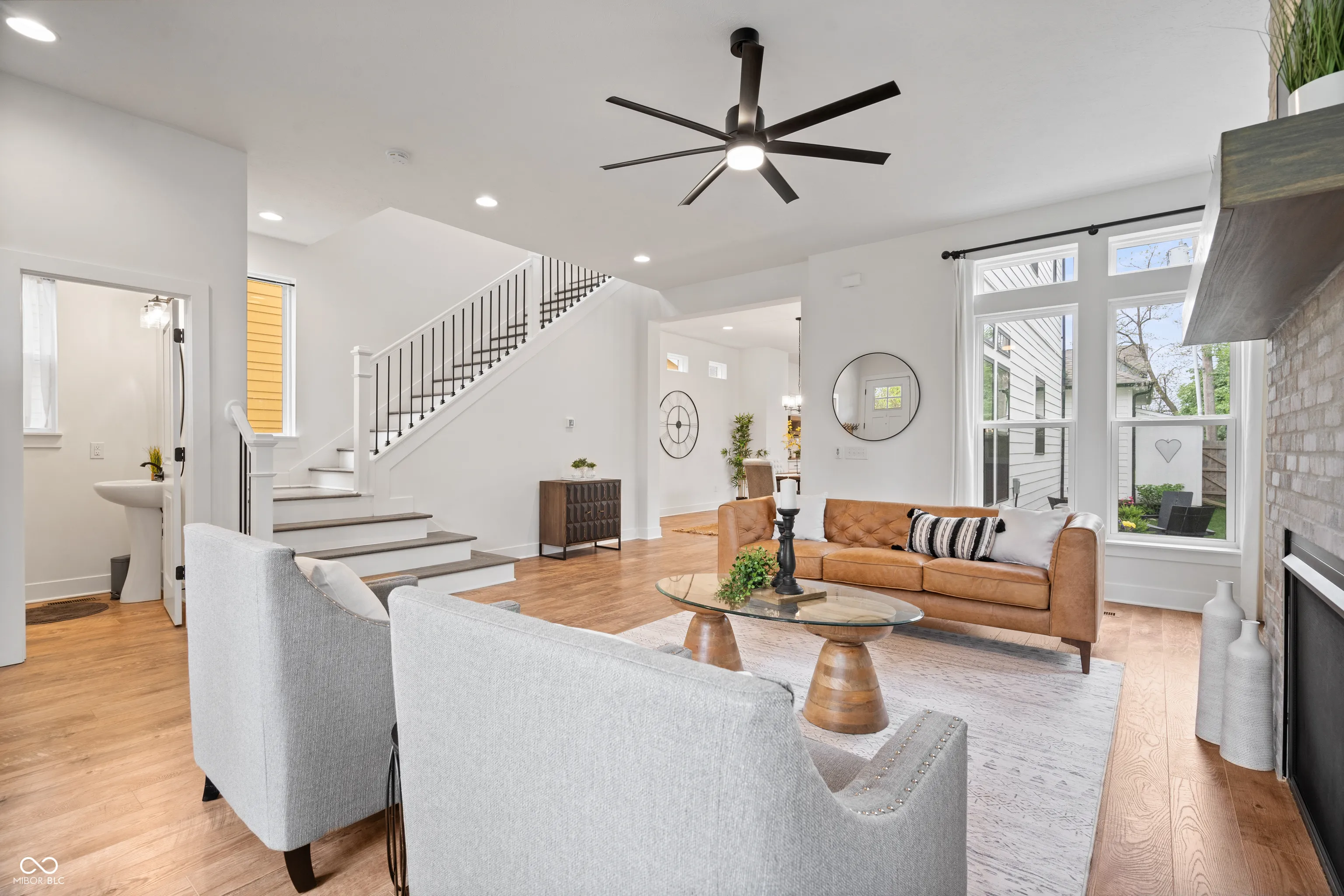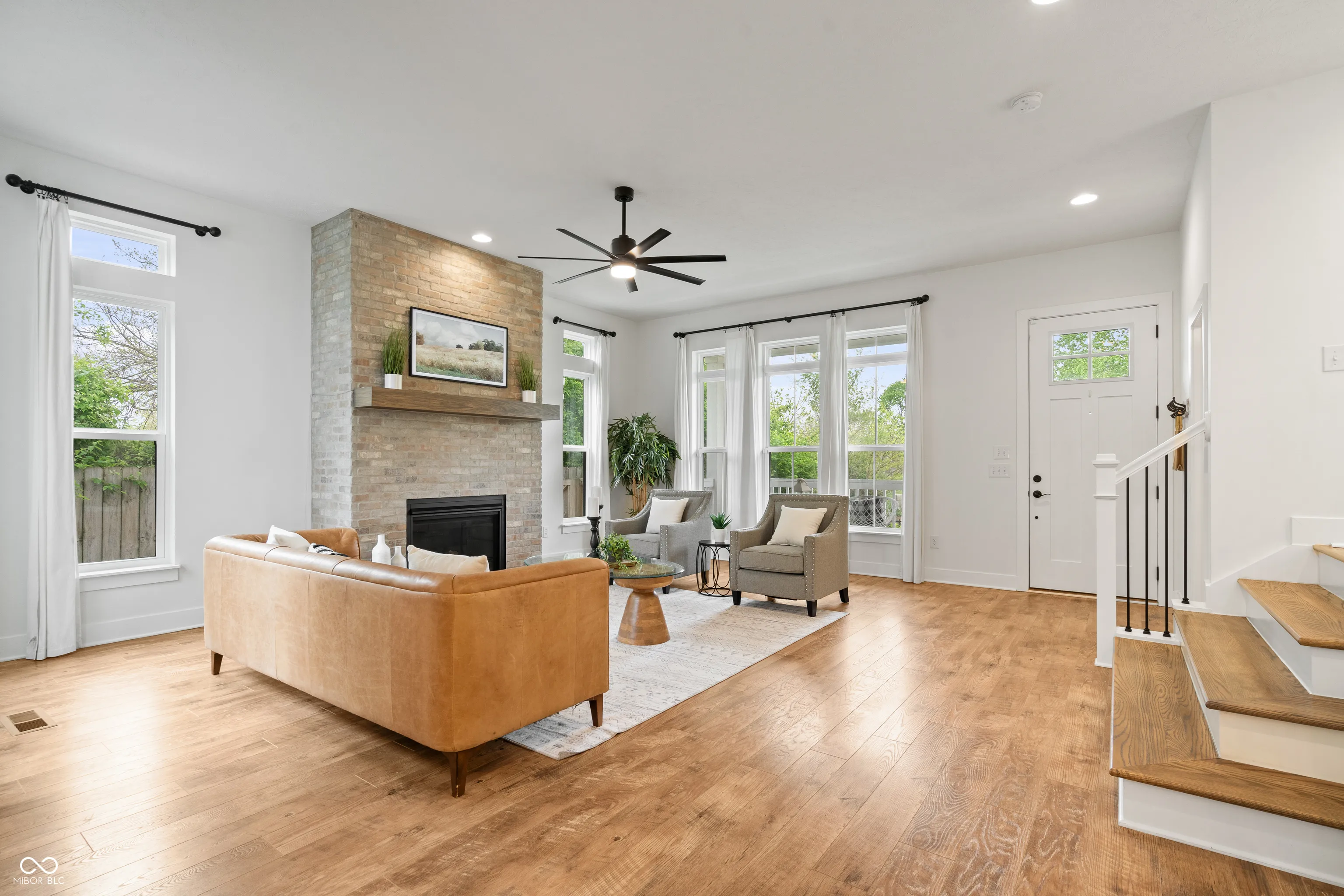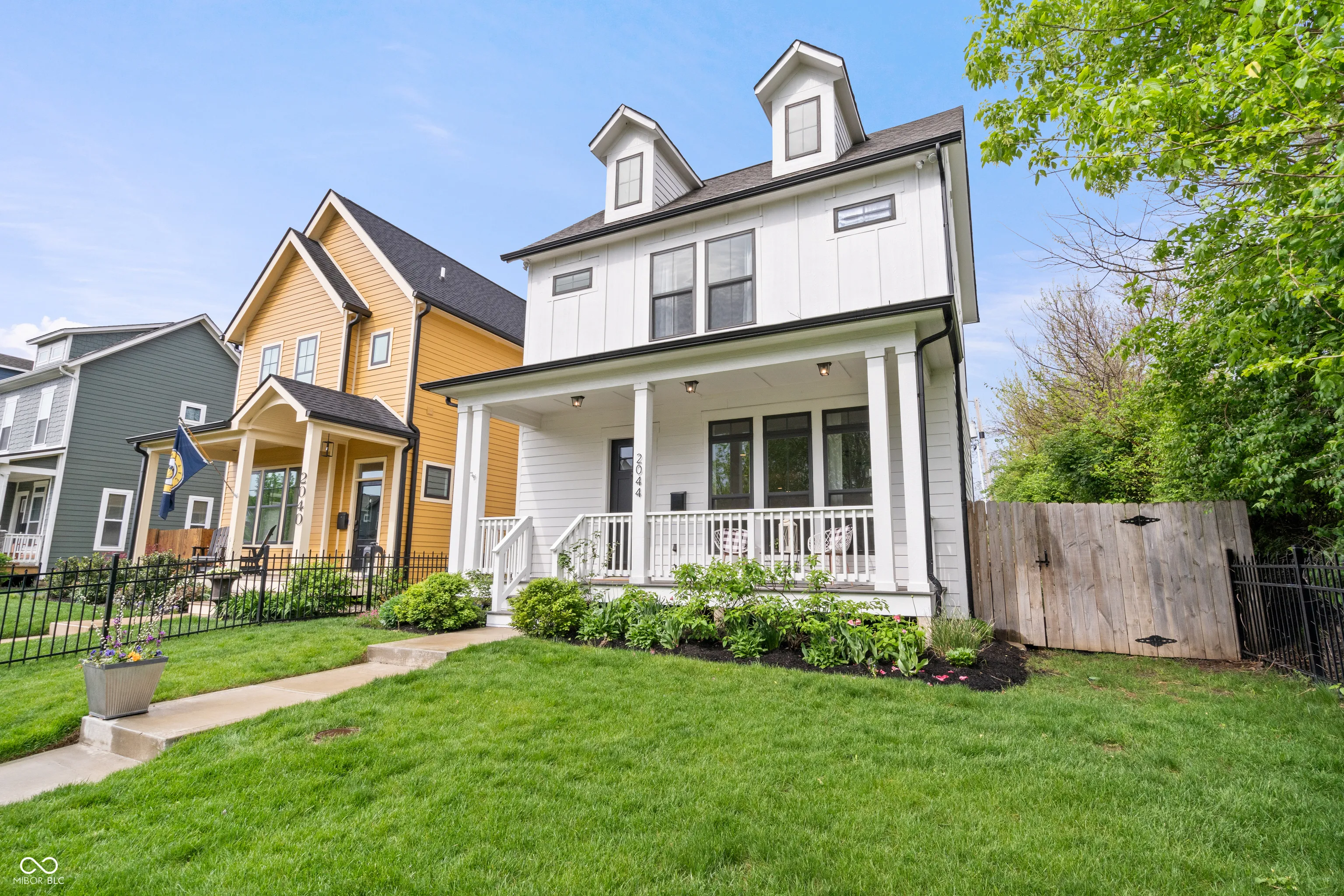 Welcome to 2044 Alvord – Where Downtown Meets Suburban Living! This stunning 4-bedroom, 4-bath home is a true showstopper. Step through the front door and be greeted by soaring 10-foot ceilings, a stylish brick gas fireplace, and large windows that flood the space with natural light. The open-concept living area flows seamlessly into a gourmet chef’s kitchen featuring a spacious center island, stainless steel appliances, and an abundance of cabinetry – perfect for entertaining or everyday living. Upstairs, you’ll find a luxurious primary suite with a spa-like ensuite bath, dual vanities, and an oversized walk-in shower. The second floor boasts brand-new luxury vinyl hardwood flooring throughout, and hardwoods on staircase. Two additional bedrooms offer generous closets and natural light. The fully finished basement is ideal for entertaining and includes a bedroom with an egress window and a full bathroom. Brand-new carpet adds a fresh, cozy feel. Outside, enjoy a fully fenced, manicured, and private backyard. As an end unit, this home offers extra rear parking – a rare find! Plus, it backs directly onto the Monon Trail and is just minutes from local favorites like The Garage, Mass Ave, and other top restaurants. This home truly has it all – are you ready for the downtown life?