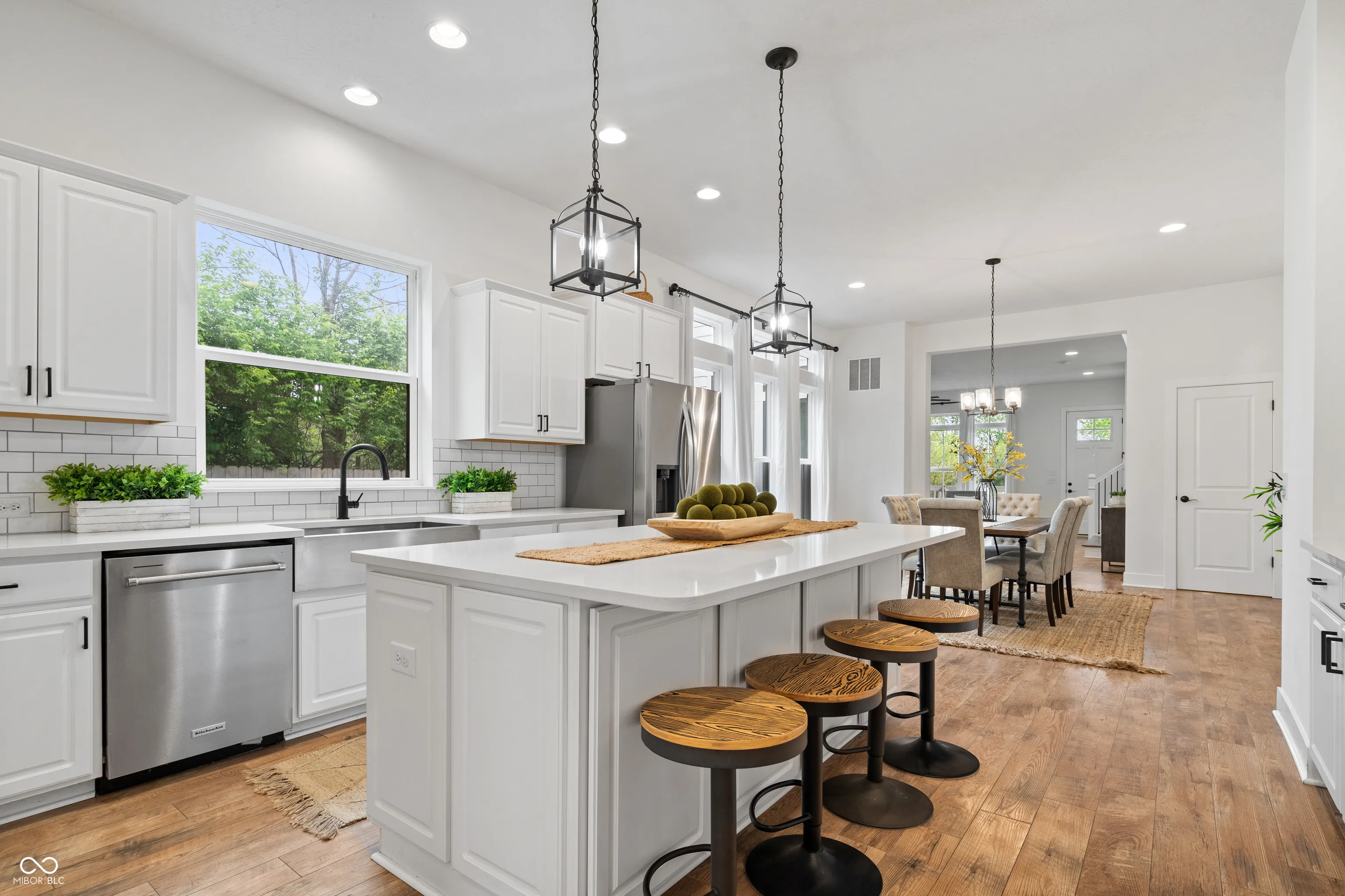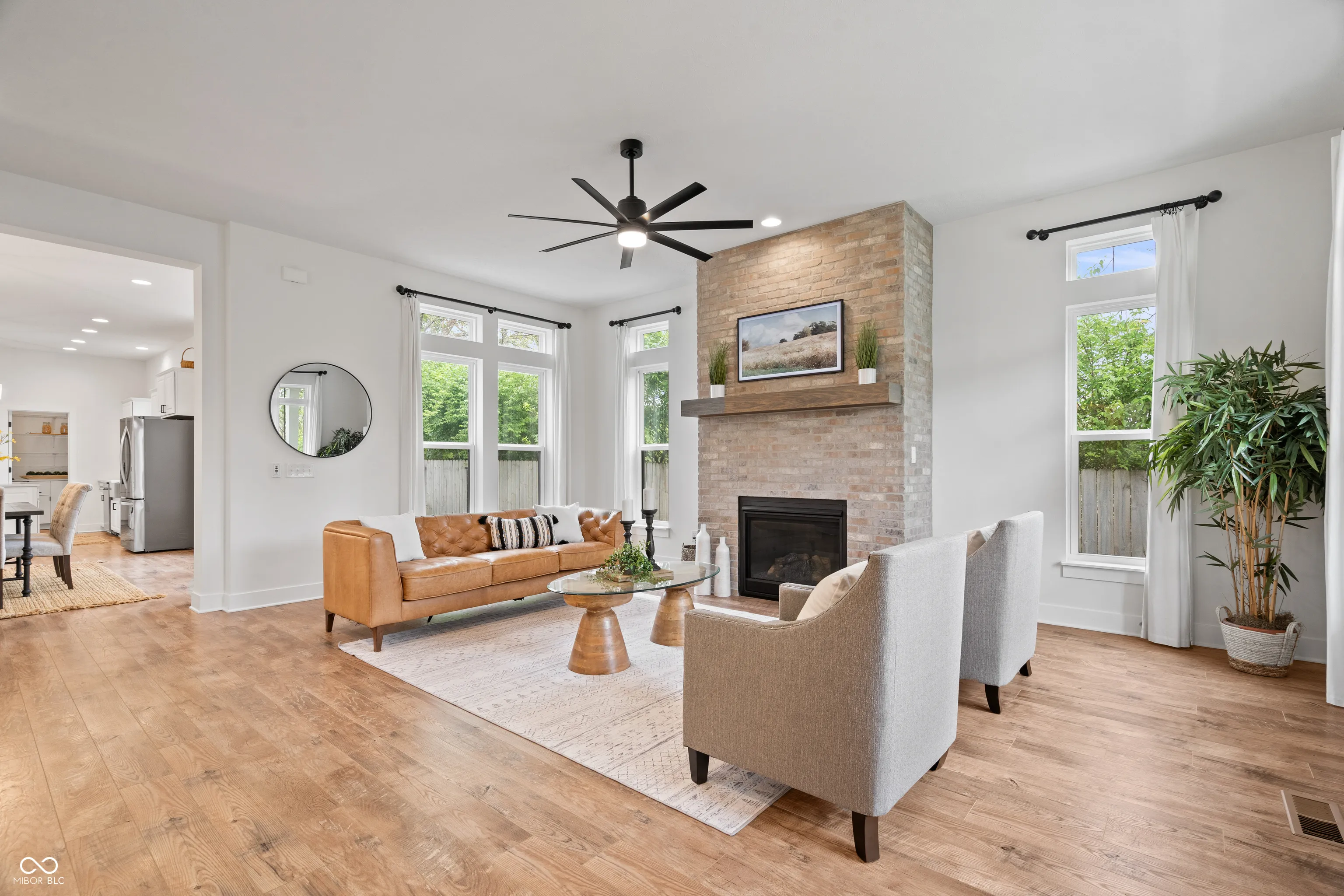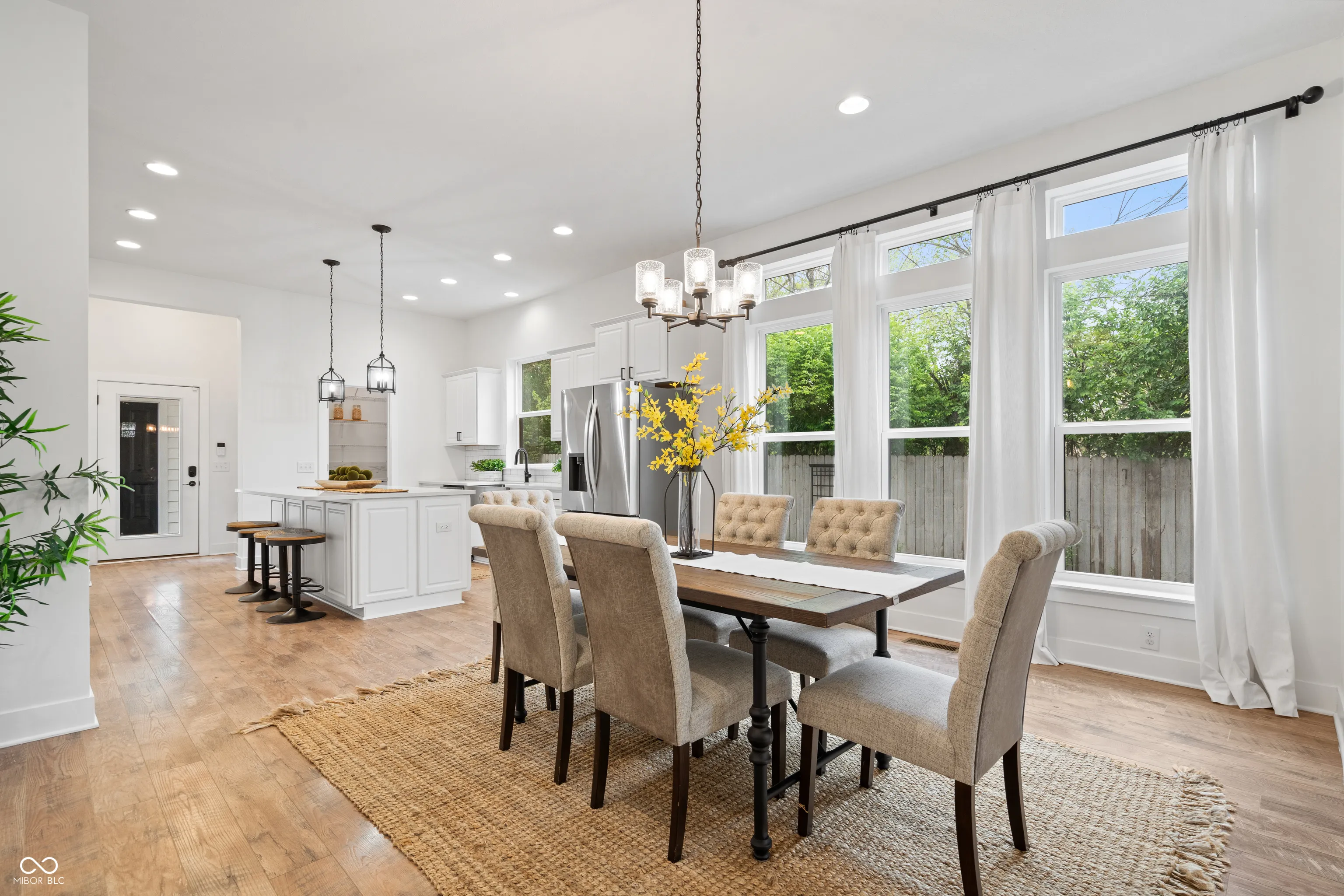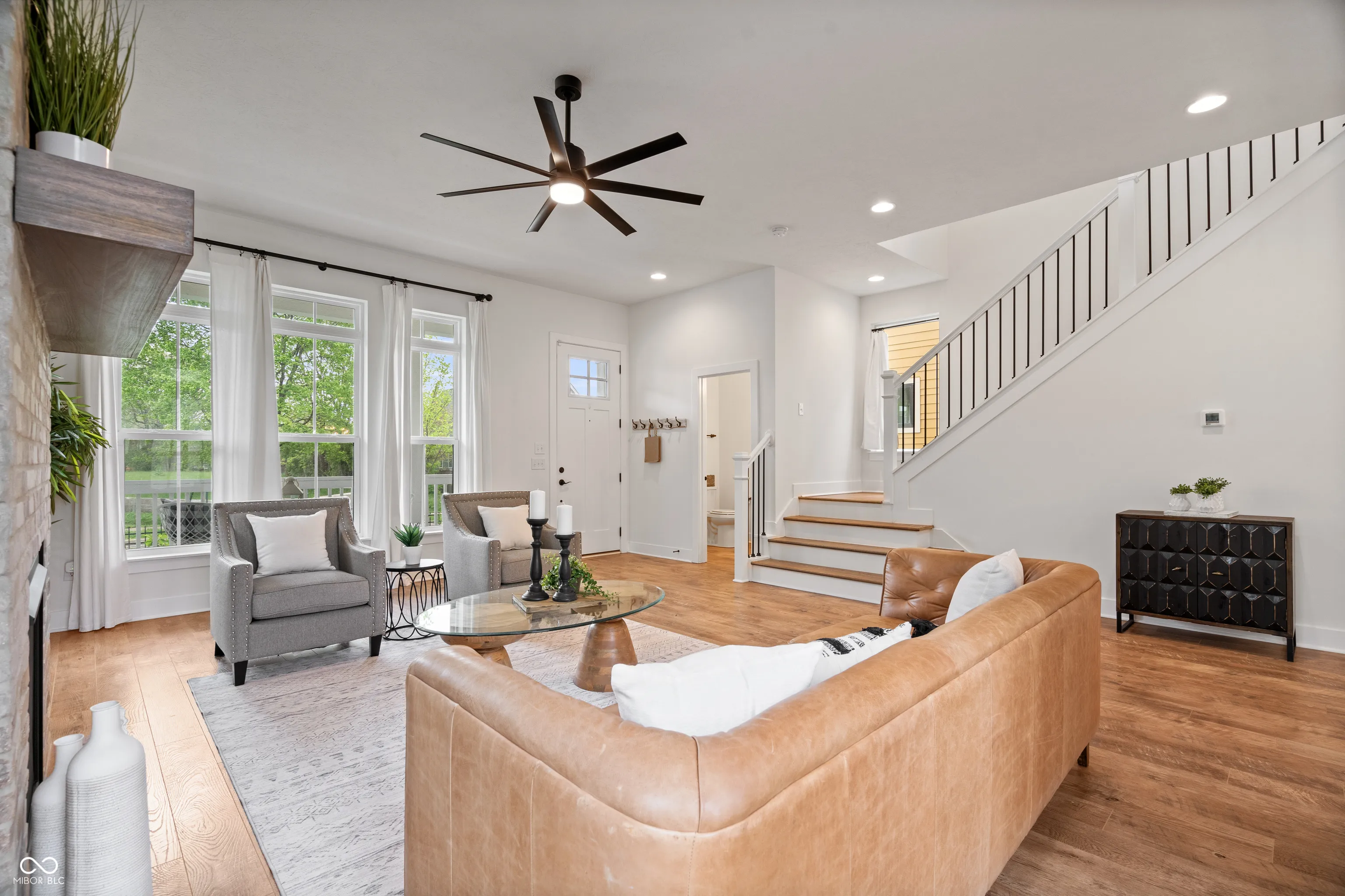 Welcome to 2044 Alvord – Where Downtown Meets Suburban Living! This stunning 4-bedroom, 4-bath home is a true showstopper. Step through the front door and be greeted by soaring 10-foot ceilings, a stylish brick gas fireplace, and large windows that flood the space with natural light. The open-concept living area flows seamlessly into a gourmet chef’s kitchen featuring a spacious center island, stainless steel appliances, and an abundance of cabinetry – perfect for entertaining or everyday living. Upstairs, you’ll find a luxurious primary suite with a spa-like ensuite bath, dual vanities, and an oversized walk-in shower. The second floor boasts brand-new luxury vinyl hardwood flooring throughout, and hardwoods on staircase. Two additional bedrooms offer generous closets and natural light. The fully finished basement is ideal for entertaining and includes a bedroom with an egress window and a full bathroom. Brand-new carpet adds a fresh, cozy feel. Outside, enjoy a fully fenced, manicured, and private backyard. As an end unit, this home offers extra rear parking – a rare find! Plus, it backs directly onto the Monon Trail and is just minutes from local favorites like The Garage, Mass Ave, and other top restaurants. This home truly has it all – are you ready for the downtown life?