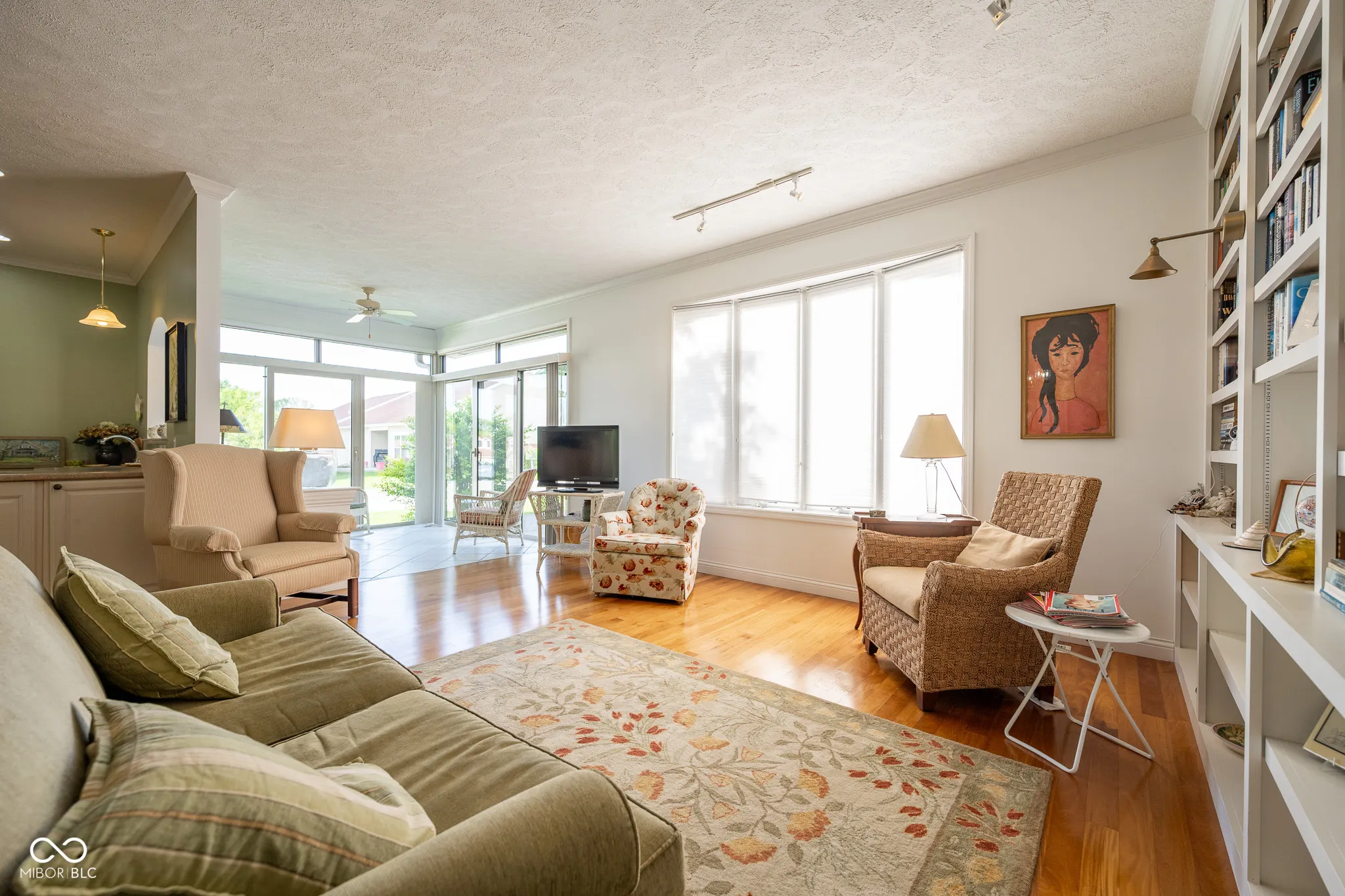 Welcome to this beautifully appointed 2-bedroom, 2-bath condo in the desirable Glenview Condos-an active 55+ community designed for comfort, convenience, and true accessibility. This spacious, free-standing, corner unit is mobility accessible, featuring seamless hardwood flooring throughout, wide doorways, and a ramp from the attached 2-car garage for step-free entry. The custom kitchen is both stylish and functional, featuring a roll-under cooktop, built-in oven, and sink, plus a stunning custom range hood and a pass-through to the sunroom for effortless entertaining. The living room offers warmth and charm with a floor-to-ceiling bookcase, flowing into a sunroom with floor-to-ceiling windows that bring in beautiful natural light. An elegant French door leads into the spacious primary suite, which includes a fully accessible en-suite bath with a roll-in shower. A second bedroom and full bath offer space for guests, hobbies, or an office. Mature trees provide shady outdoor enjoyment whether you are sitting on the covered front porch or enjoying the back patio, they add a peaceful backdrop to your daily routine. Additional features include a smart home security system with cameras, a MyQ garage camera, and smart locks on the front entrance-providing both safety and convenience with remote access and monitoring inside and out. Enjoy low-maintenance, independent living in a welcoming, amenity-rich 55+ community. This rare corner unit blends accessibility, comfort, and thoughtful upgrades-schedule your private showing today!”