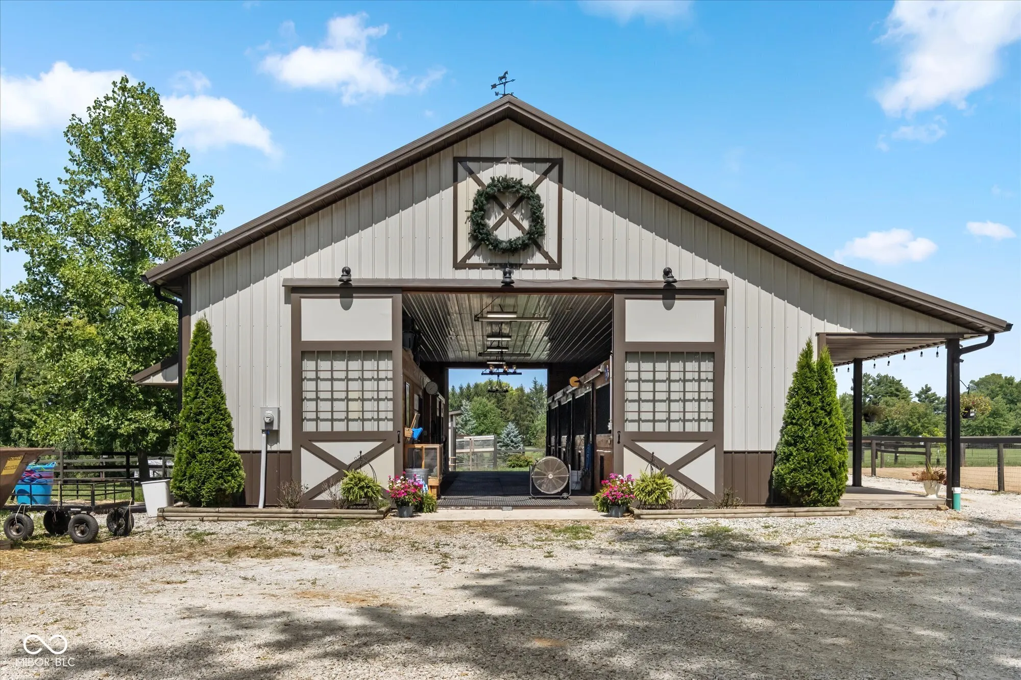 WELCOME TO YOUR NEW HOME! This property has so much to offer! 5-ACRE Horse property. CUSTOM built 36×48 Insulated/Heated Barn, air exchange system, 5 1/2 stalls, wash bay hot/cold water, feed room, lounge-tack room. 100×100 riding arena, 2 dry lots, 5 pastures with multiple gates, 2 hay shelters, custom goat shed, custom chicken shed. This home has a Geothermal system, a remodeled 3-bedroom home with an updated kitchen, flooring, and baths. The lower level offers an in-law suite with a large master bedroom, an ensuite, family room, kitchen & walkout to patio. Enjoy evenings relaxing on the back deck or screened porch that overlooks the koi pond, apple orchard & gardens. Hot tub included. 20+ raised garden beds with an irrigation system. Total of 2 Parcels/ 5.33 acres (SEE PROPERTY FEATURES SHEETS FOR MORE DETAILS) TAXES DO NOT REFLECT A HOMESTEAD EXEMPTION – BUYER TO CONFIRM THE TAX REDUCTION WITH THE COUNTY.