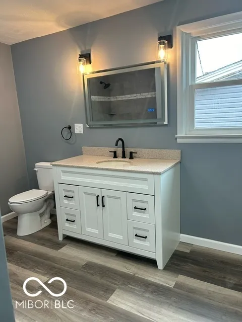 Completely remodeled 2-3 bedroom, 2 bath home on large lot with 2.5 car detached garage. This home features a huge covered front porch, new siding, windows (Window World), and exterior doors. Roof only one year old. All new vinyl plank flooring throughout the home. Updated kitchen has new electric cooktop, built in oven, garbage disposal, and countertops. Two totally new bathrooms with custom tile work are awesome. New AC, updated plumping and electrical. Detached garage is 24×33, with two bays and 12×24 workshop. Lots of parking space. Attic is unfinished with one room completed and has a stairway. Cellar contains furnace, water heater, and sump pump.