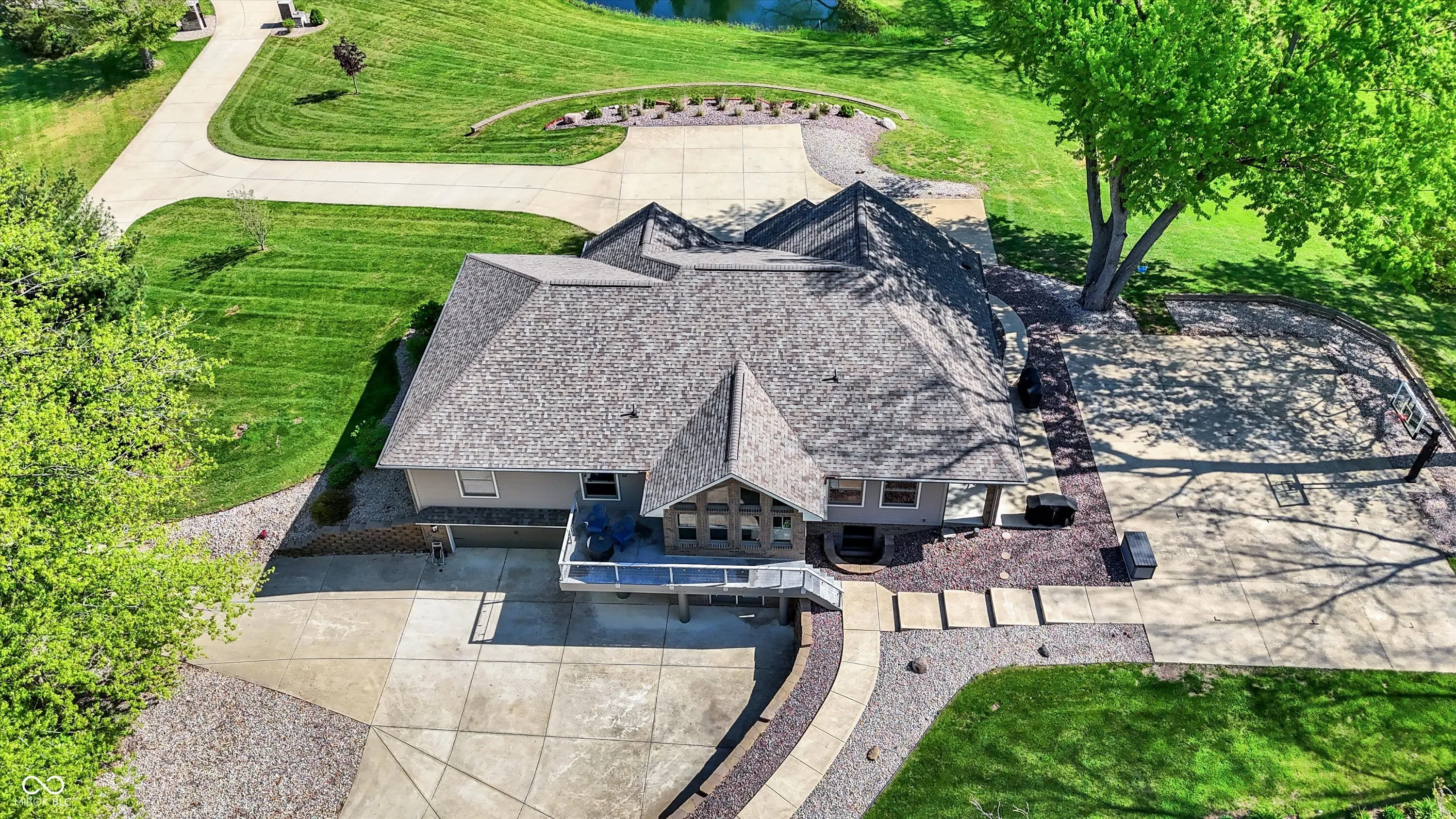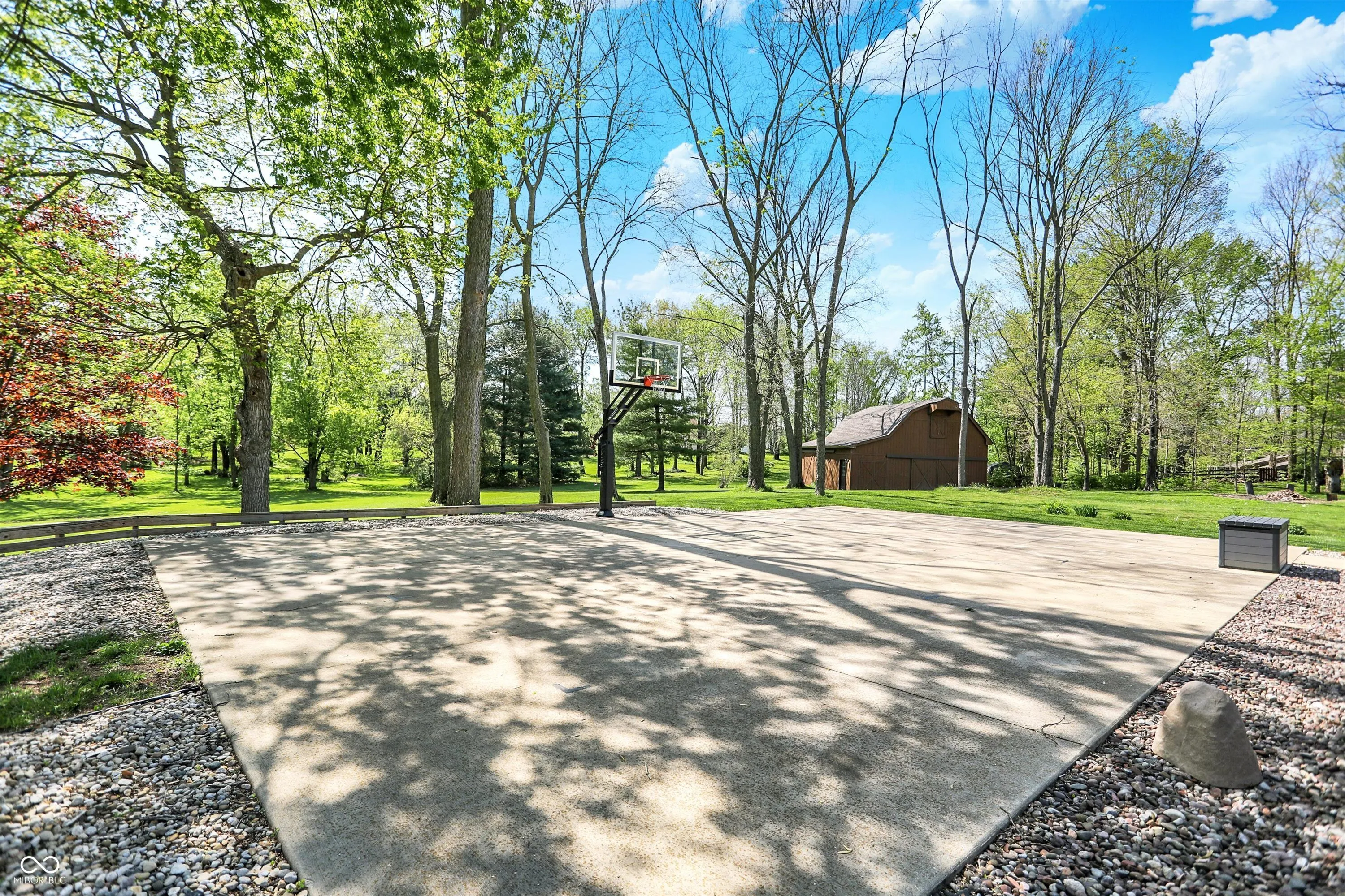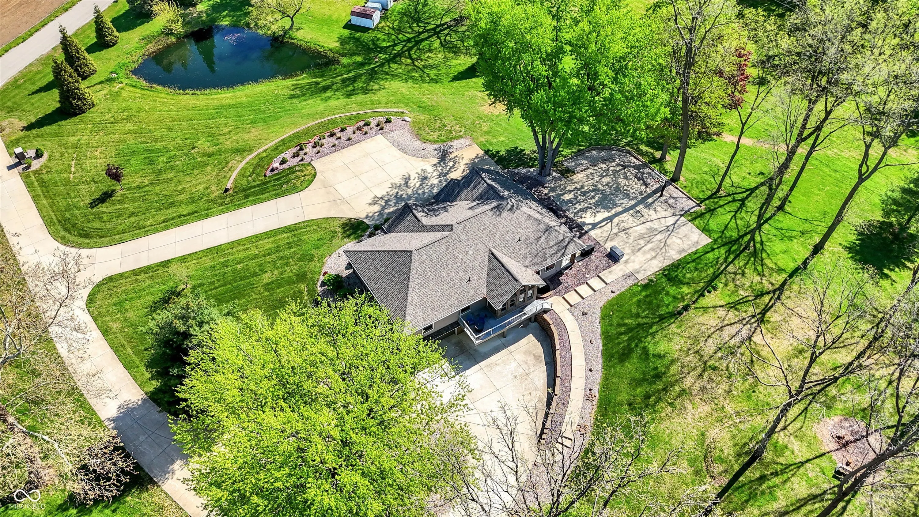 Modern meets Country in the heart of Center Grove! This 4 bedroom spectacular Ranch w/a walkout basement sits on 4.5 majestic acres and includes a Pond, Basketball Court, and 2 story Barn on the property! If you have ever dreamed of a sprawling driveway this one will not disappoint! Gorgeous engineered hardwood floors meet you at the front door and flow throughout most of the main level. The timeless kitchen boasts high-end finishes and appliances and is open to both the dining room and family room! Do not miss the walk-in custom pantry! Natural light filters in through large windows in the expansive family room. The cathedral ceiling in the living room adds a design element while bringing in even more of the outside! The tranquil Primary Bedroom and spa like ensuite bathroom are conveniently connected to the laundry room through the custom walk-in closet. Two additional spacious bedrooms and a full bathroom round out the main level. It will be movie & popcorn night in the walk out basement with the oversized great room and wet bar with full size refrigerator and sink. The 4th bedroom and a full bathroom are conveniently located in the basement as well. An abundance of storage can be found between the finished storage room, under stairs storage, and the oversized finished 2 car garage! An additional 2 car detached garage is also on the property! This home has it all from inside to outside, whether you are entertaining friends and family for a barbecue on the patio or watching the sunset from the deck while having a quiet evening at home!