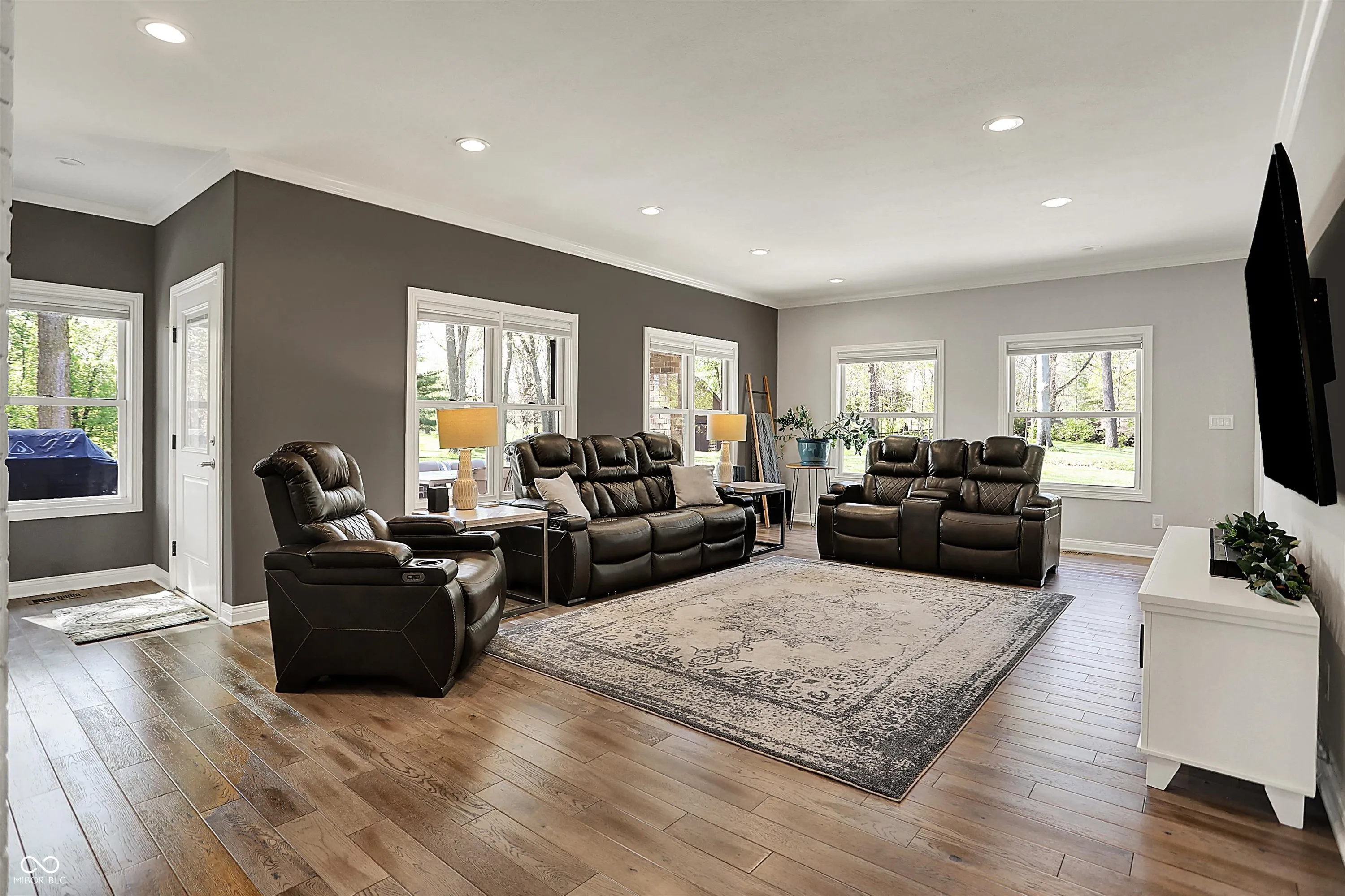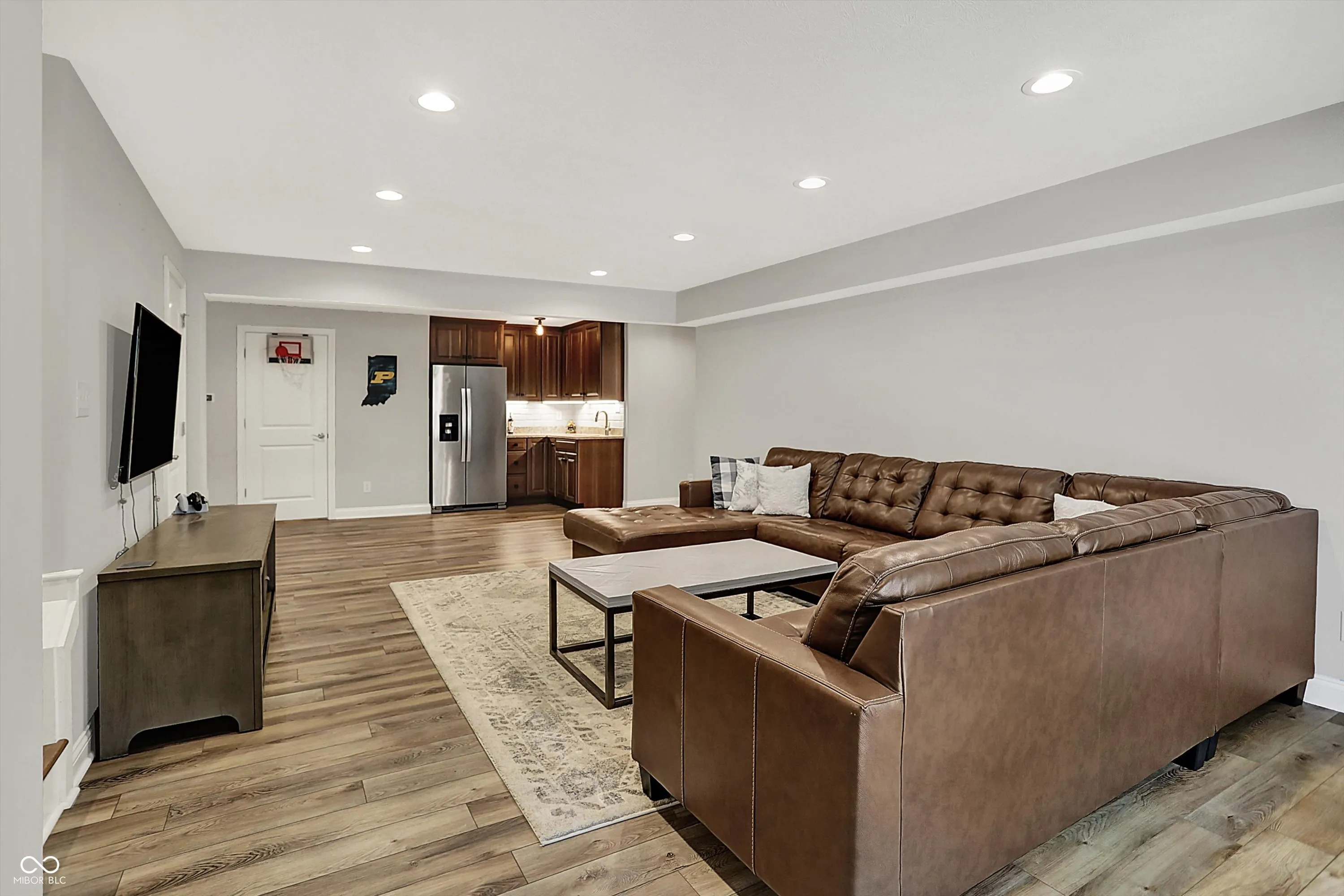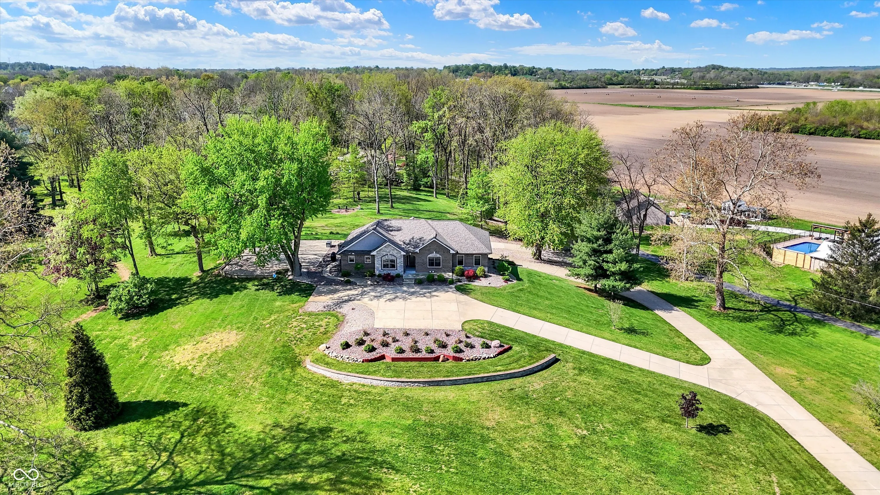 Modern meets Country in the heart of Center Grove! This 4 bedroom spectacular Ranch w/a walkout basement sits on 4.5 majestic acres and includes a Pond, Basketball Court, and 2 story Barn on the property! If you have ever dreamed of a sprawling driveway this one will not disappoint! Gorgeous engineered hardwood floors meet you at the front door and flow throughout most of the main level. The timeless kitchen boasts high-end finishes and appliances and is open to both the dining room and family room! Do not miss the walk-in custom pantry! Natural light filters in through large windows in the expansive family room. The cathedral ceiling in the living room adds a design element while bringing in even more of the outside! The tranquil Primary Bedroom and spa like ensuite bathroom are conveniently connected to the laundry room through the custom walk-in closet. Two additional spacious bedrooms and a full bathroom round out the main level. It will be movie & popcorn night in the walk out basement with the oversized great room and wet bar with full size refrigerator and sink. The 4th bedroom and a full bathroom are conveniently located in the basement as well. An abundance of storage can be found between the finished storage room, under stairs storage, and the oversized finished 2 car garage! An additional 2 car detached garage is also on the property! This home has it all from inside to outside, whether you are entertaining friends and family for a barbecue on the patio or watching the sunset from the deck while having a quiet evening at home!