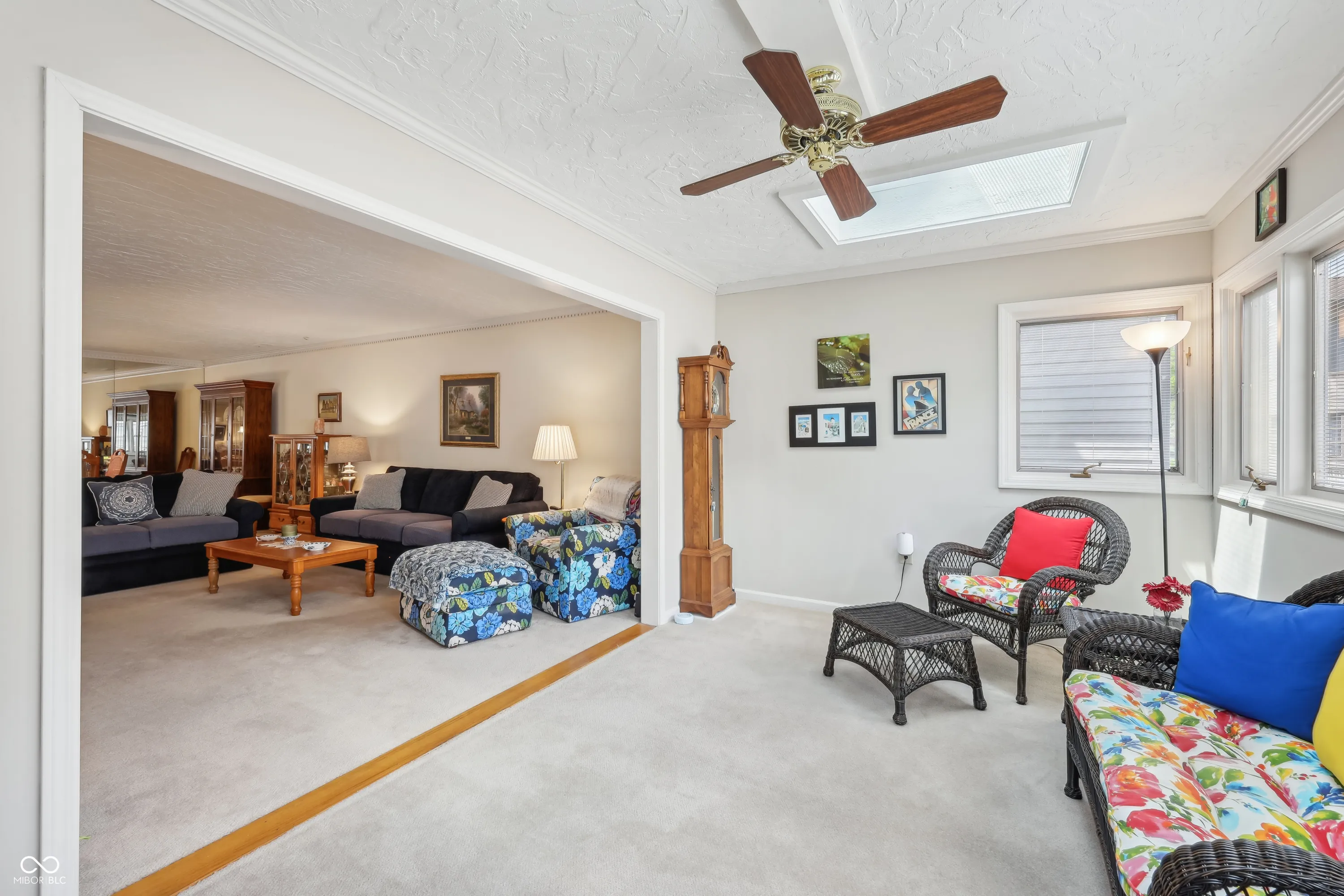 Welcome to the desirable Overlook Condominiums! This light-filled home features a dramatic two-story entry and numerous updates throughout. The modern kitchen boasts new appliances, granite countertops, updated sink, faucet, and lighting. Enjoy formal living and dining areas, plus a bright sunroom perfect for relaxing. The cozy den/library includes a fireplace, built-ins, crown molding, and built-in speaker wiring. Upstairs, the spacious primary suite offers a large walk-in closet, an abundance of natural light and a deck. The upper-level laundry is conveniently located in the hallway. The second bedroom features two closets and beautiful hardwood floors. The bonus room serves as an office with additional storage. An oversized, heated two-car garage includes built-in storage cabinets. Association fees cover water, sewer, indoor tennis/pickleball, exercise room, library and meeting/party room with full kitchen access to the clubhouse. HVAC 3 years old. Roof 7 years old. Washer/dryer included. Excellent location. A place you will want to call home.