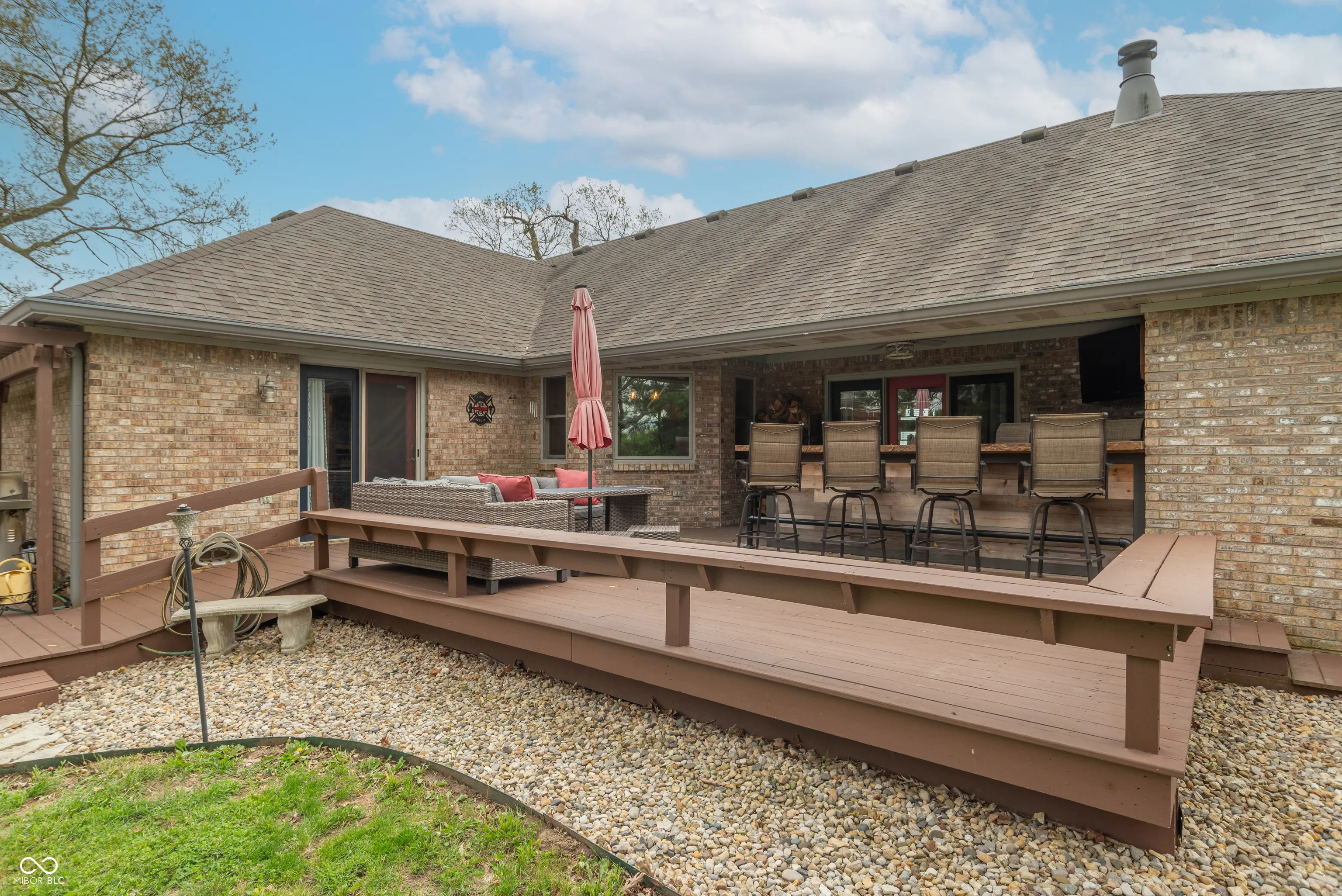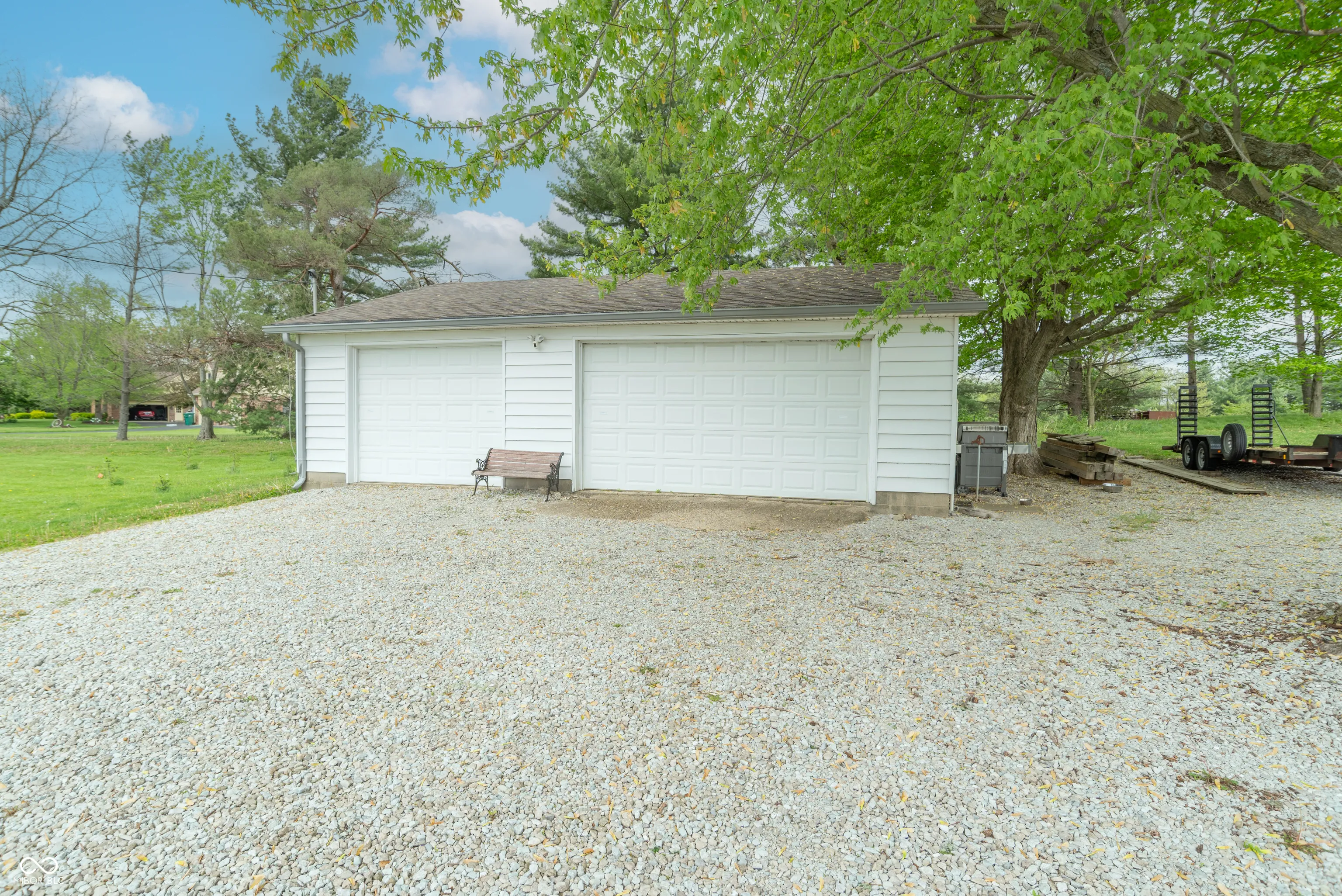 Charming Country Style Home with nearly 6 acres of open space in the sought-after Clark-Pleasant school district, this beautifully maintained 3-bedroom, 2-bathroom home offers 2,198 square feet of comfortable living with modern updates and exceptional outdoor features. Step inside to find brand new Bella windows installed in 2024, complete with custom trim throughout, adding a nice touch of natural light. Entertain effortlessly on the expansive back deck, enhanced by a sleek concrete bar added in 2023-perfect for summer gatherings. Just steps away, enjoy cool evenings around the newly built large fire pit in your private backyard oasis. Car enthusiasts and hobbyists will love the 36′ x 32′ detached garage, equipped with a propane Reznor heater, separate 100 amp service, and Wi-Fi connectivity-ideal for a workshop, studio, or storage. There’s also a convenient 2-car attached garage. This move-in ready property combines the peace of country living with high-end functionality, making it a must-see. Schedule your private showing today and experience the possibilities!