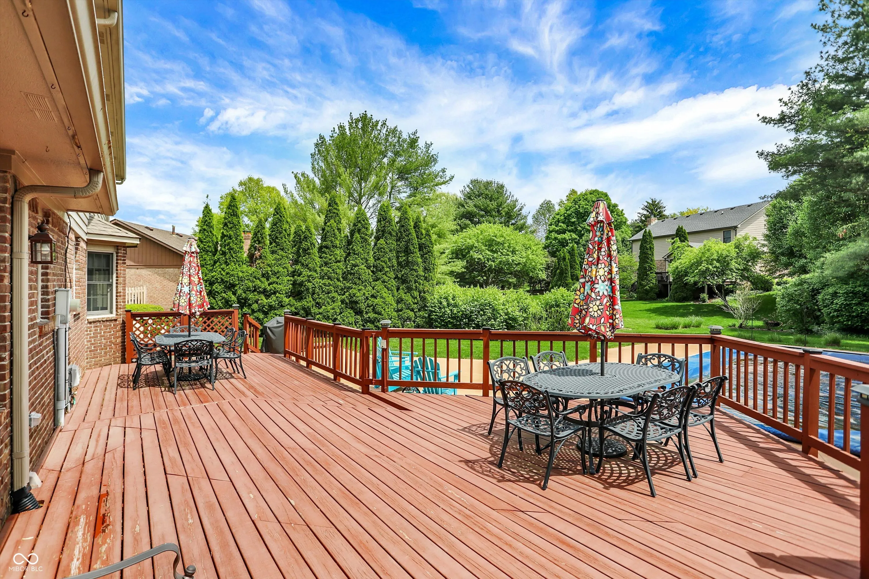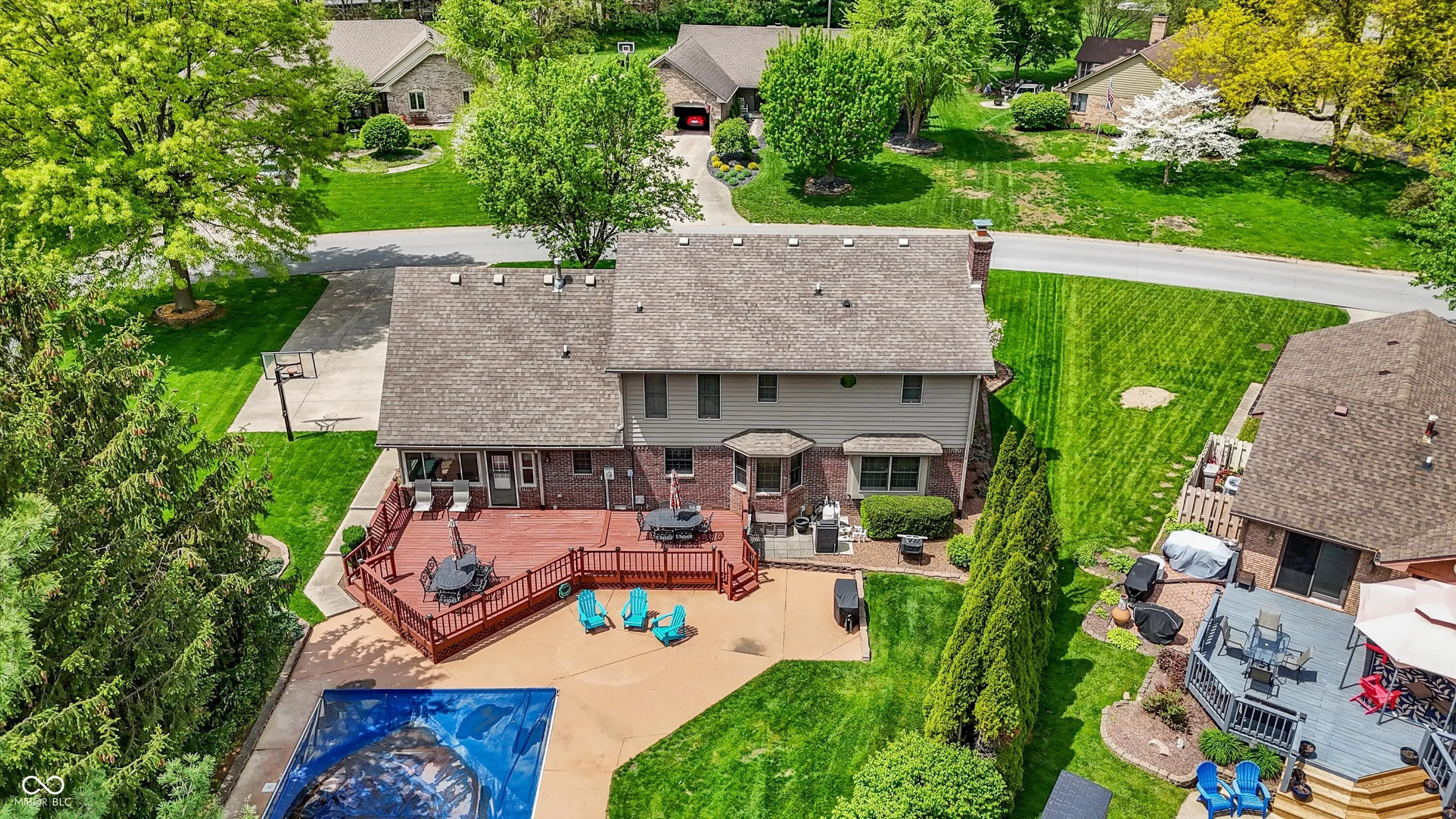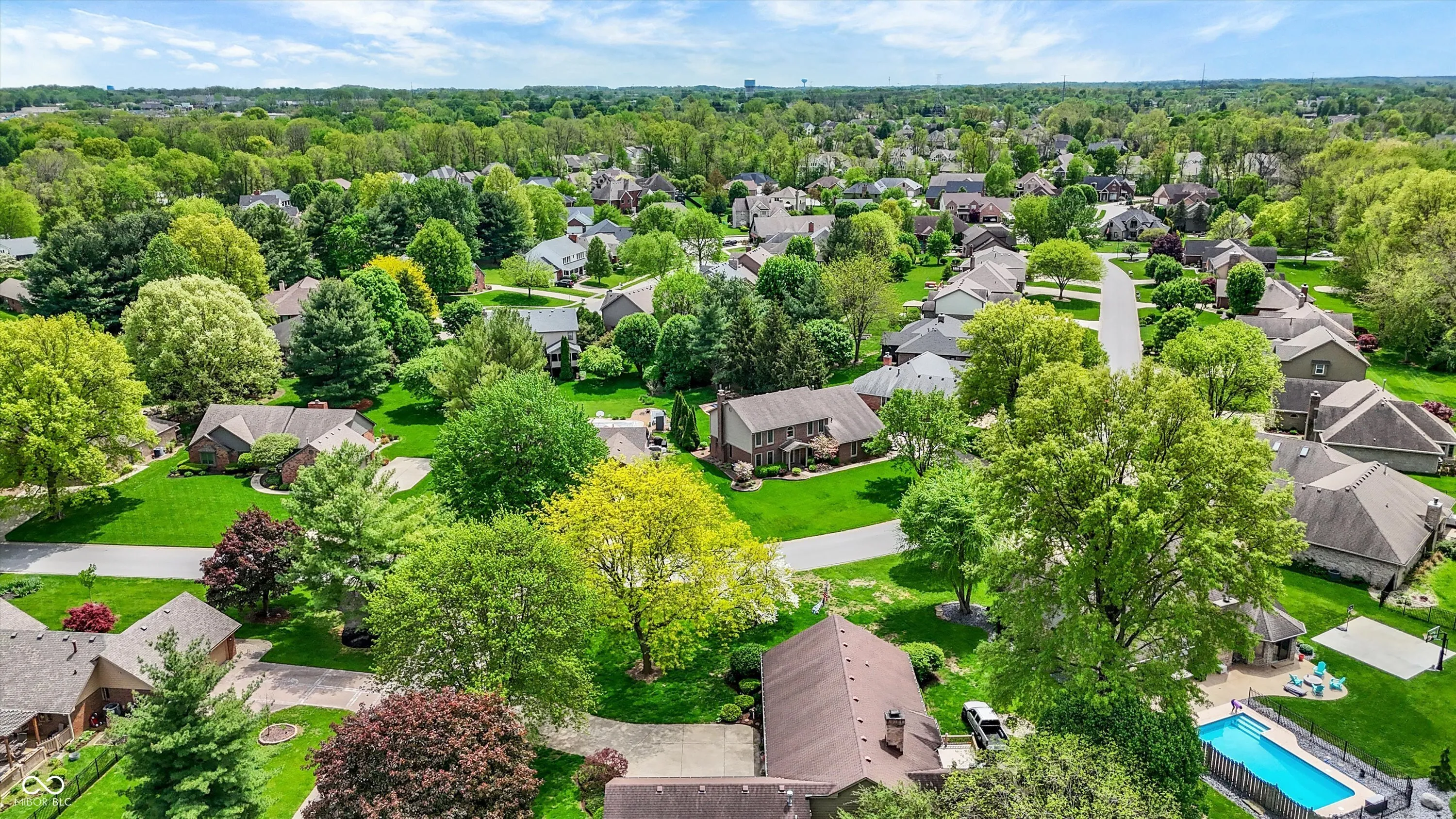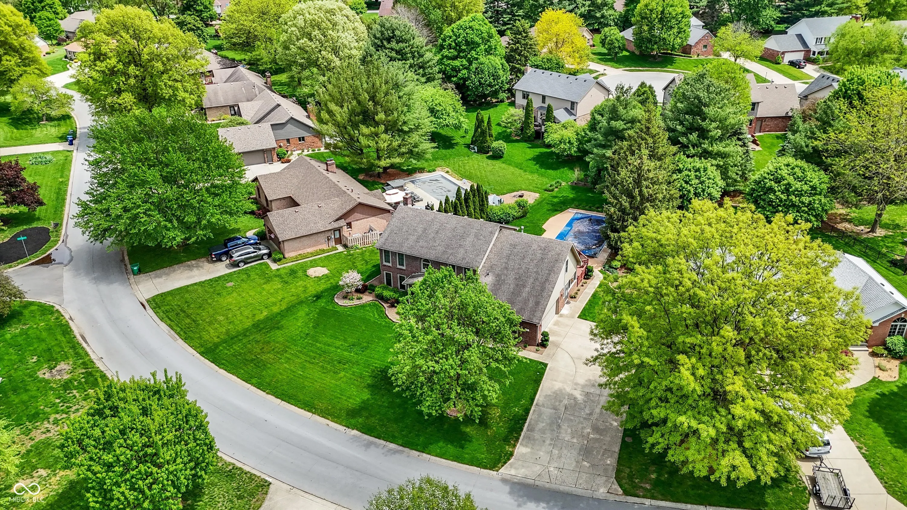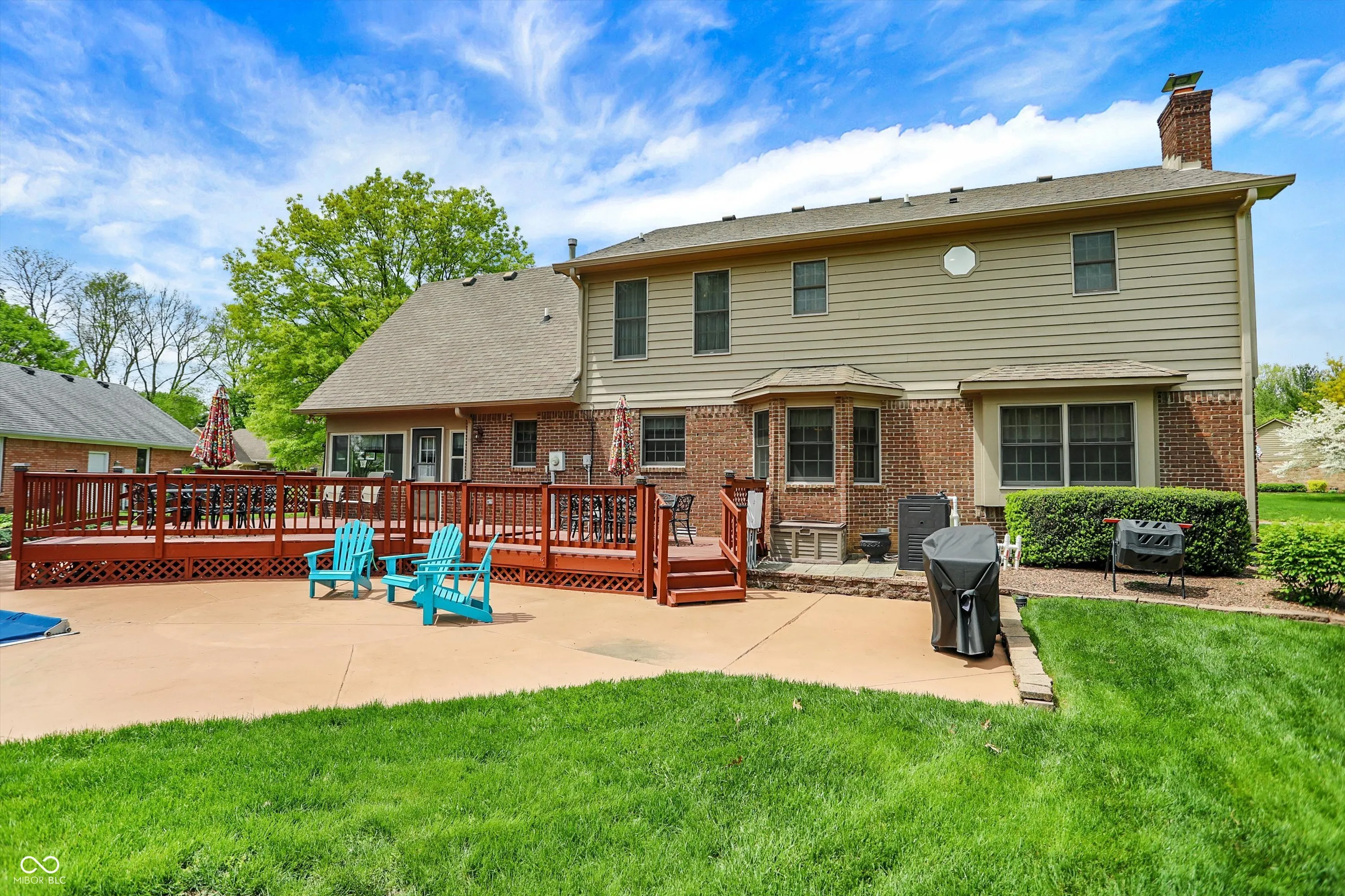 Welcome to this beautifully maintained 4-bedroom, 2.5-bath home situated on a spacious lot in one of Greenwood’s most sought-after neighborhoods AND the Center Grove School District! Featuring incredible curb appeal and a tree-lined backyard oasis, this home offers the perfect blend of comfort, style, and functionality. Step inside to gleaming solid oak floors and a formal dining room highlighted by an elegant tray ceiling and crown molding- ideal for entertaining. The large, eat-in kitchen is a chef’s dream, boasting a center island, ceramic tile flooring, solid surface countertops, included appliances, and a handy command center. Relax in the cozy family room with a floor-to-ceiling brick gas fireplace, or unwind in the bright sunroom-complete with its own refrigerator-leading to your private backyard paradise. Enjoy summer days by the sparkling inground pool (opening May 27th), host gatherings on the expansive deck, or lounge on the concrete patio surrounded by lush, mature trees. The spacious primary suite is a true retreat, offering a remodeled en-suite bath with dual sinks, a walk-in shower, and abundant natural light from two windows. The remodeled guest bath also features dual sinks and a convenient linen closet. A dedicated laundry room with a folding station adds everyday convenience. Additional features include a whole-house water filtration system, a heated and EV-ready garage, and a large yard perfect for outdoor living.