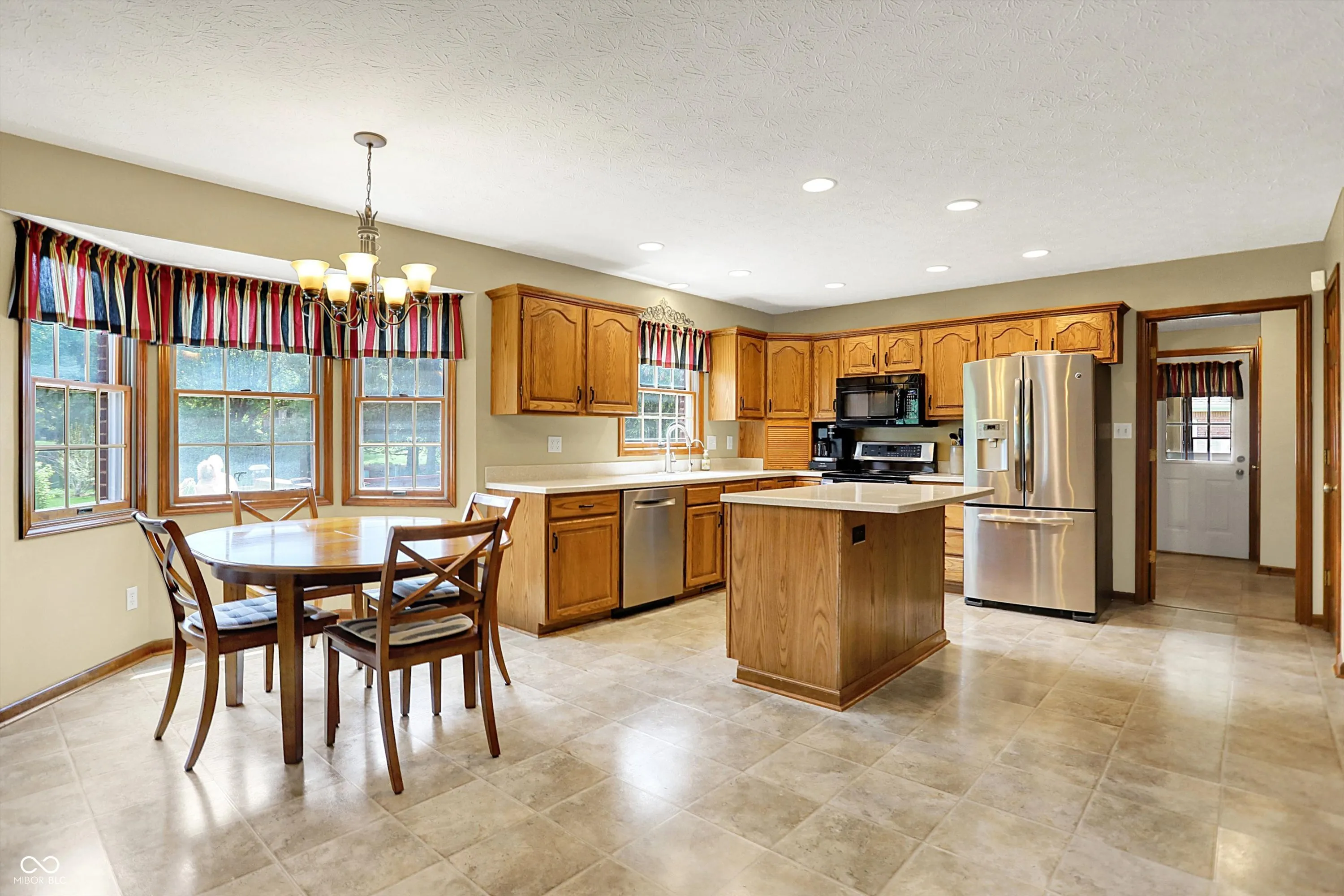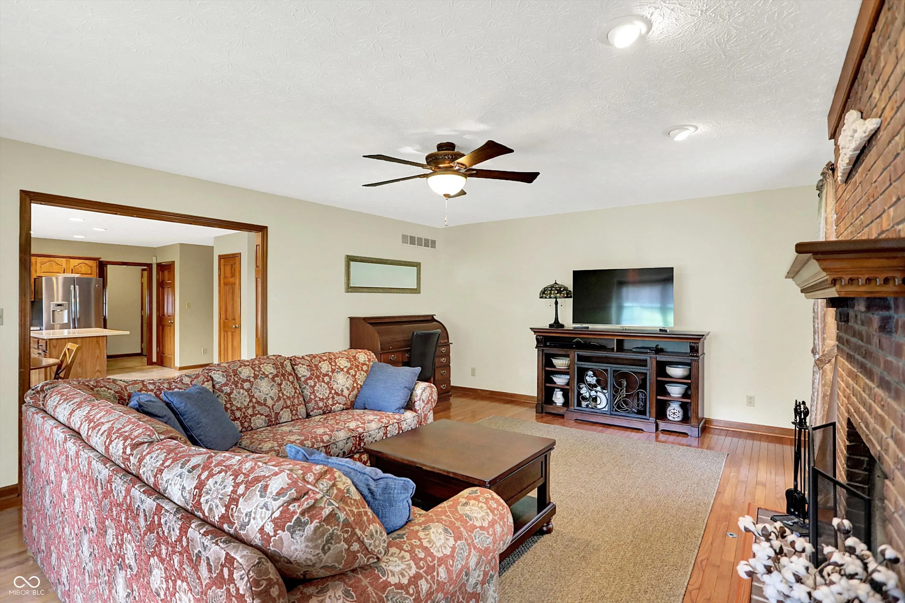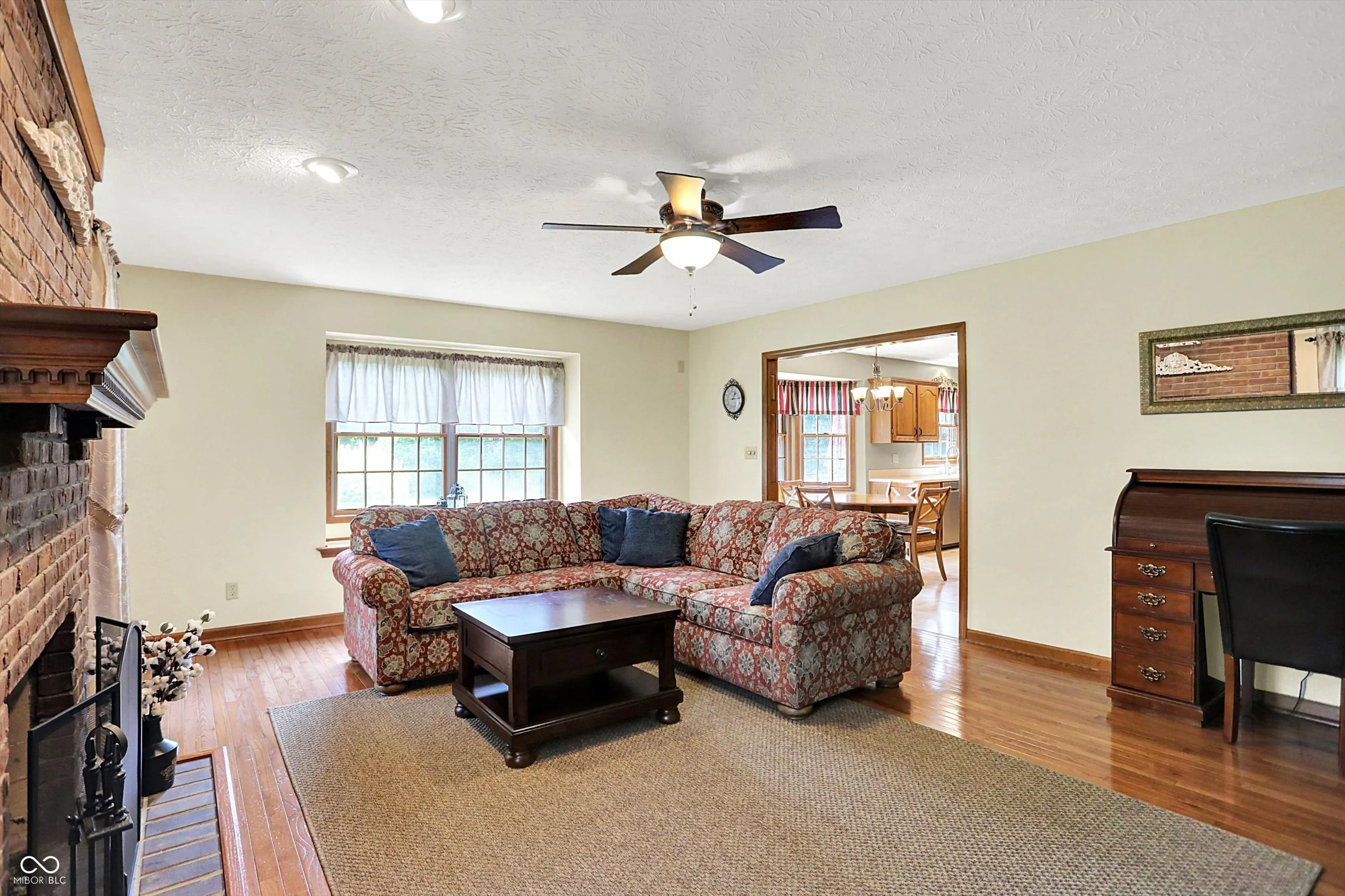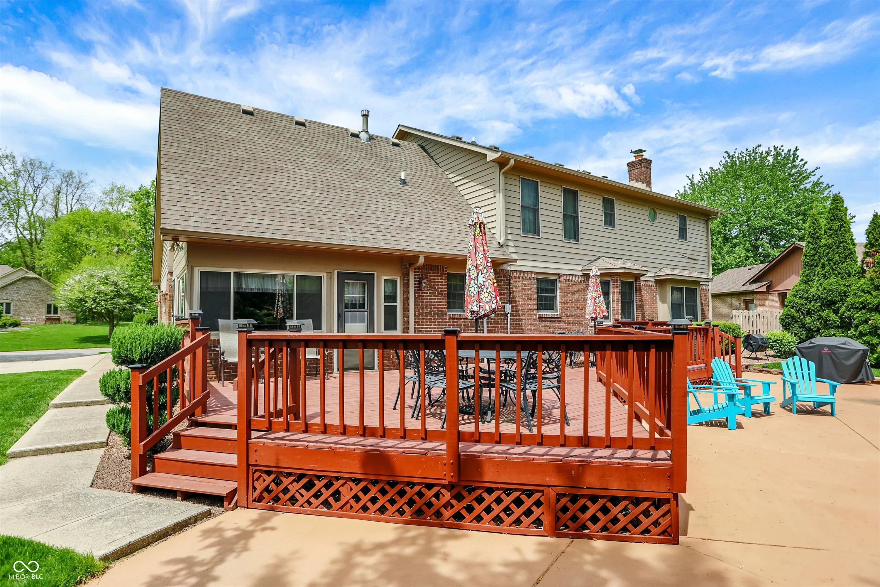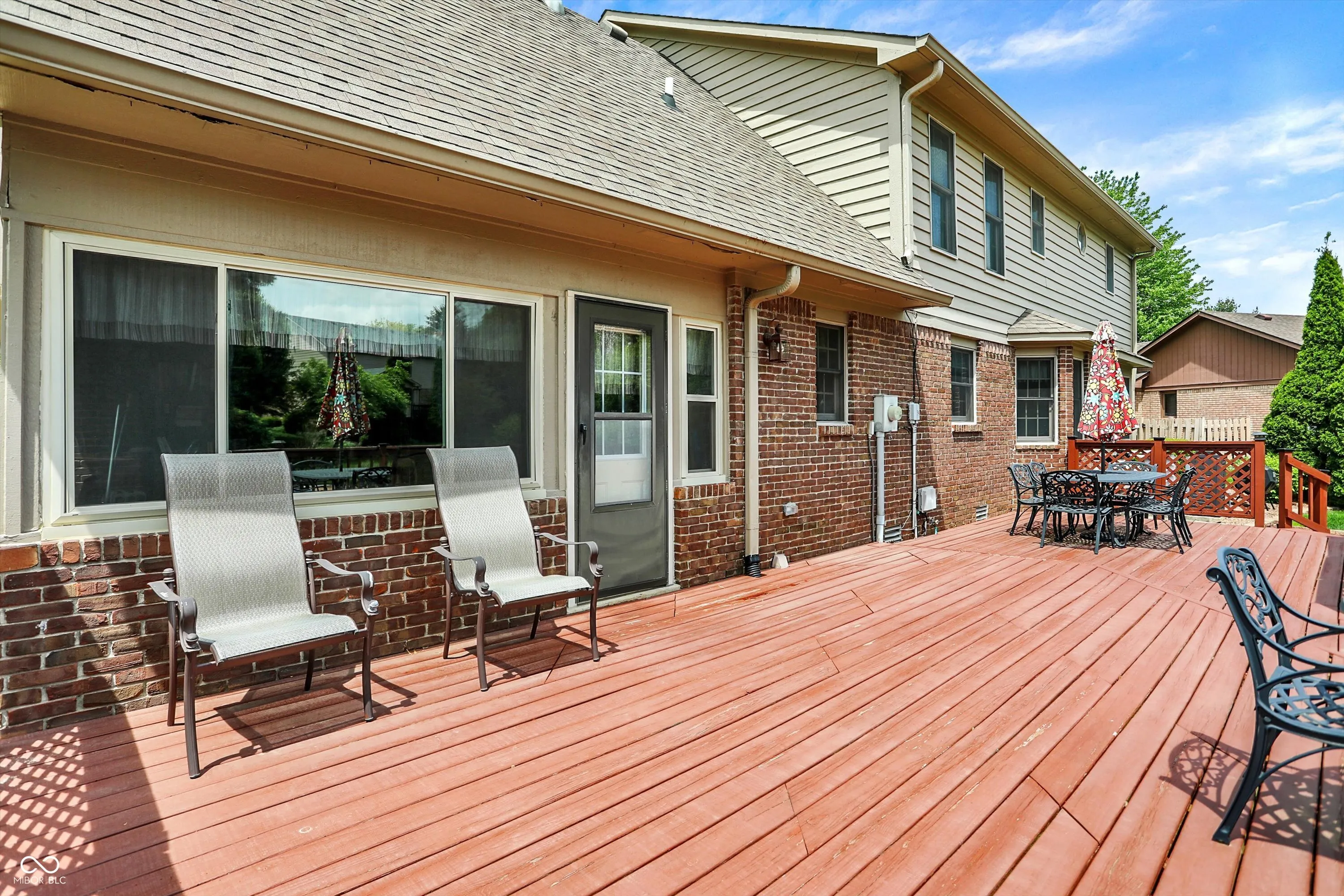 Welcome to this beautifully maintained 4-bedroom, 2.5-bath home situated on a spacious lot in one of Greenwood’s most sought-after neighborhoods AND the Center Grove School District! Featuring incredible curb appeal and a tree-lined backyard oasis, this home offers the perfect blend of comfort, style, and functionality. Step inside to gleaming solid oak floors and a formal dining room highlighted by an elegant tray ceiling and crown molding- ideal for entertaining. The large, eat-in kitchen is a chef’s dream, boasting a center island, ceramic tile flooring, solid surface countertops, included appliances, and a handy command center. Relax in the cozy family room with a floor-to-ceiling brick gas fireplace, or unwind in the bright sunroom-complete with its own refrigerator-leading to your private backyard paradise. Enjoy summer days by the sparkling inground pool (opening May 27th), host gatherings on the expansive deck, or lounge on the concrete patio surrounded by lush, mature trees. The spacious primary suite is a true retreat, offering a remodeled en-suite bath with dual sinks, a walk-in shower, and abundant natural light from two windows. The remodeled guest bath also features dual sinks and a convenient linen closet. A dedicated laundry room with a folding station adds everyday convenience. Additional features include a whole-house water filtration system, a heated and EV-ready garage, and a large yard perfect for outdoor living.