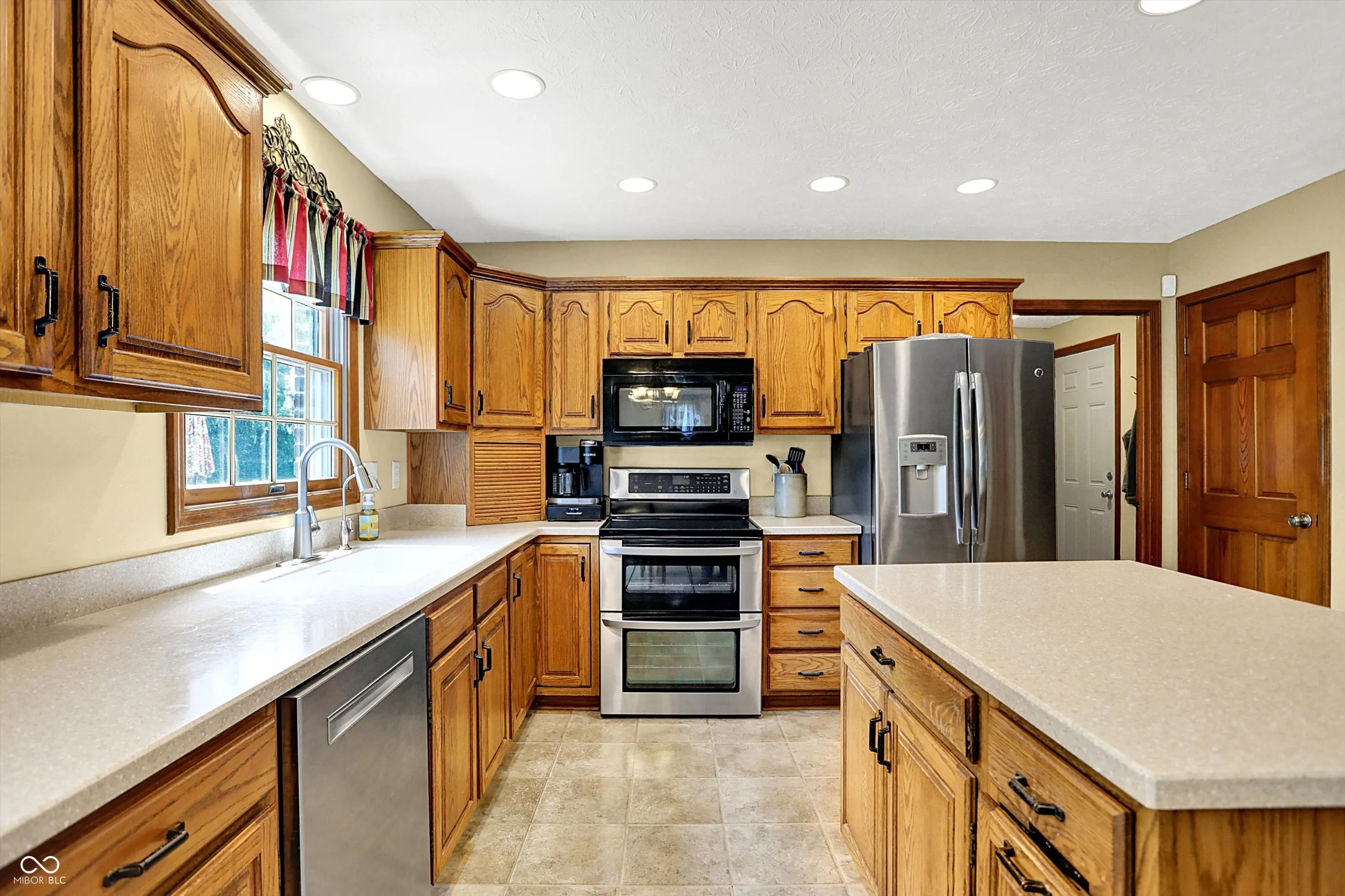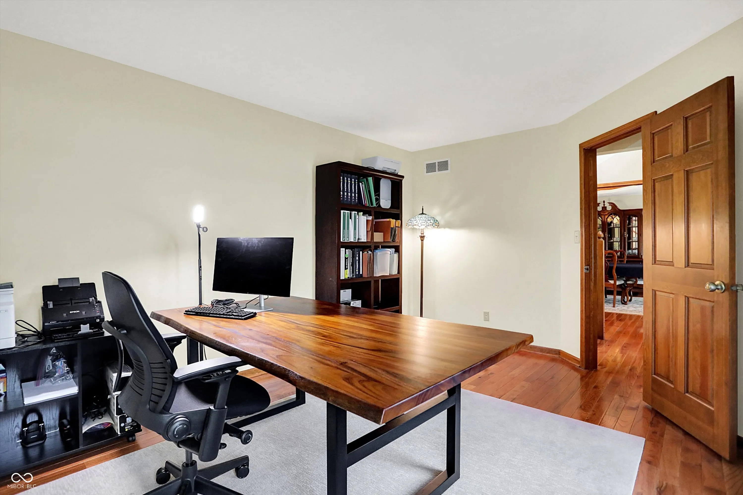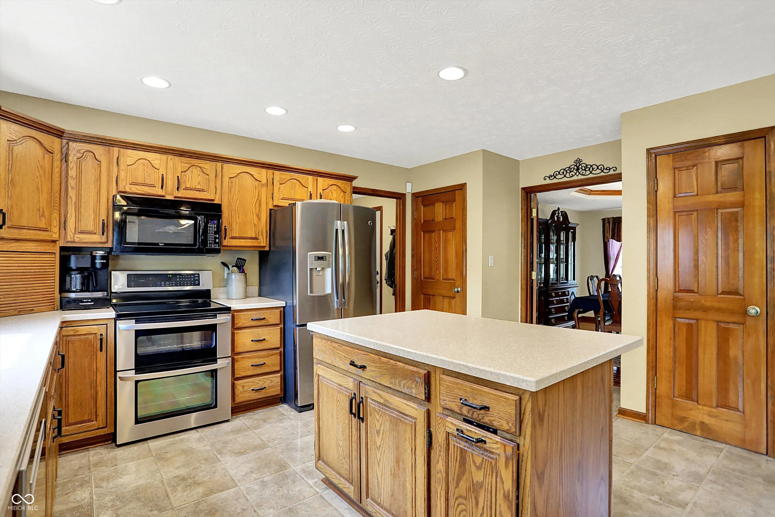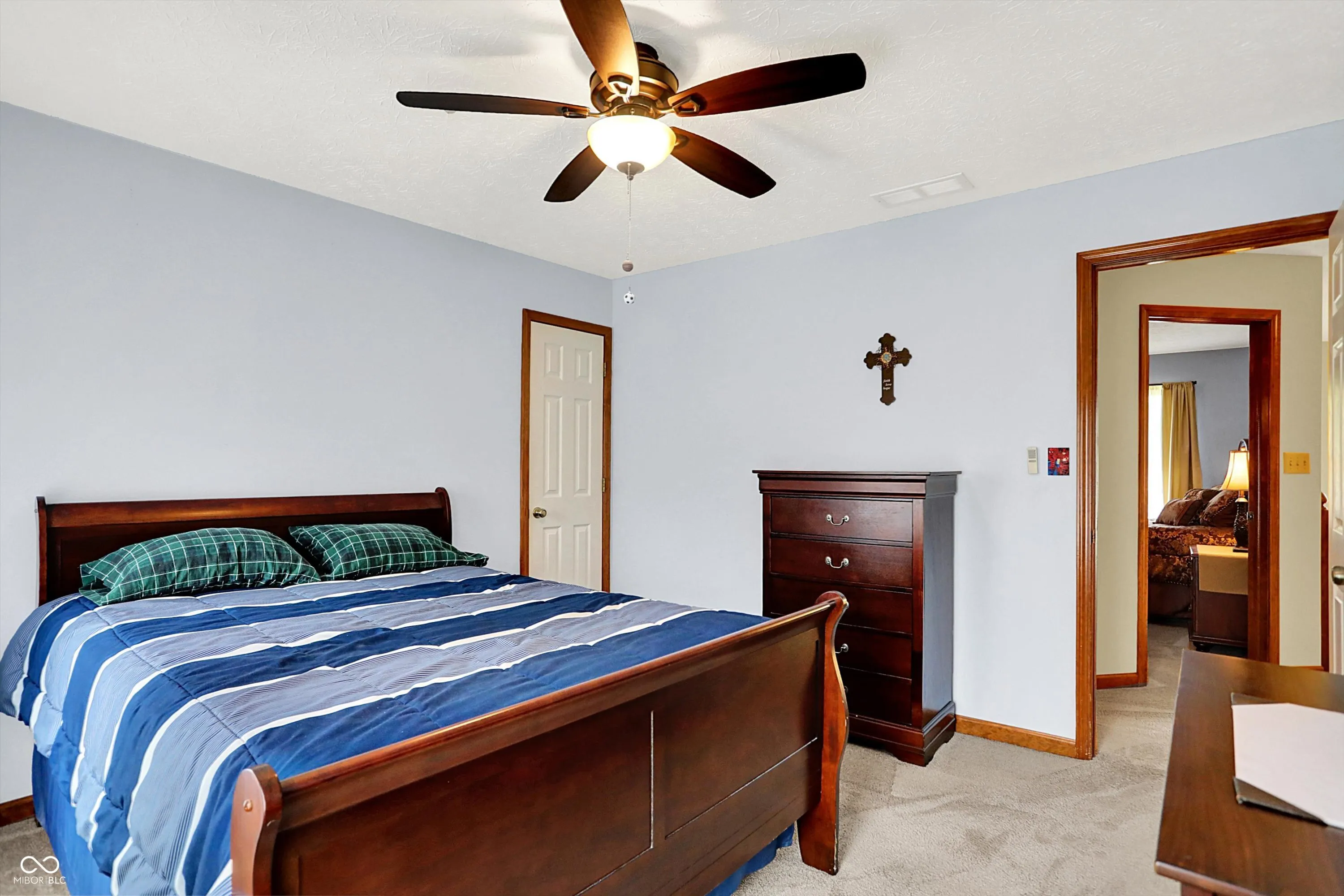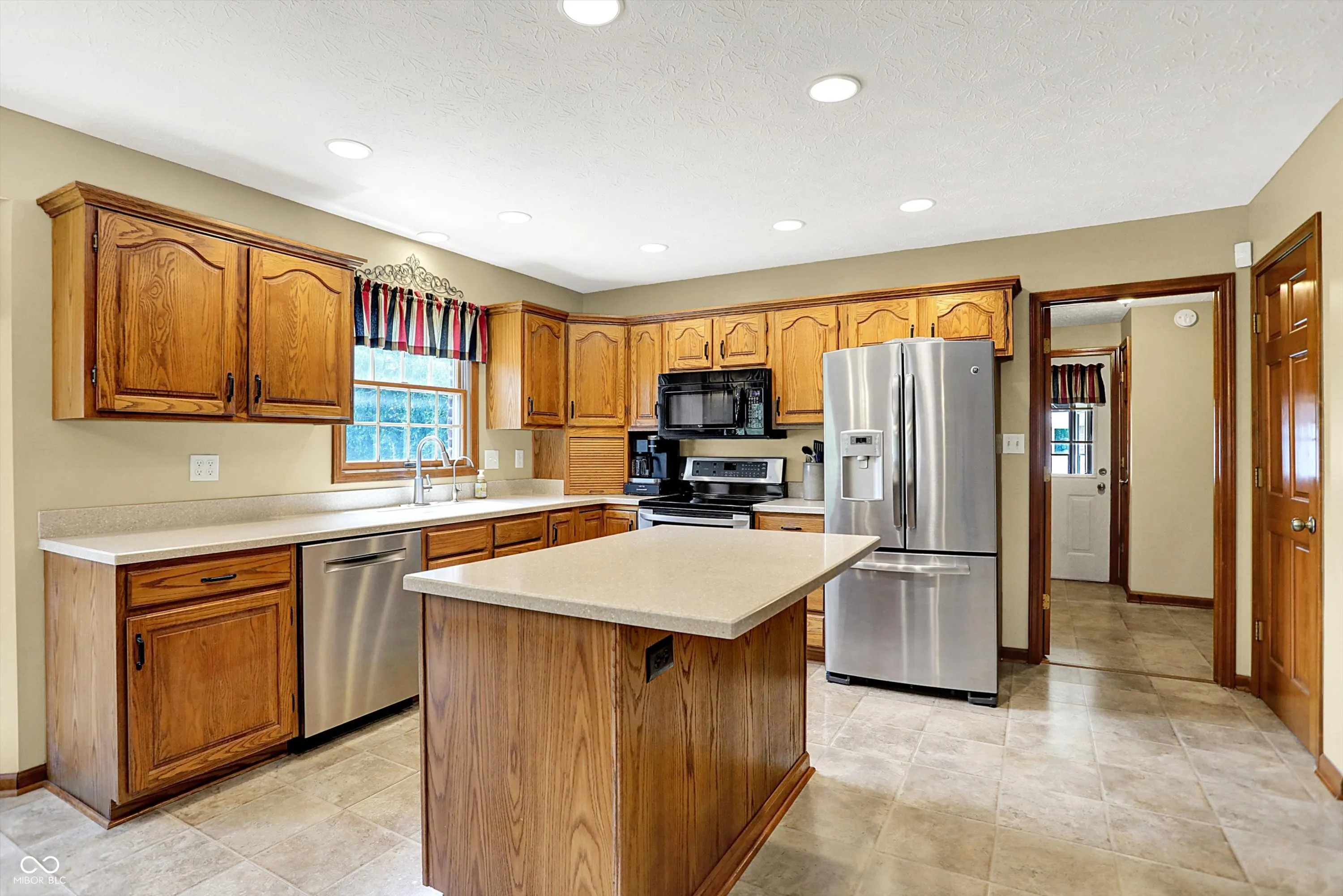 Welcome to this beautifully maintained 4-bedroom, 2.5-bath home situated on a spacious lot in one of Greenwood’s most sought-after neighborhoods AND the Center Grove School District! Featuring incredible curb appeal and a tree-lined backyard oasis, this home offers the perfect blend of comfort, style, and functionality. Step inside to gleaming solid oak floors and a formal dining room highlighted by an elegant tray ceiling and crown molding- ideal for entertaining. The large, eat-in kitchen is a chef’s dream, boasting a center island, ceramic tile flooring, solid surface countertops, included appliances, and a handy command center. Relax in the cozy family room with a floor-to-ceiling brick gas fireplace, or unwind in the bright sunroom-complete with its own refrigerator-leading to your private backyard paradise. Enjoy summer days by the sparkling inground pool (opening May 27th), host gatherings on the expansive deck, or lounge on the concrete patio surrounded by lush, mature trees. The spacious primary suite is a true retreat, offering a remodeled en-suite bath with dual sinks, a walk-in shower, and abundant natural light from two windows. The remodeled guest bath also features dual sinks and a convenient linen closet. A dedicated laundry room with a folding station adds everyday convenience. Additional features include a whole-house water filtration system, a heated and EV-ready garage, and a large yard perfect for outdoor living.