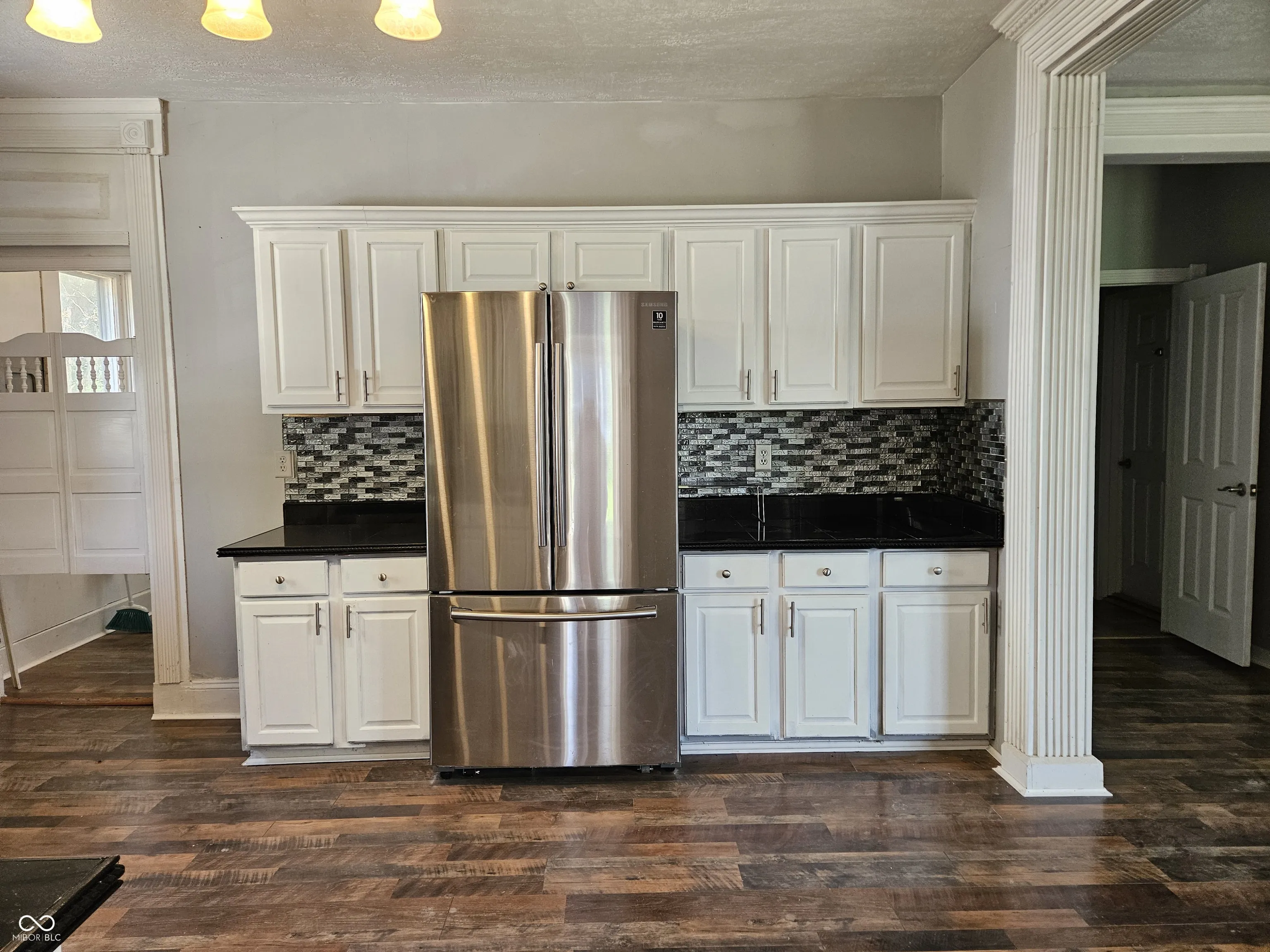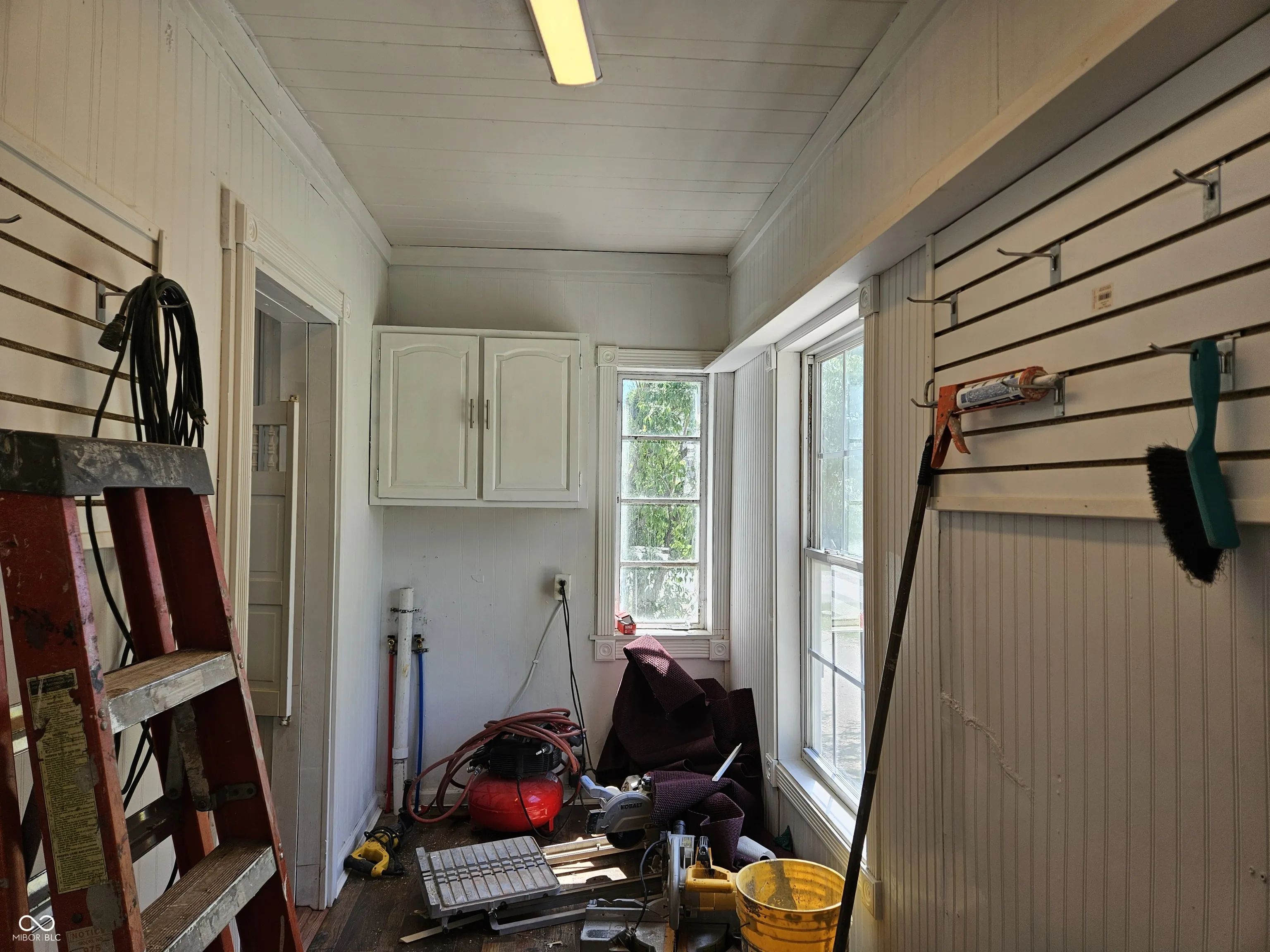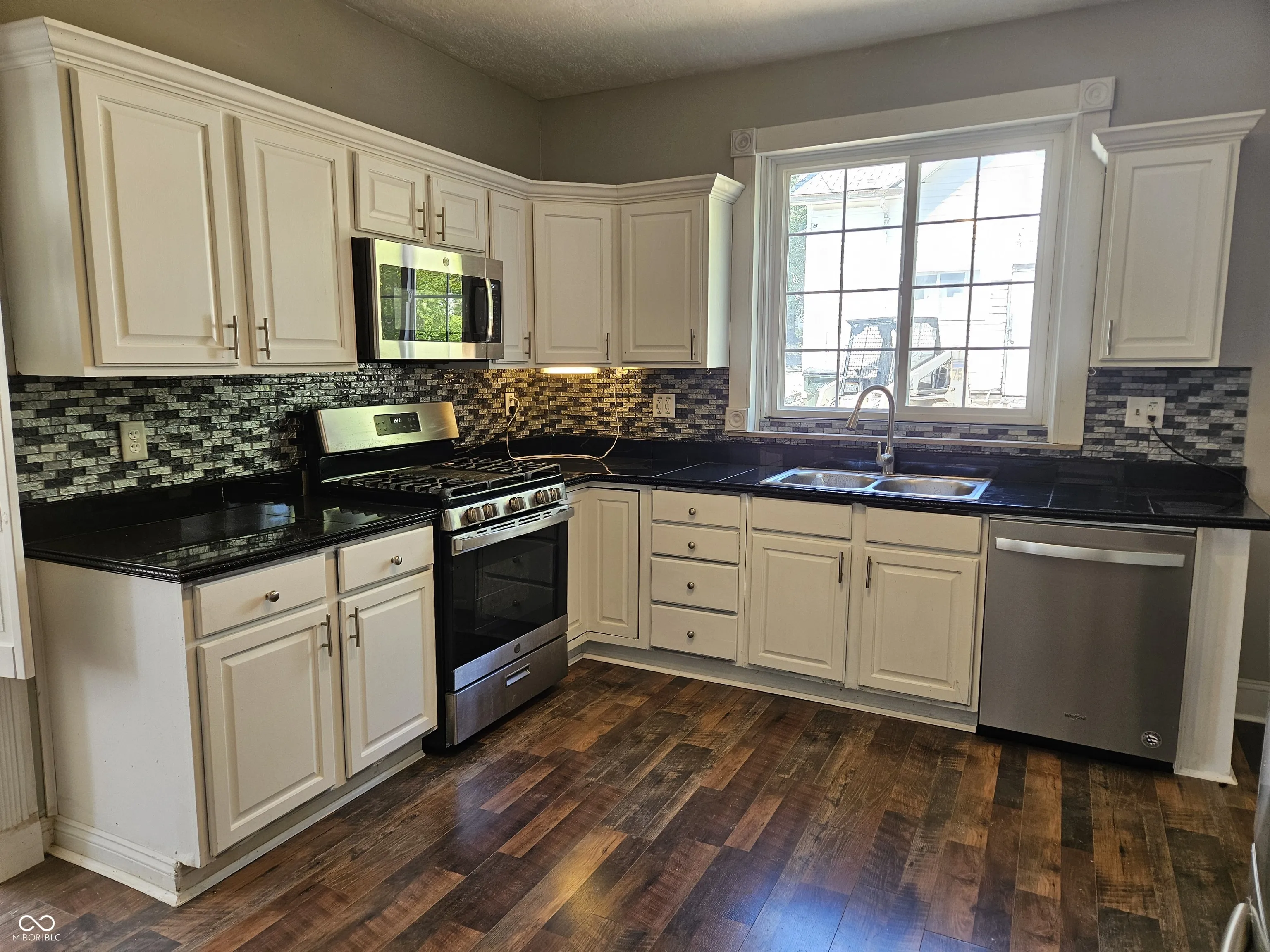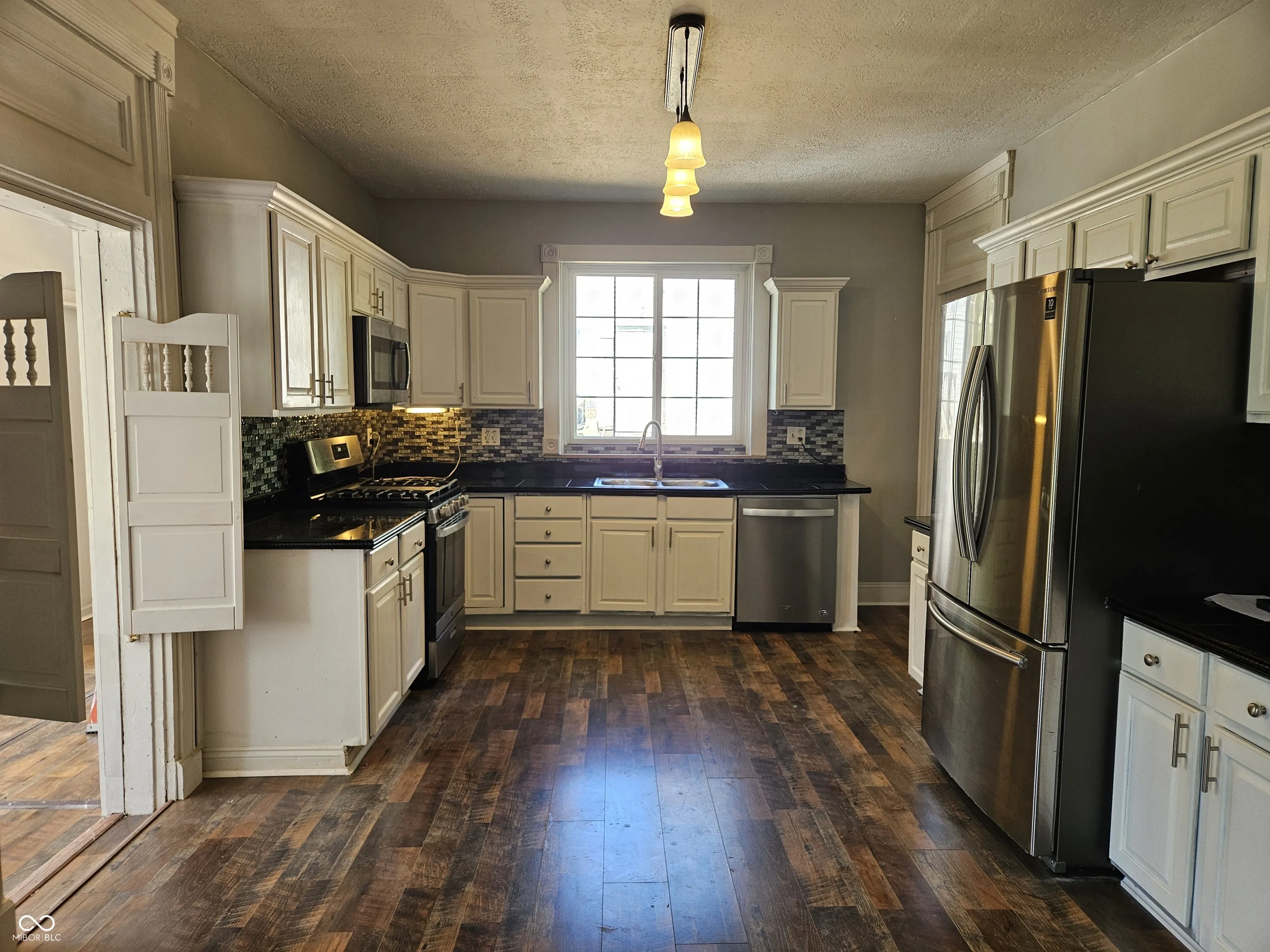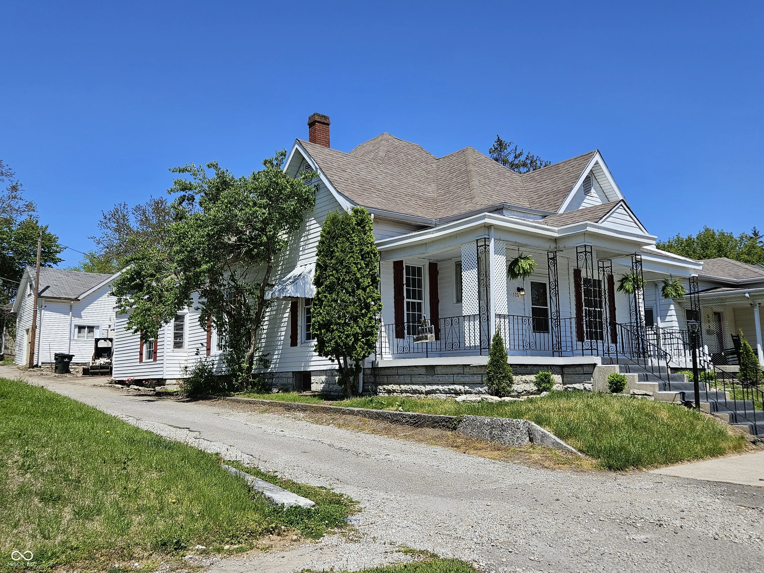 Remodeled in Greensburg. You’ll enjoy a large front porch with pretty ornate wrought iron railings and posts. The new kitchen is fully equipped with STAINLESS STEEL appliances and there is enough room to add a center island breakfast bar if you like and features nice cabinetry. The Formal Dining Room or Family Room features a gas log fireplace. The Master Bedroom features a Full Bath. Guests will be invited into a foyer which features built in shelves & a mail slot. One of the Bedrooms is just off the SPACIOUS Living Room via French doors and features a pretty antique fireplace mantel (decorative). There is a pantry & utility room-back entrance for your convenience. There is also some new landscaping for you. The 2 level Detached GARAGE has room for a workshop and the second level would be great for the crafter-woodworker, etc. or storage. Make this your CHARMER.