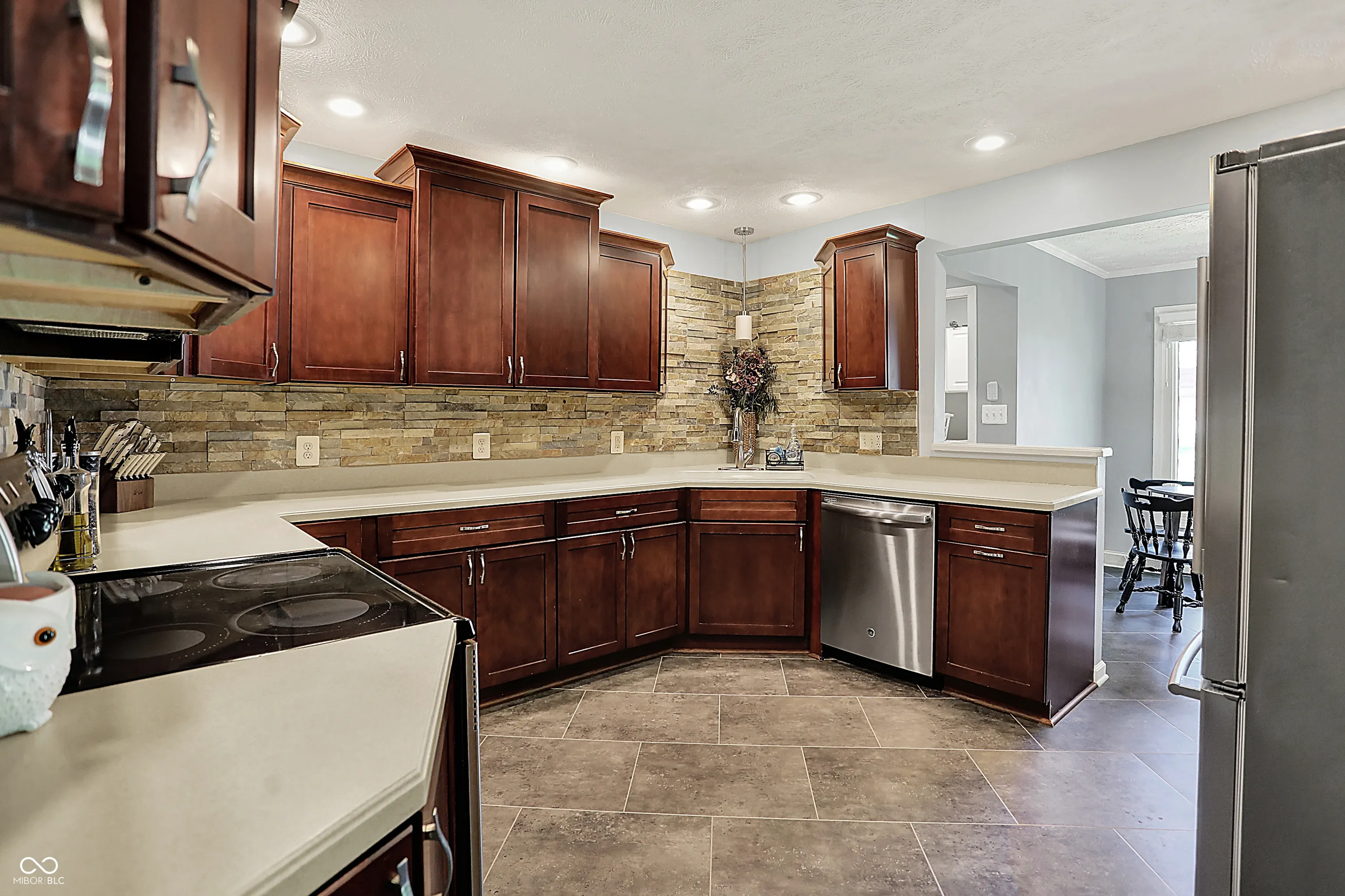 Discover this beautifully remodeled 3-bedroom, 2-bath ranch located in the sought-after Carefree Estates community. Thoughtfully updated over the past six years, this home features a modern kitchen equipped with stainless steel appliances, ceramic tile flooring, custom cabinetry with crown molding, solid surface countertops, and an elegant stacked-stone backsplash. The spacious primary suite offers a fully renovated bathroom, complete with a double vanity, a custom-tiled walk-in shower, and a generous walk-in closet. Step outside to enjoy a large stamped concrete patio with a built-in fire pit-ideal for entertaining or relaxing evenings. The fully fenced backyard provides a safe, spacious area for children and pets. Residents of Carefree Estates also enjoy access to fantastic amenities, including a clubhouse, swimming pool, and tennis courts. Situated in the highly regarded Center Grove School District, this home is just minutes from shopping, dining, parks, and major interstates. Don’t miss your chance to own this exceptional home-schedule your showing today!