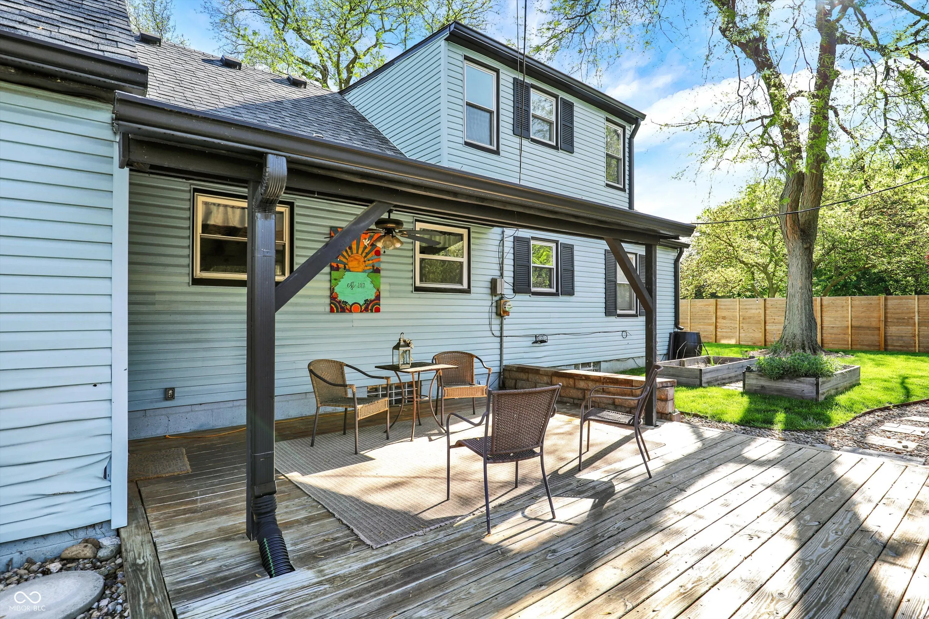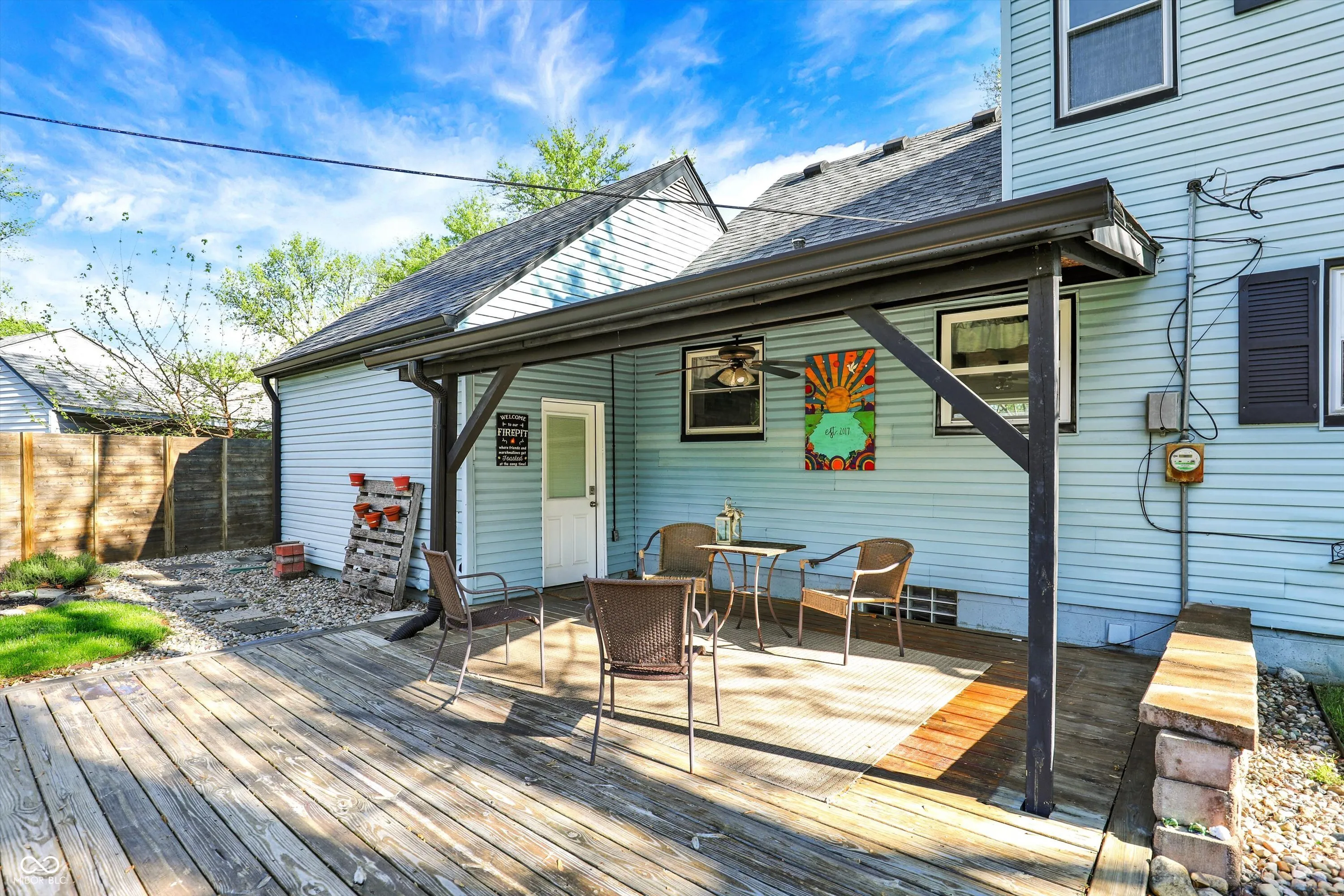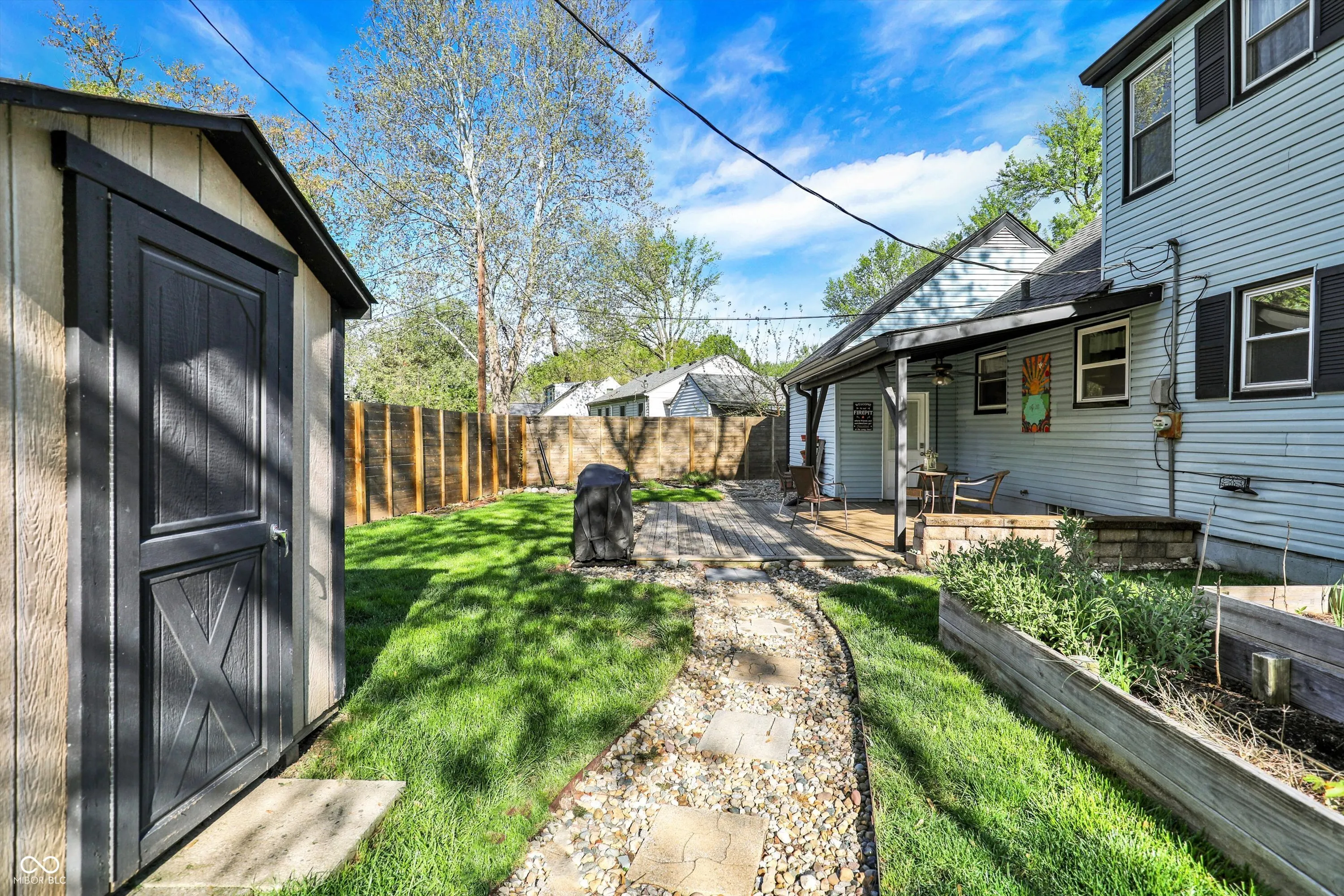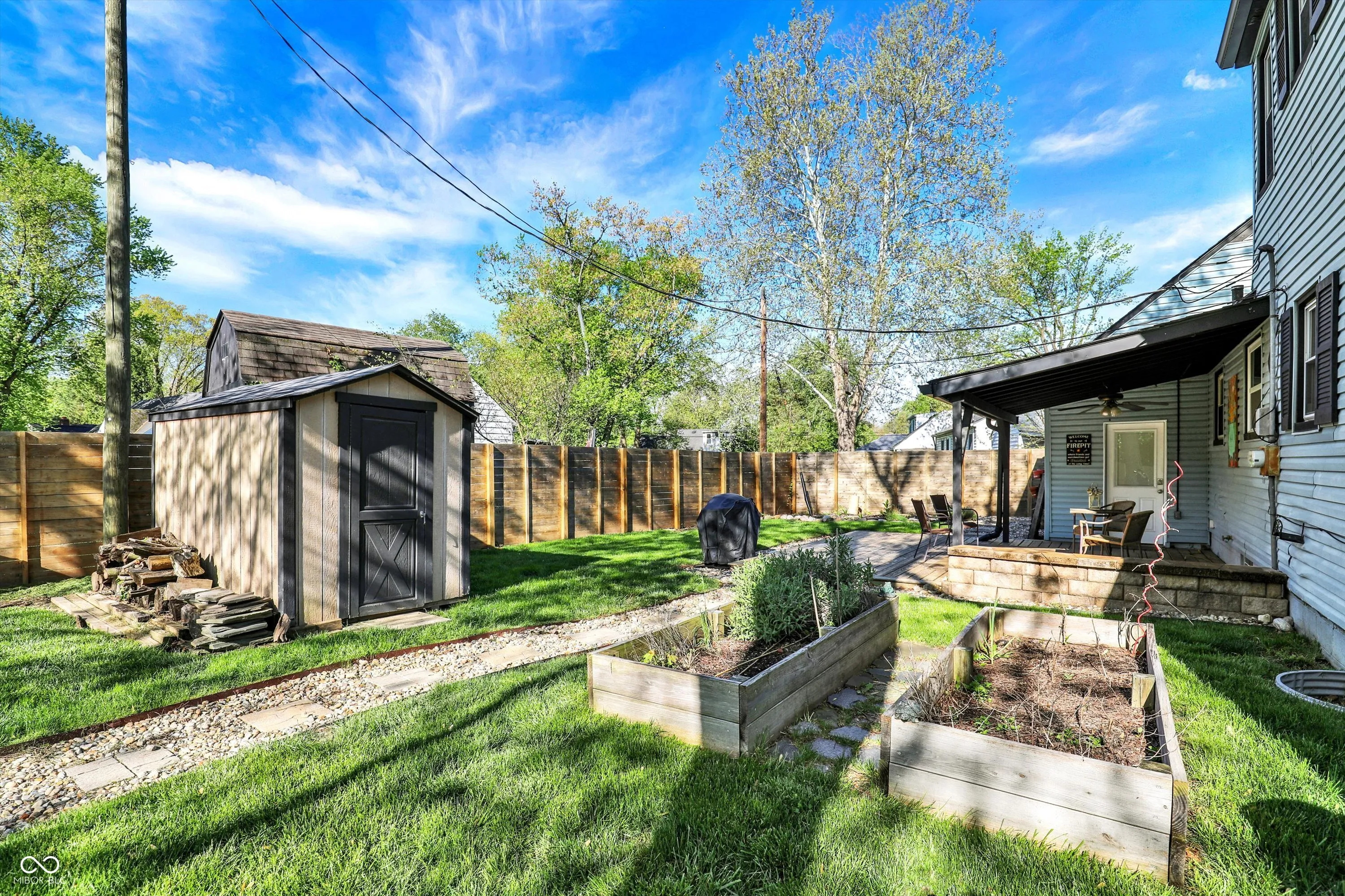 Welcome to 2221 Douglas Rd – Where Charm Meets Convenience in the Heart of Indy! This move-in ready gem is bursting with updates and personality! Tucked on a corner lot in a quiet neighborhood, this beautifully maintained home offers the perfect blend of modern upgrades and outdoor serenity. The totally updated kitchen, remodeled in September 2024, shines with brand-new cabinets, countertops, and fresh finishes-ready for your next culinary adventure. You’ll love the bright and airy feel throughout the home, thanks to newer two-way opening windows and a picturesque bay front window that fills the space with natural light. The remodeled bathroom (2020) adds a fresh, stylish touch, while the radon system installed in 2025 brings peace of mind. The expansive full-size basement is a hidden treasure, offering multiple entertaining areas, custom built-in storage (2023), a dedicated workout zone, and convenient laundry space-making this home as functional as it is fun. Outside is a true oasis for gardeners, entertainers, and anyone who loves the outdoors. The fenced-in yard (installed 2021, freshly stained) features organically treated garden beds, elderberry trees, cherry trees, blooming flowers, and a cozy firepit strung with lights-perfect for s’mores and stories almost year-round. The spacious deck (2020) and zero-maintenance Trex front porch (2020) are ideal spots to soak up morning coffee or evening sunsets. Located just minutes from Broad Ripple’s buzzing food scene, Monon Trail, and Cultural Trail access, you’ll enjoy easy connections to downtown Indy, local breweries, shops, and nature escapes like Broad Ripple Park, only a 5-minute walk away. This is more than a house-it’s a lifestyle. Schedule your showing today and make 2221 Douglas Rd your new happy place!