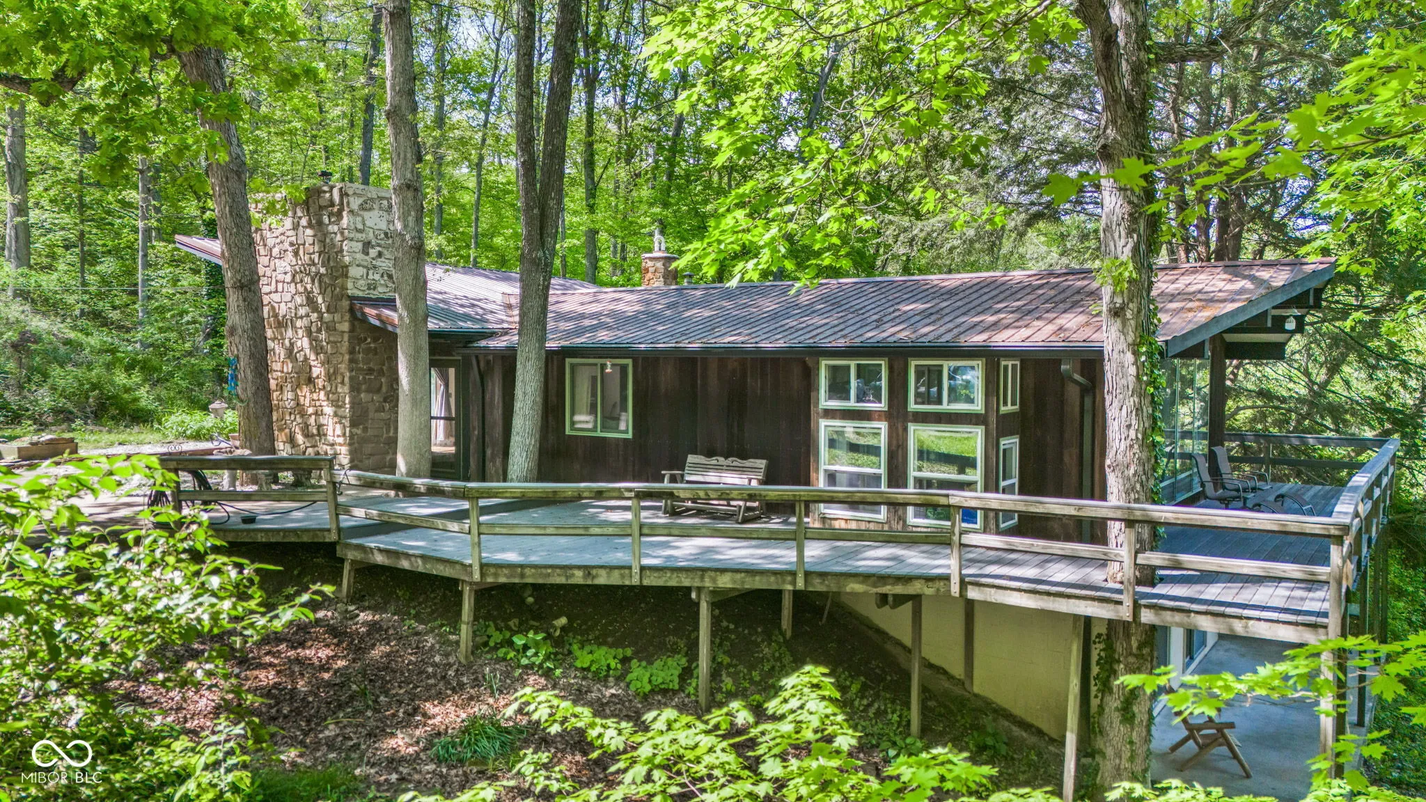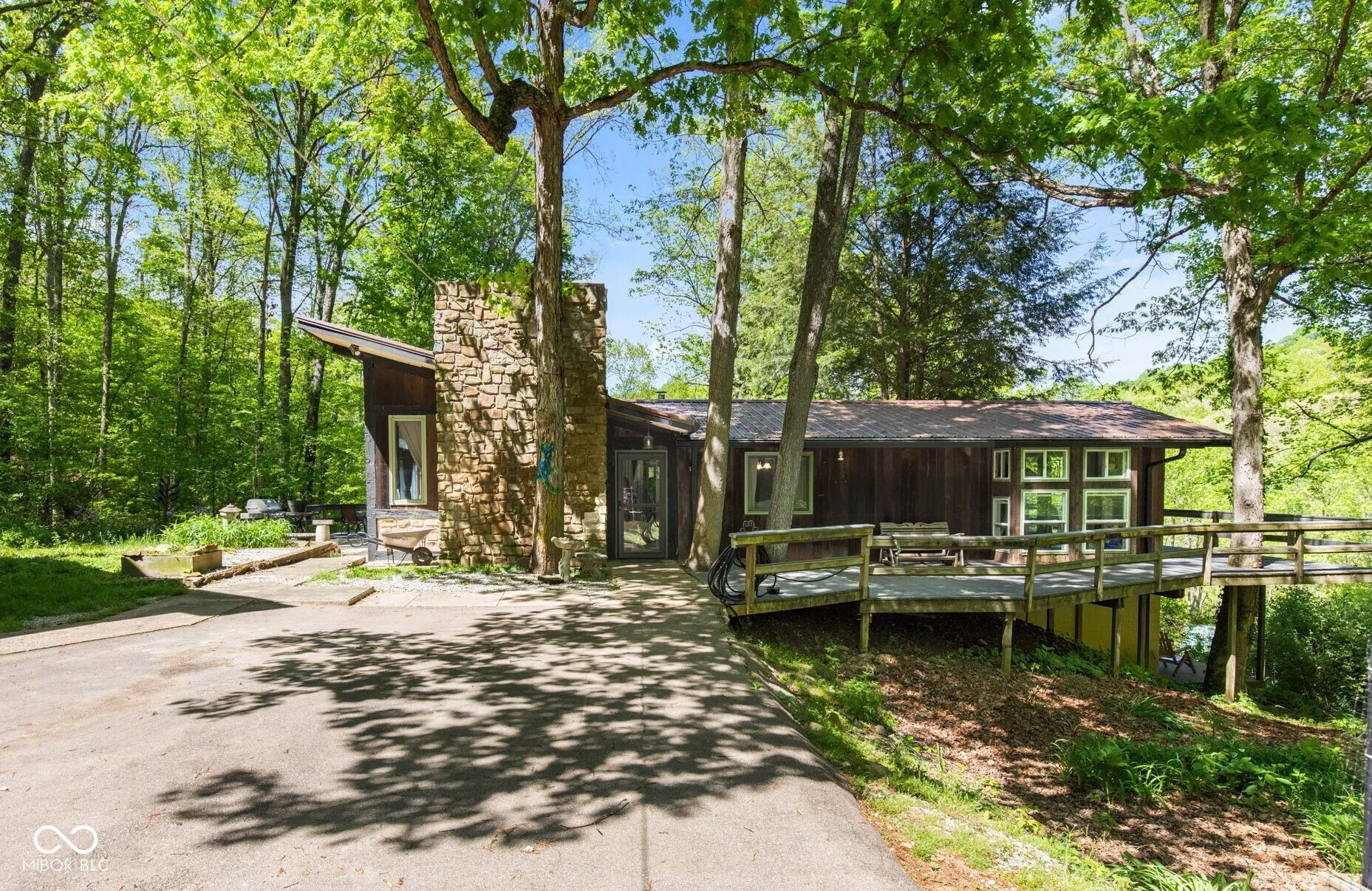 Escape to the peace and privacy of your own mid-century modern sanctuary with this beautiful 13-acre hillside retreat-ideal as a Homestay, or a primary/secondary home. Surrounded by nature and perched above the treetops, this serene setting offers privacy, breathtaking views, and abundant fresh air. The centerpiece of the home is a spacious living room with soaring cathedral ceilings and large windows that bring the outdoors in, creating a warm and inviting space. Step outside onto the expansive two-story wrap-around deck, where you can enjoy the view with your morning coffee, host sunset dinners, or simply unwind and take in the serene landscape. This property is perfectly designed for guests and extended stays as a unique multi-purpose homestead. The detached 3-car garage includes a charming apartment (225 sqft) above with dedicated garage parking, providing a private suite for visitors, in-laws, or adult children alike. A large workshop with additional storage gives you plenty of space for recreational gear, creative hobbies, or maintenance needs. The full basement adds even more room to spread out or customize to your recreational needs. Tucked in the hillsides of Brown County, yet designed for comfort and productivity, this property is truly a rare find with an unforgettable setting only a few miles from Nashville & Brown County State Park. Come experience the peaceful charm and practical luxury of hillside living at its finest. Don’t miss out on this exceptional opportunity to have everything you’ve ever wanted. SCHEDULE YOUR SHOWING TODAY!