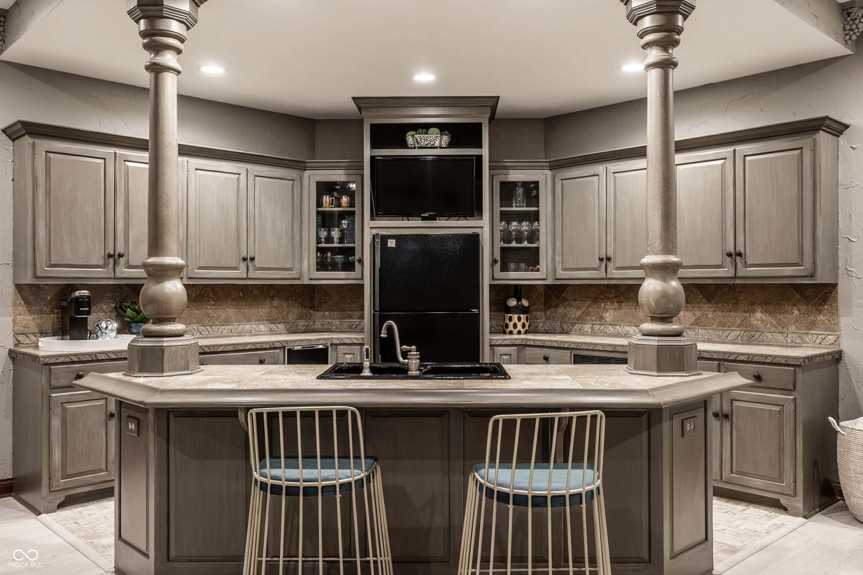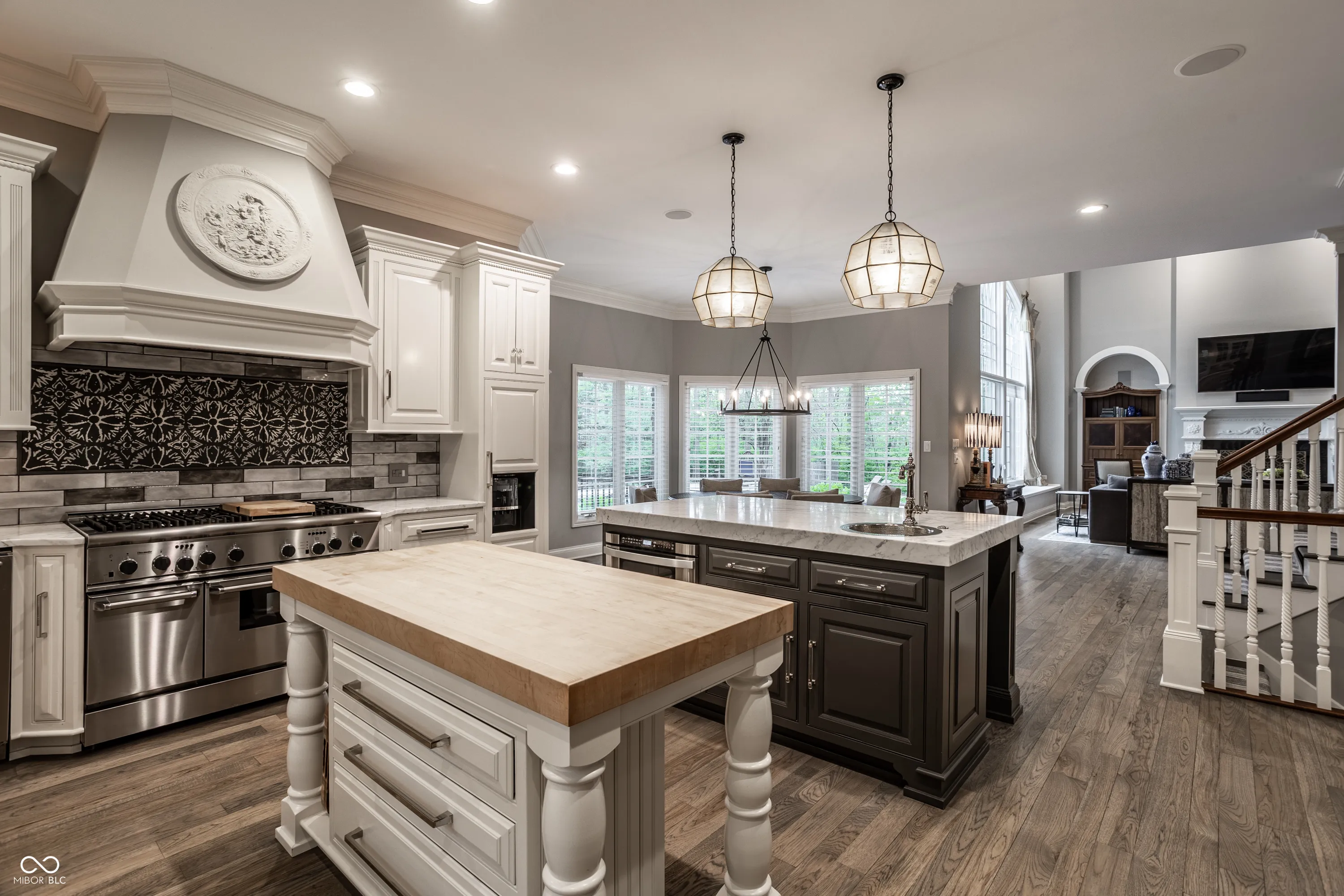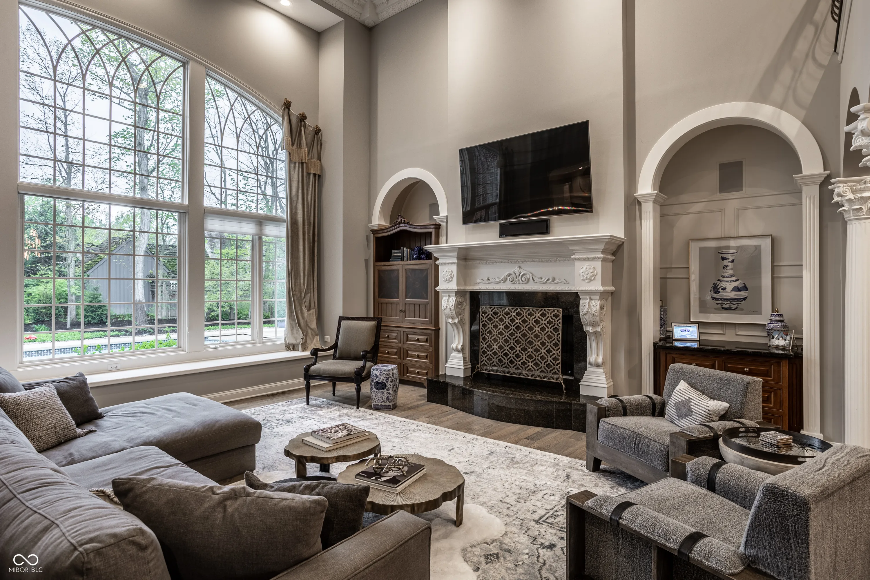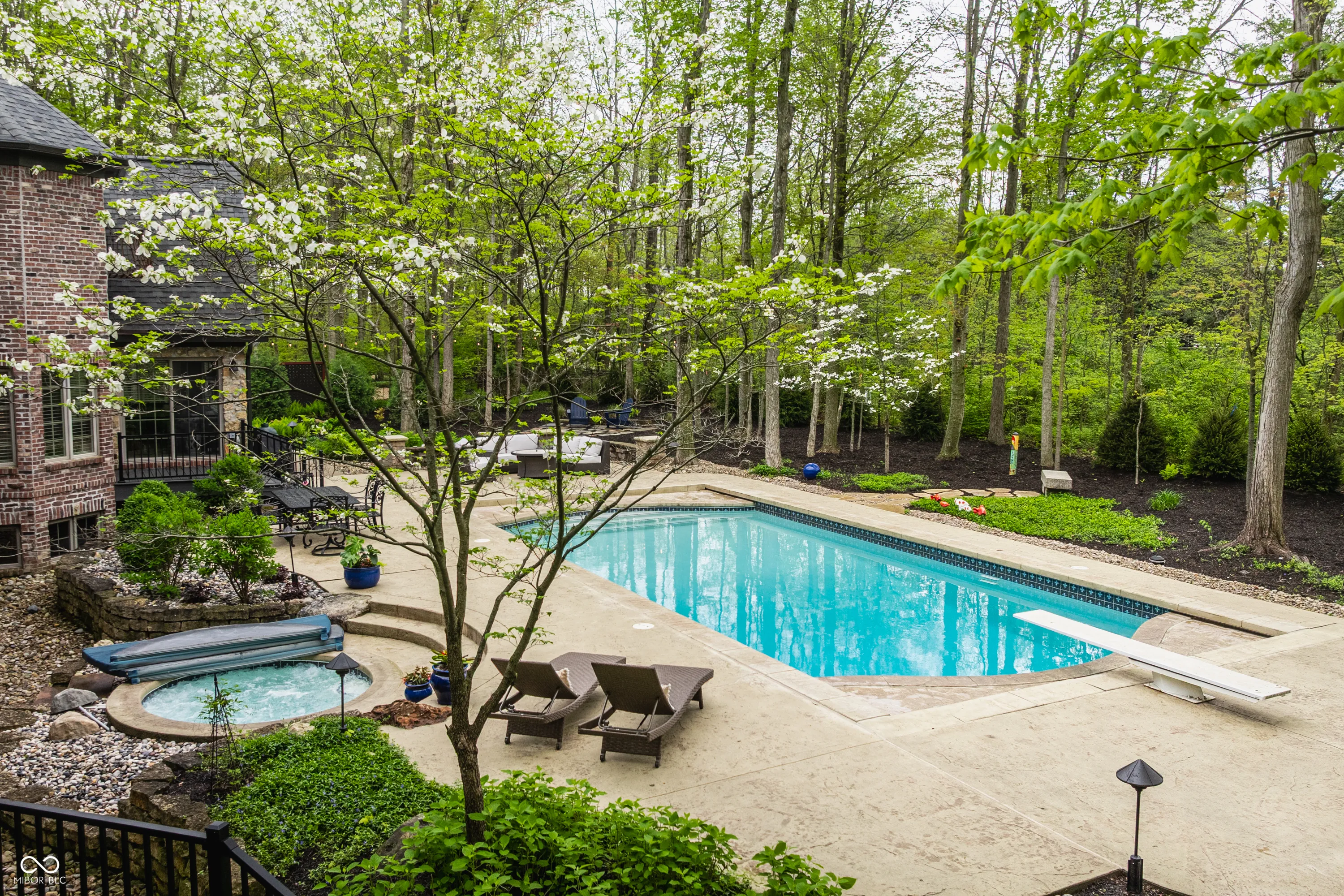 Tucked away on a serene, wooded lot, this exquisite French-inspired home is a true private oasis. Lush landscaping, newly added privacy trees, and thoughtful plantings surround a beautiful pool and hot tub. Whether you’re relaxing on the Trex deck off the sunroom and primary suite or entertaining guests on the expansive patio, outdoor living has never looked better. Inside, the home is filled with timeless charm and luxurious updates. The newly updated kitchen features elegant marble countertops and all-new hardware. The main-level primary suite is a sanctuary of style and comfort, offering a fully renovated spa-like bathroom with porcelain tile on the floors and walls, a marble shower floor, updated fixtures, quartz countertops with dual sinks, and a frameless glass shower enclosure. A dual-sided fireplace adds warmth and sophistication, and a spiral staircase leads to the beautifully finished lower level. Upstairs, you’ll find three spacious bedrooms, while the lower level boasts a wine cellar, a family room with fireplace, an office, a fifth bedroom, and an exercise room complete with a sauna. Every detail of this home is thoughtfully designed for luxury, comfort, and timeless appeal.