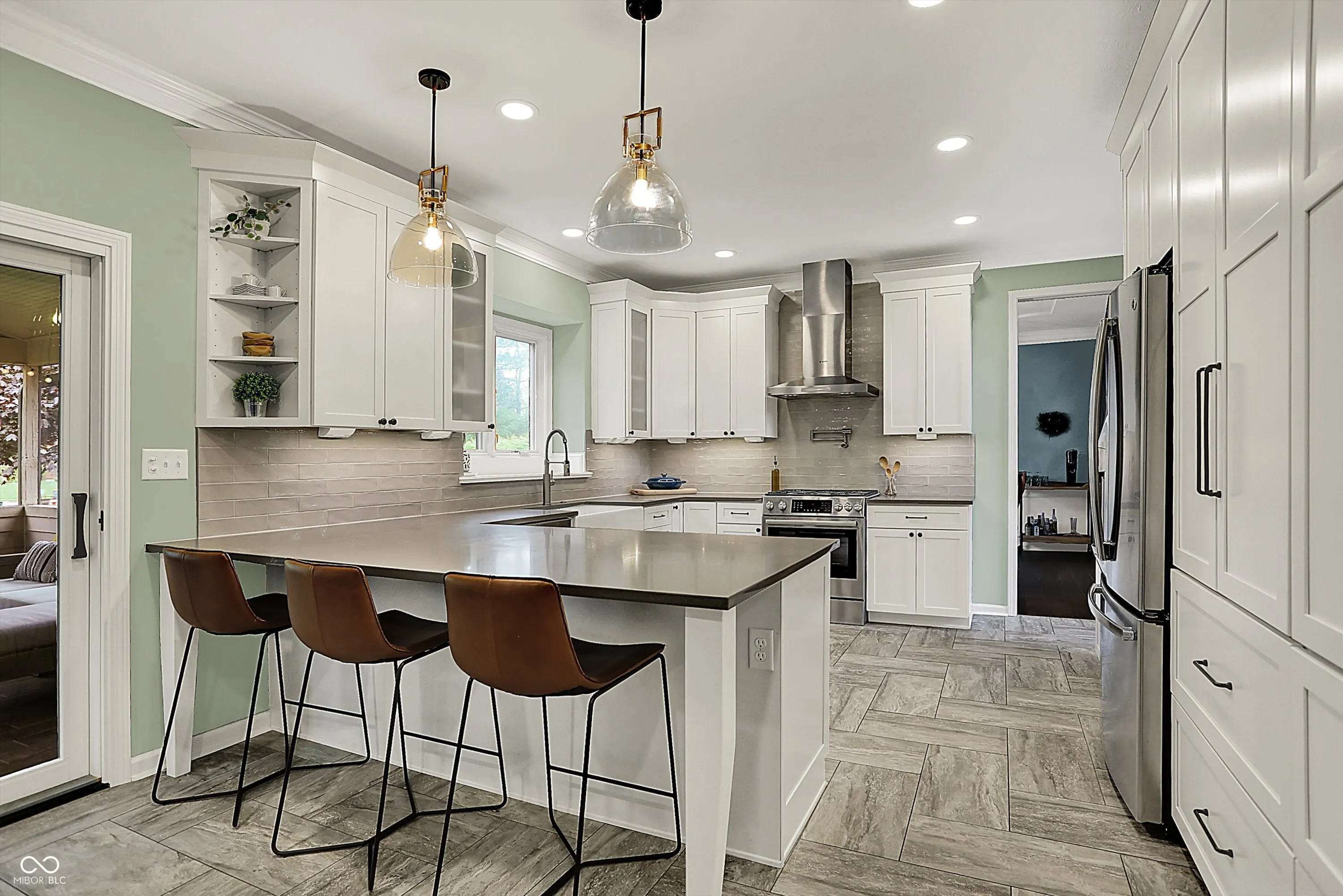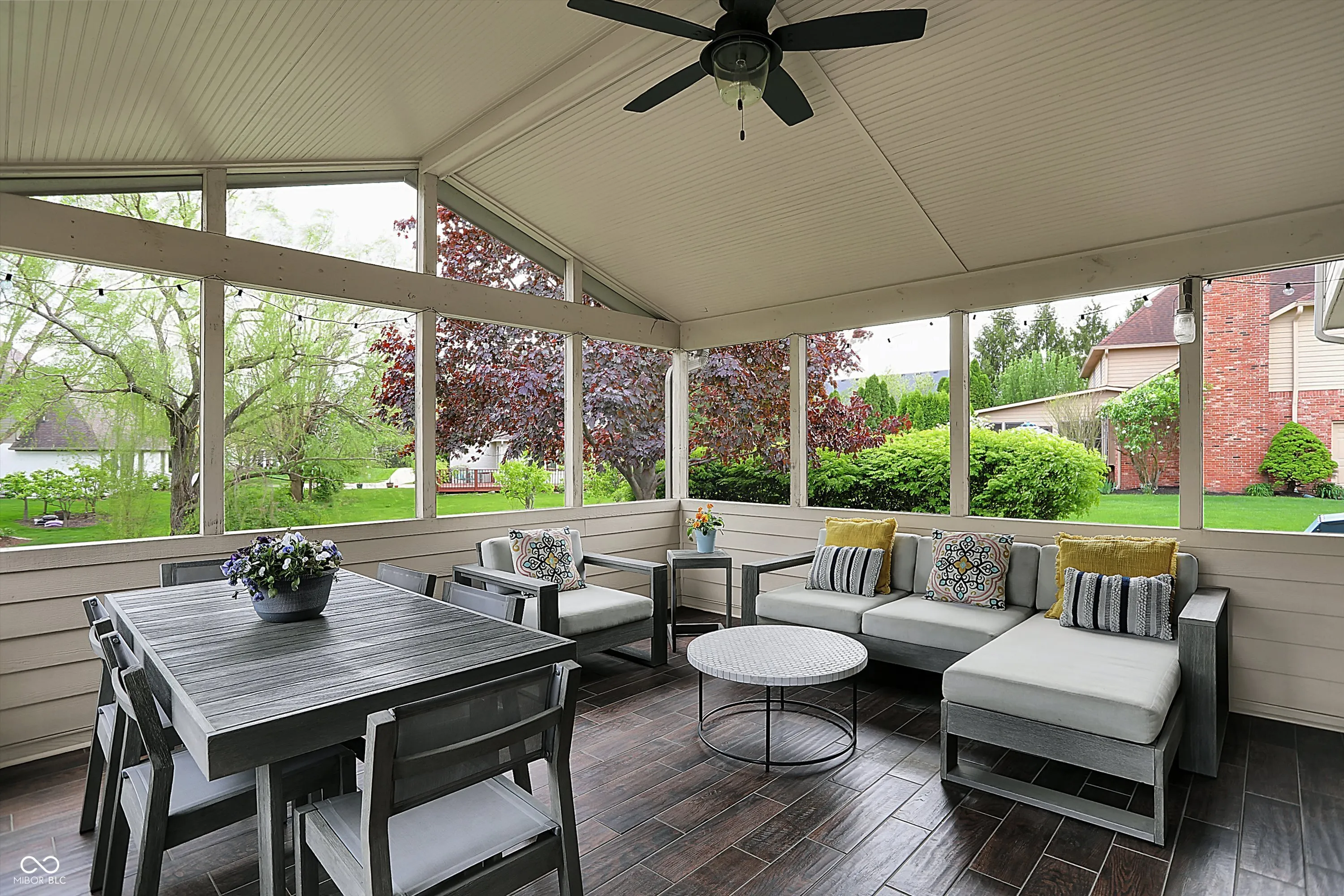 This beautifully updated custom home in Delaware Trace combines timeless design with modern comfort. Step inside to a dramatic two-story entry with glass double doors and updated staircase. The show-stopping 2022 kitchen remodel features KraftMaid cabinetry, herringbone tile flooring, designer lighting, and premium appliances-perfect for everyday living and entertaining. The 2020 primary bath is a spa-like retreat with freestanding tub, large glass shower, contemporary wood vanity, sleek large-format tile, and heated floors. Outdoor living is easy here with an oversized screened-in porch built for relaxation and dining, and a spacious paver patio for grilling and evenings around the fire. The daylight basement offers flexibility with a rec room, office, half bath, and fitness space. Thoughtful layout upstairs includes a Jack & Jill bath for the kids and a private guest suite with full bath. Enjoy peace of mind with all major systems done for you: 2022 Pella windows, 2019 dual HVAC, 2018 roof, 2024 carpet. Community amenities include pool, tennis, park and trails. Stylish, updated, and ready for you-schedule your tour before this home is gone!