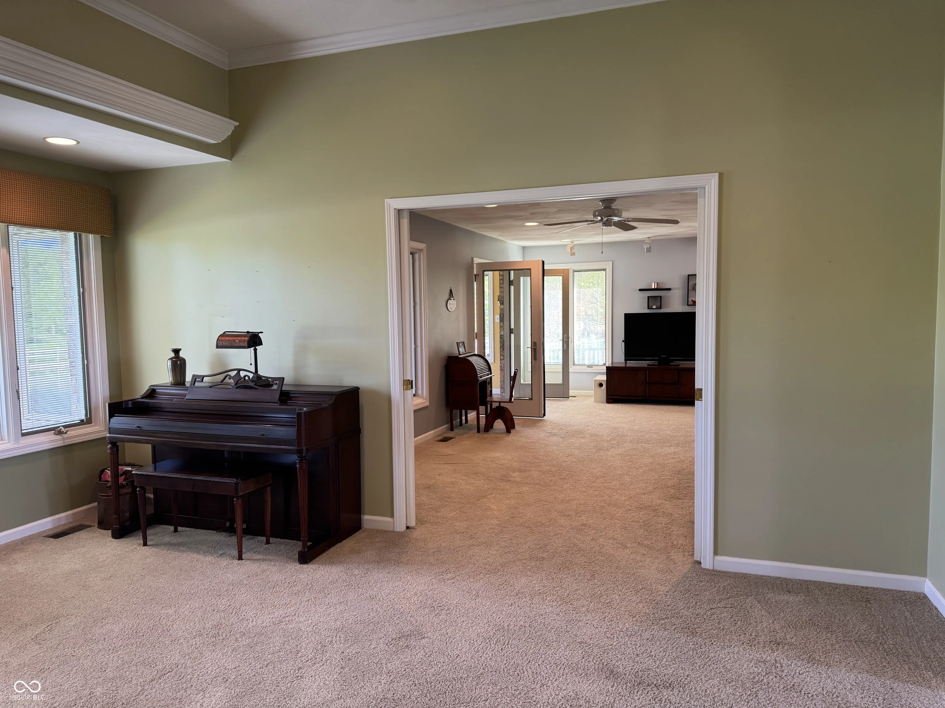 Amazing brick home located in Country Club Estates. This 3 bed 2 bath custom built home includes amenities hard to find. One of the few waterfront lots, this property enjoys a peaceful view of the pond with fountain from the patio off the primary suite, the patio off the sunroom or from the 4-season sunroom. The home has an easy flow with the living room open to the dining room for an extra expanse for entertaining. The double doors to the sunroom and floor to ceiling windows bring the outdoor in and opens for added areas to encompass the living, formal dining, kitchen with island and kitchen dining space. Need a separate space? close the pocket doors to separate spaces. Relax in the large primary suite and listen to the water feature from your patio. Large walk-in full tile shower, large dressing area and walk in shower is a quiet retreat space. Golf enthusiasts have added space in the attached 2 car garage with a separate side load golf cart overhead door for easy access for golf members. The gorgeous, lush landscaping around the home is well manicured and maintained. Check out this beauty today!