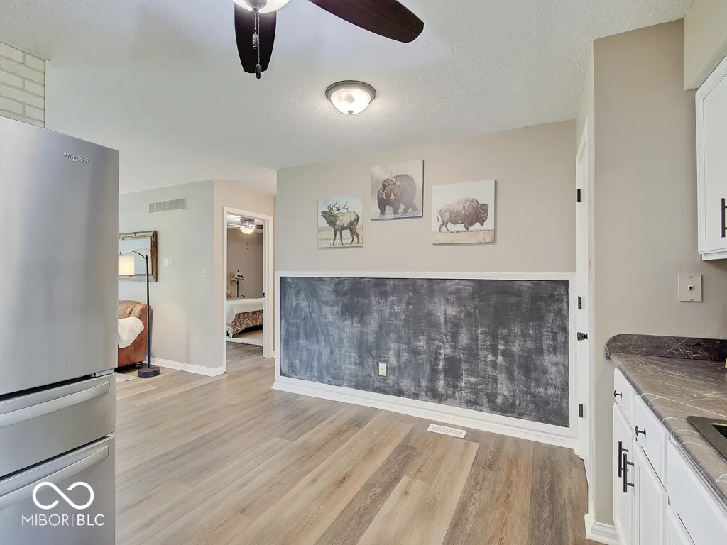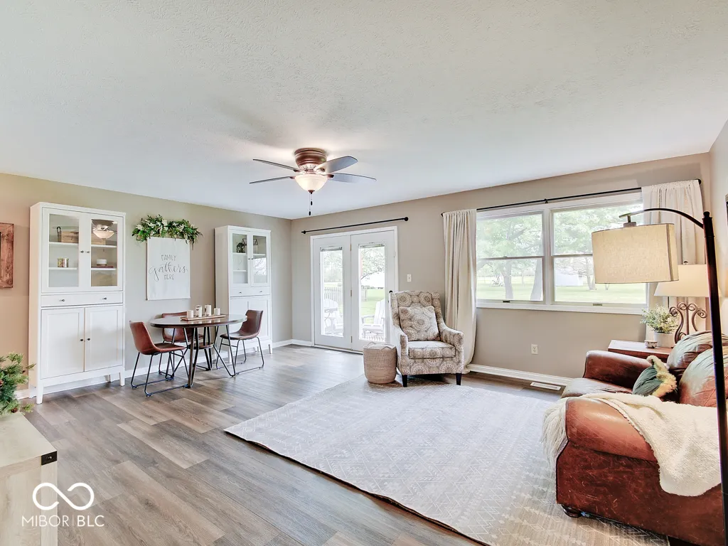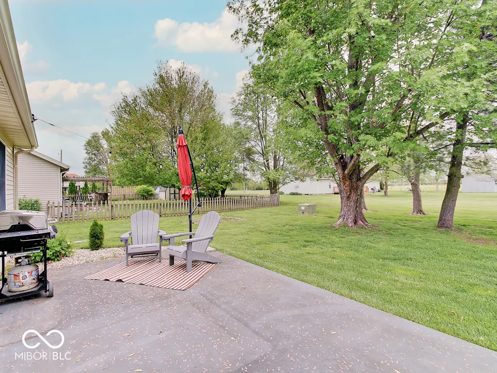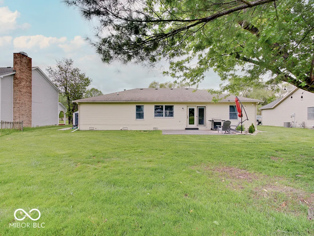 Tired of seeing subdivision homes that all look alike, they’re too close together and have restrictive HOAs? This one’s for you! Located on a quiet street super close to downtown Fortville this one’s move-in ready. No neighbors directly behind! Wood-look laminate flooring throughout! The large great room offers plenty of space and seating options with large windows and double doors for plenty of light. The kitchen features white cabinets, new counters and stainless appliances. Check out the trendy wood feature in the primary bedroom, the large walk-in closet, the wood feature in the bathroom and an oversized full tile shower. Two additional good sized bedrooms plus bathroom with refinished tub/shower. A barn door closes the laundry room with included washer and dryer. Outside enjoy the patio and a good sized yard that feels so much bigger without homes directly behind. The extra large driveway accommodates extra vehicles and there’s additional concrete parking next to the home for whatever you want! The roof is just five years old, water heater about one year, new sump pump. Bright, neutral, great location, ready for you to call it home!