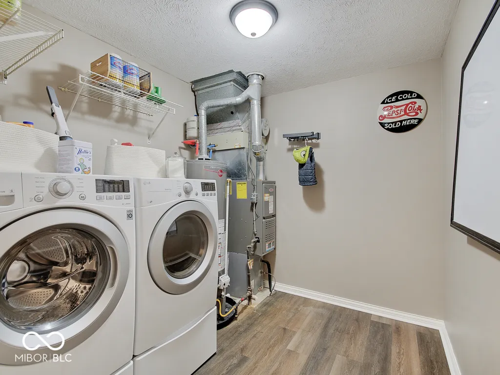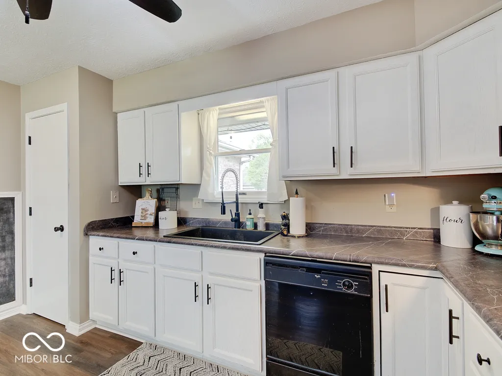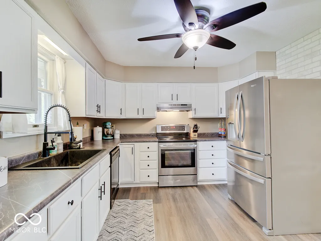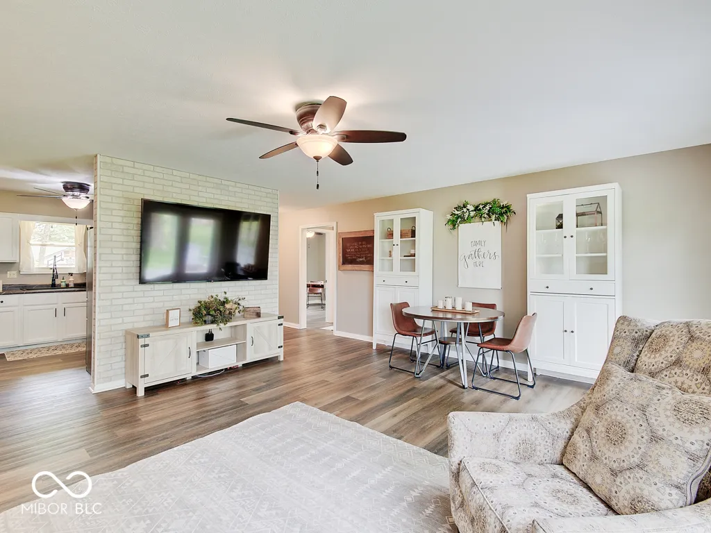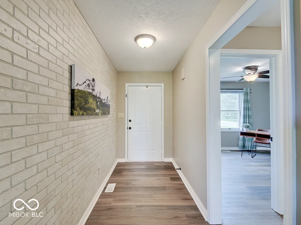 Tired of seeing subdivision homes that all look alike, they’re too close together and have restrictive HOAs? This one’s for you! Located on a quiet street super close to downtown Fortville this one’s move-in ready. No neighbors directly behind! Wood-look laminate flooring throughout! The large great room offers plenty of space and seating options with large windows and double doors for plenty of light. The kitchen features white cabinets, new counters and stainless appliances. Check out the trendy wood feature in the primary bedroom, the large walk-in closet, the wood feature in the bathroom and an oversized full tile shower. Two additional good sized bedrooms plus bathroom with refinished tub/shower. A barn door closes the laundry room with included washer and dryer. Outside enjoy the patio and a good sized yard that feels so much bigger without homes directly behind. The extra large driveway accommodates extra vehicles and there’s additional concrete parking next to the home for whatever you want! The roof is just five years old, water heater about one year, new sump pump. Bright, neutral, great location, ready for you to call it home!