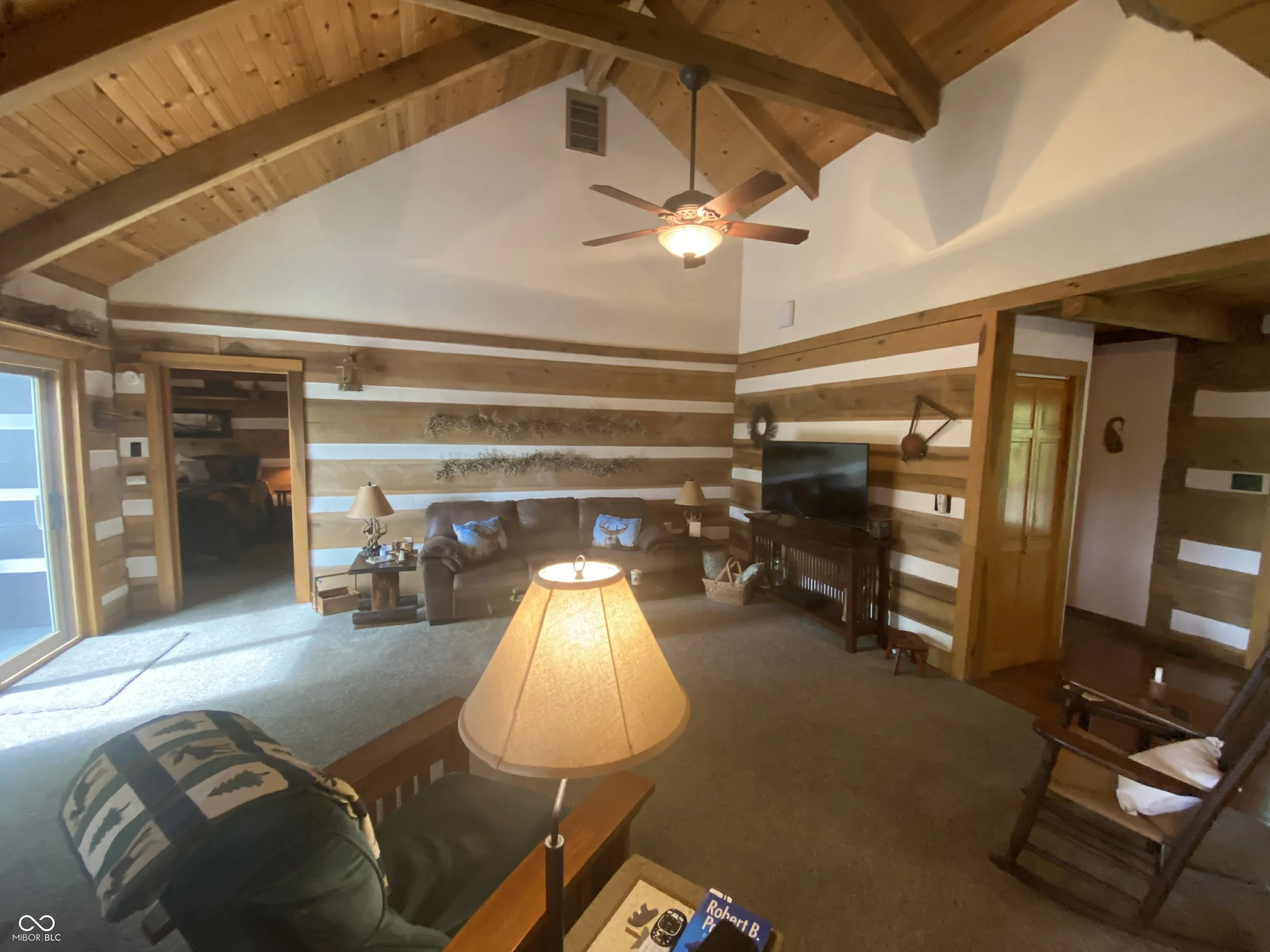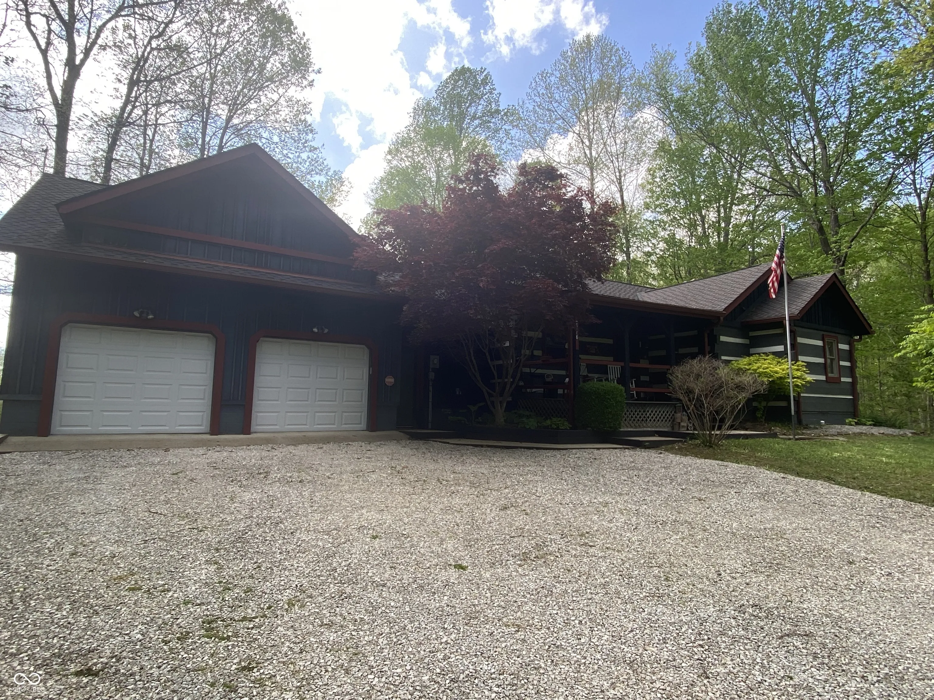 Cozy Log cabin in Brown County. Privacy. Privacy. Privacy. Enjoy this 3 bedroom, 2 bath home with two very private acres to enjoy. Enjoy your morning coffee on the covered front porch. Sit out on the 16 x 36 back deck and watch wildlife, grill, or look at stars. Home has an oversized 2 car attached garage with a work shop along with a massive 22 x 29 loft in garage for storage or even a play/entertainment area. Has an HOA but no fees for HOA. New in 2022: Gas Furnace, water heater, water softener, sump pump, and a vapor barrier in the crawl space. Includes refrigerator, gas stove, a double electric oven, dishwasher, and washer and dryer. If the buyer chooses, any or all furniture can stay, including the tv’s. The outdoor table, chairs, and umbrella are not included. Seller is also including the Craftsman riding lawn mower, cart, chainsaw, and snow blower. Refrigerator and stand up freezer in garage will stay. Don’t miss out on your chance to own a log cabin in Brown County.