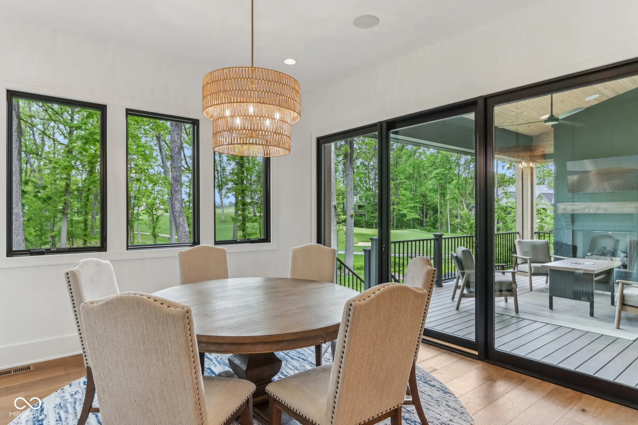 Welcome to luxury living within the exquisite, highly sought after Holliday Farms community! This beautifully designed 6 bedroom custom residence by Sigma Builders is situated on the golf course, overlooks the #4 green, and has a great view down the #5 fairway with a serene creek that runs through the back of the lot. These panoramic views are an incredible backdrop to the open and airy main level. At the heart of home this fantastic kitchen has extensive great features such has quartz countertops/backsplash, Wolf gas cooktop w/custom hood, built-in column fridge, 2 dishwashers, extensive lighted cabinet storage, expansive island with room for plentiful seating, an awesome highly function butler’s panty w/loading door directly from the garage really comes in handy for those larger gatherings, and much more. The kitchen opens directly into the expansive great room w/stone fireplace, dining room, office (that could be a 7th bdrm technically), and awesome covered deck w/outdoor fireplace. Also on the main level is the luxurious owner suite featuring many high-end features, massive walk-in closet w/island and LG Washtower within. The upper level includes 3 generously sized bedroom suites, all with walk-in closets and their own full baths, each with unique detail. Also on the upper level is a large laundry room and loft with even more extensive views. Last but not least, the basement features high ceilings with a professionally installed theater with custom starlight ceiling, an attached bourbon room/w wet bar and a hidden door which reveals a half bath. Additionally, the open rec area can be adapted in many ways. Also features a nice home gym, 2 extra-large bedrooms, and a ton of storage! There are so many features that they can’t all fit here. To complement this incredible home is the Holliday Farms amenities, golf course, clubhouse, multiple pools indoor/outdoor, sports courts, exercise facility, restaurant, and more!