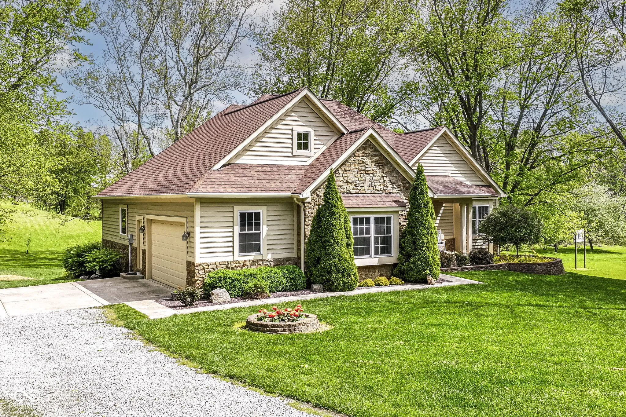 Welcome home to your peaceful home in the country! Your new home is custom built with so many beautiful details beginning with the beautiful hardwood floors throughout the home! Your family will love gathering in the great room with stone fireplace adjoining the large kitchen with beautiful cabinetry, built in shelving and large dining space. It is just steps away to the screen porch with lovely view of the babbling creek and beautiful landscape. What a great place to enjoy your morning coffee! Your new home features a wonderful sewing room that could be an office, playroom or music room. The primary suite features a HUGE walk in closet, well appointed en suite and lovely view of the property. The upper level bonus room is all set up for a great tv room, reading nook or play space (use your imagination, it could also be a 4th bedroom) How wonderful to have a walkout lower level. You can just step outside to enjoy your 2 acres of country living! The lower level includes another full bath, bedroom, office and game room space. If you like to tinker the lower level garage is ready for your workshop, she shed or man cave!. The oversized garage is finished and has all the storage one can need! Welcome HOME!