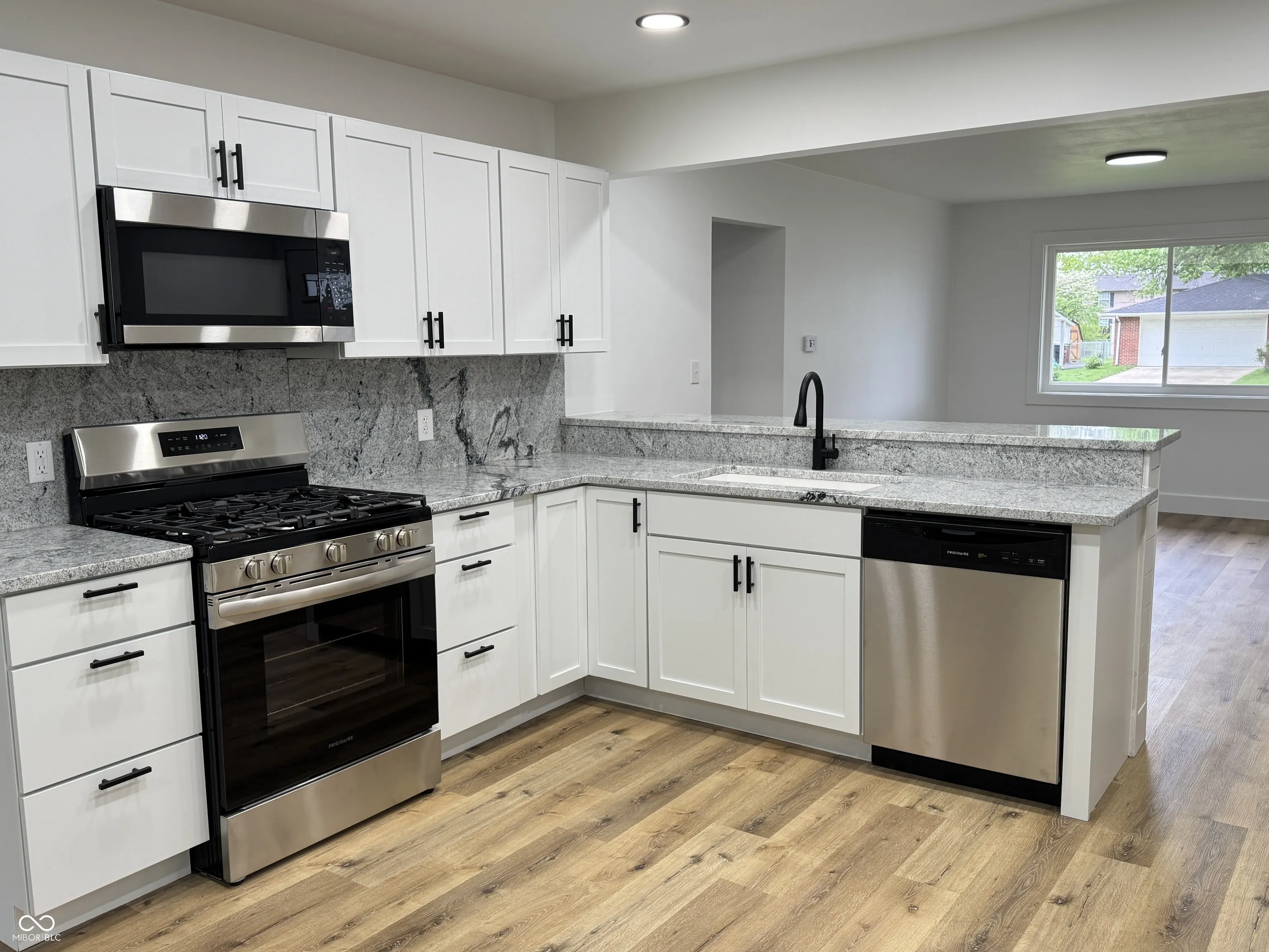 Step into this beautifully renovated turnkey home to experience a brand-new living space in an established neighborhood. Meticulously updated from top to bottom with the perfect blend of style, comfort, and peace of mind. The exterior boasts all-new siding, gutters, soffits, roof, windows and doors, including the garage door on the attached garage. Curb appeal and functionality! You’ll enjoy a newly privacy fenced backyard with a patio ready for a grill and relaxing. Inside, the home features luxury vinyl plank flooring throughout and all new interior doors, trim, and hardware. The showstopping kitchen is completely redesigned with quartz countertops and backsplash, a large single-basin sink with a high-arc faucet, and a suite of stainless-steel appliances including a gas range, built-in microwave, refrigerator with ice maker, and dishwasher. Both bathrooms are sparkling with all new sleek fixtures, even lighted faucets. The primary bathroom has a walk-in shower. The 2nd full bathroom has a combination tub/shower. All light fixtures, switches, and electrical outlets have been replaced to complete the home’s modern transformation. Great closet organization systems add to the convenience and functionality. The mechanical systems are brand new as of 2025, including the gas furnace, central air conditioner, and gas water heater. Every inch of this home has been thoughtfully upgraded to provide worry-free living with timeless appeal. Don’t miss your opportunity to own this fully renovated gem full of value!