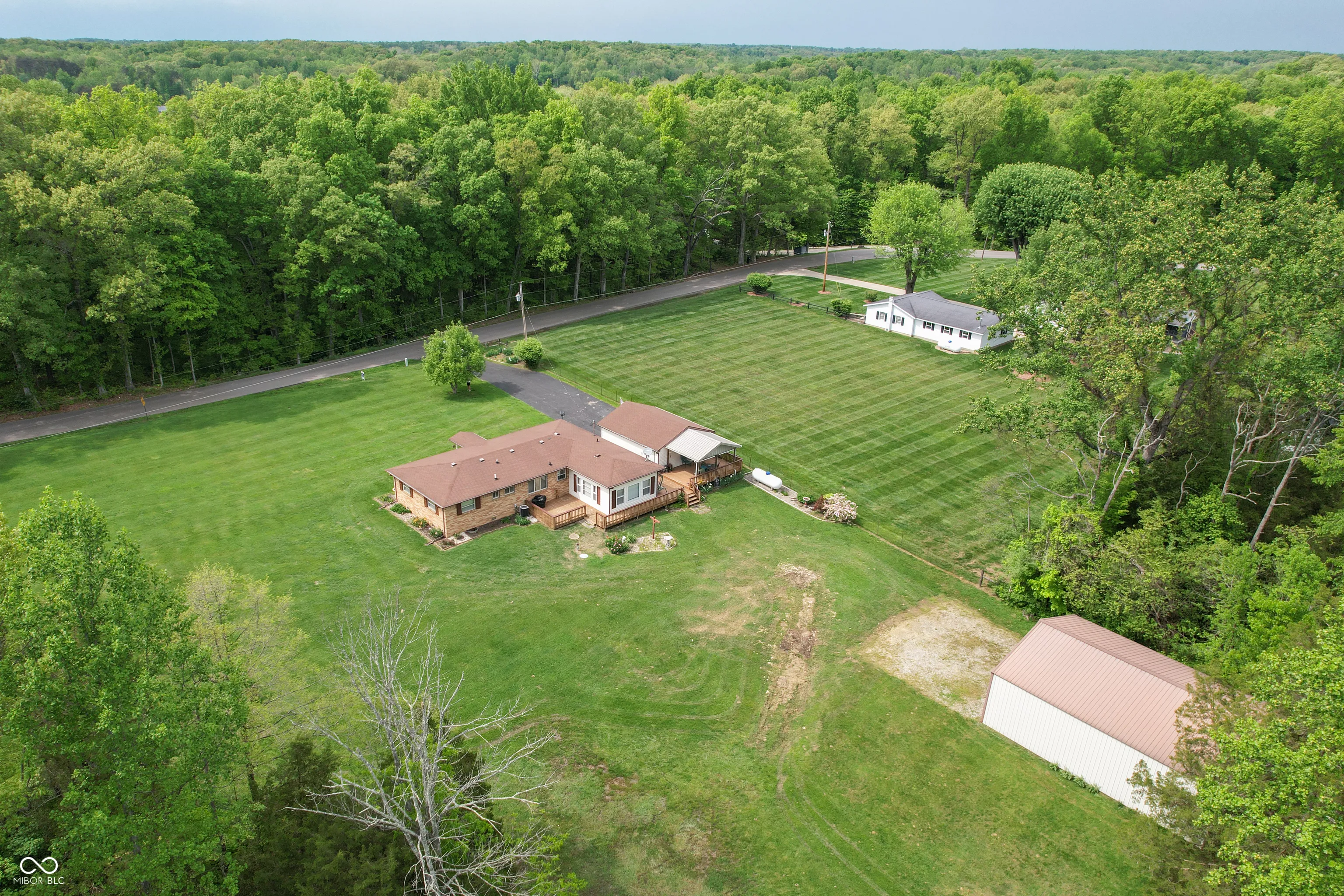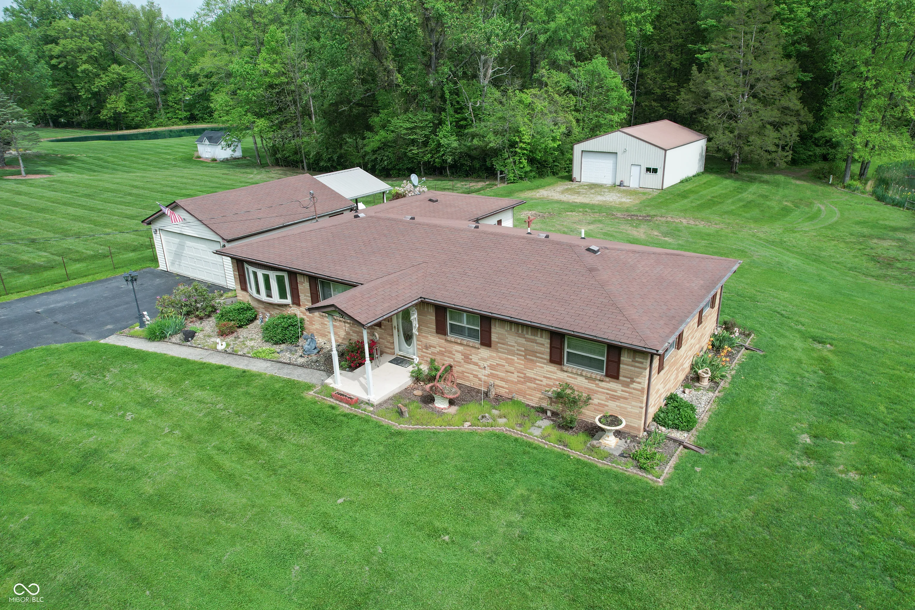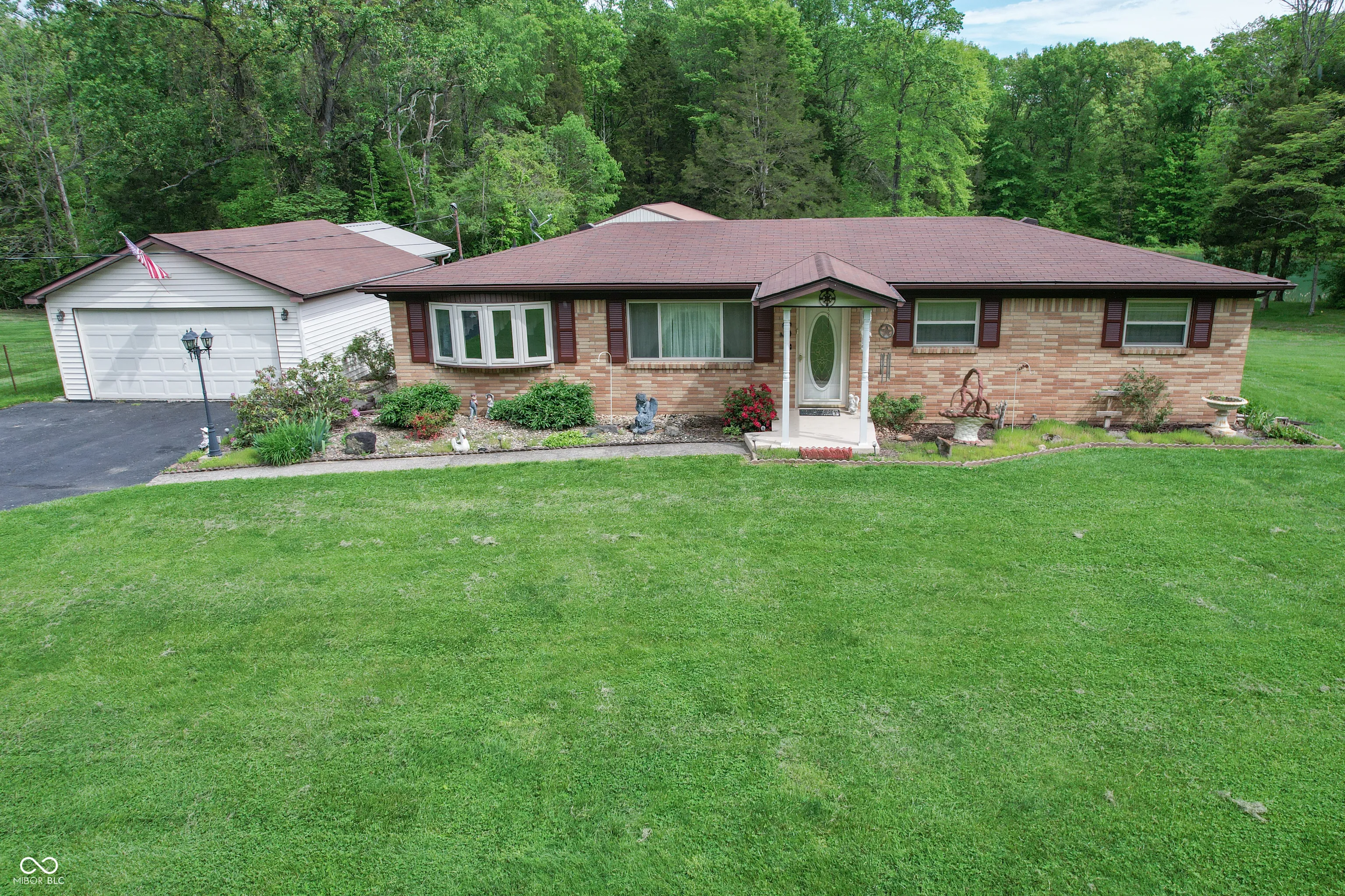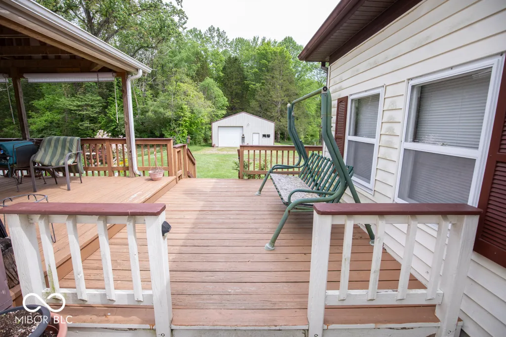 All brick 1,581 sq. ft. with 3 bedrooms and 1 bathroom. Family room, dining room, living room, and kitchen. Replacement windows. All appliances plus washer and dryer and window coverings. Central air, gas heat. Black top drive 2 car garage with an opener. Plus a 30×40 pole barn with electricity and concrete floor. There is 216 ft. of deck plus a 20×12 covered deck to enjoy. All this on 1.2 acres.