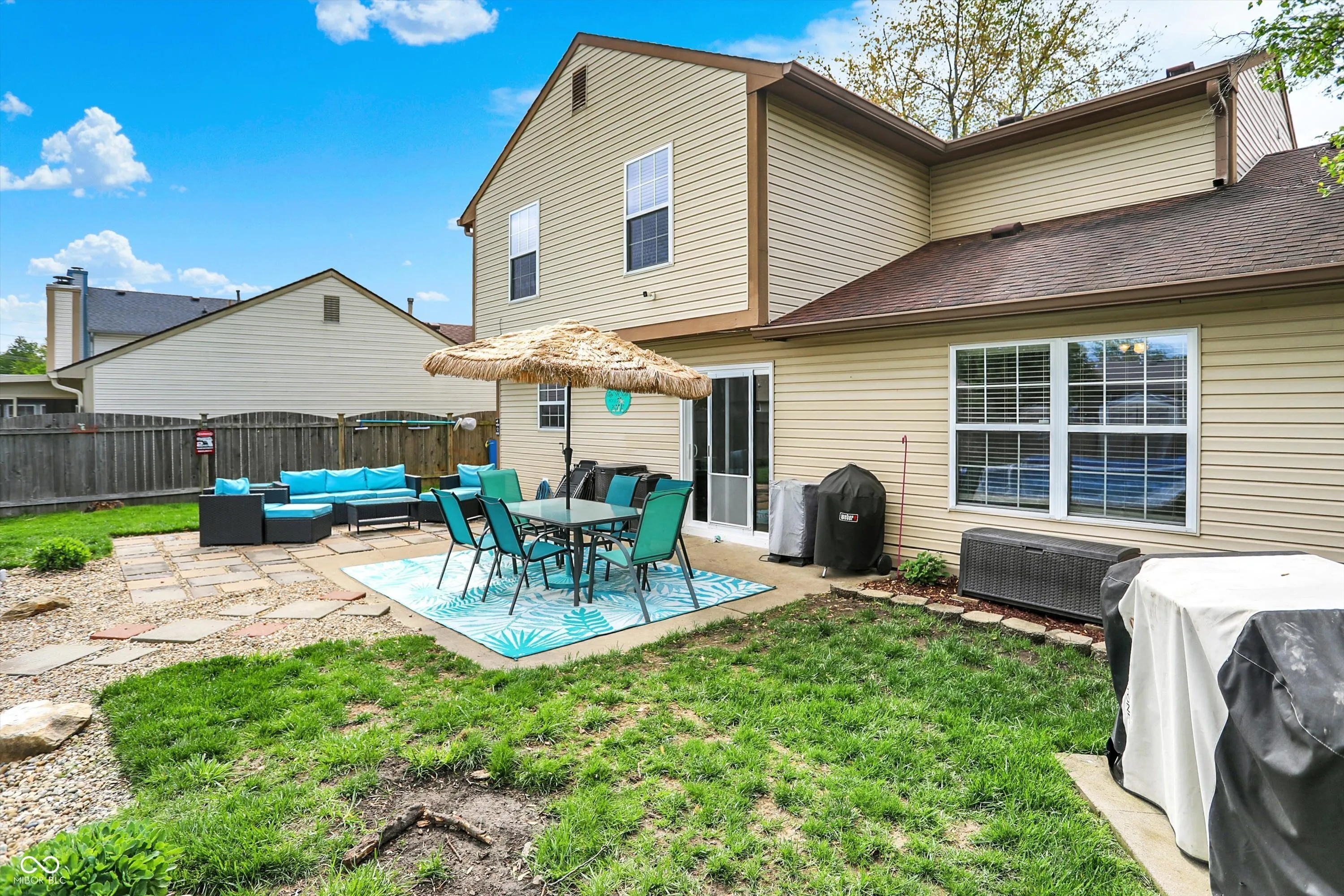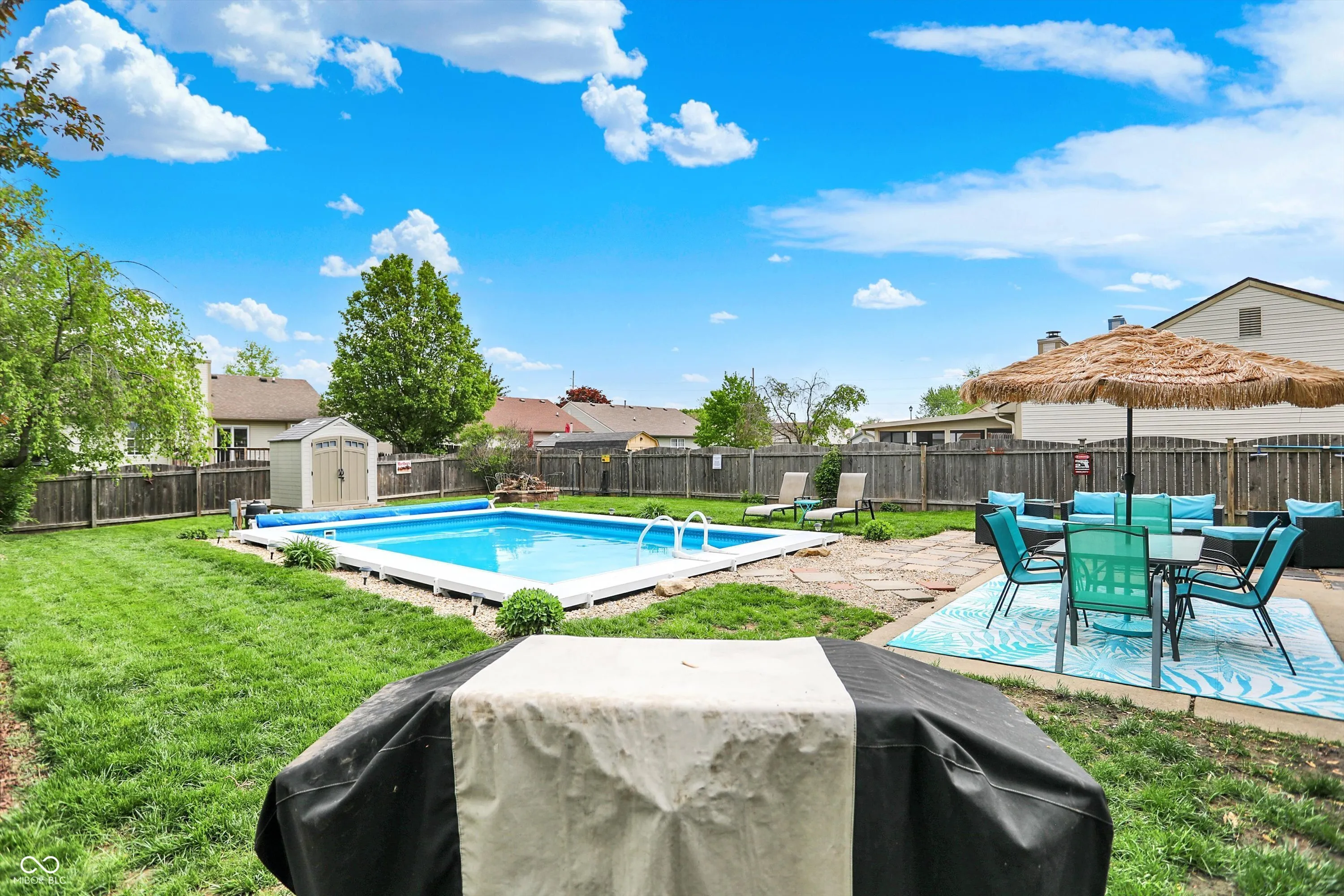 Welcome to this lovely home in Sterling Green! Offering 4 spacious bedrooms, 2.5 baths, and room to live, lounge, and entertain. Tucked in desirable Fishers, this gem features dual living spaces: a formal living room for quiet moments and a cozy family room that flows into the dining area and kitchen. The main level boasts vinyl plank flooring and a kitchen outfitted with stainless steel appliances, a pantry, and plenty of space for your inner chef. Upstairs, you’ll find all bedrooms, including a roomy primary suite with private bath. Step outside and let summer begin! The inground pool (built in 2019) is the ultimate backyard upgrade, surrounded by a large, fully fenced yard with patio space, fire pit, and room to play. All the pool equipment, shed, & toys stay! A covered front porch, long driveway, and 2-car attached garage round out the curb appeal. Major updates = peace of mind: tankless water heater (2024), furnace + AC (2022), sliding door (2023), gutter guards (2024), and newer garage door. Don’t miss this move-in-ready home with a pool-sized dose of fun!
