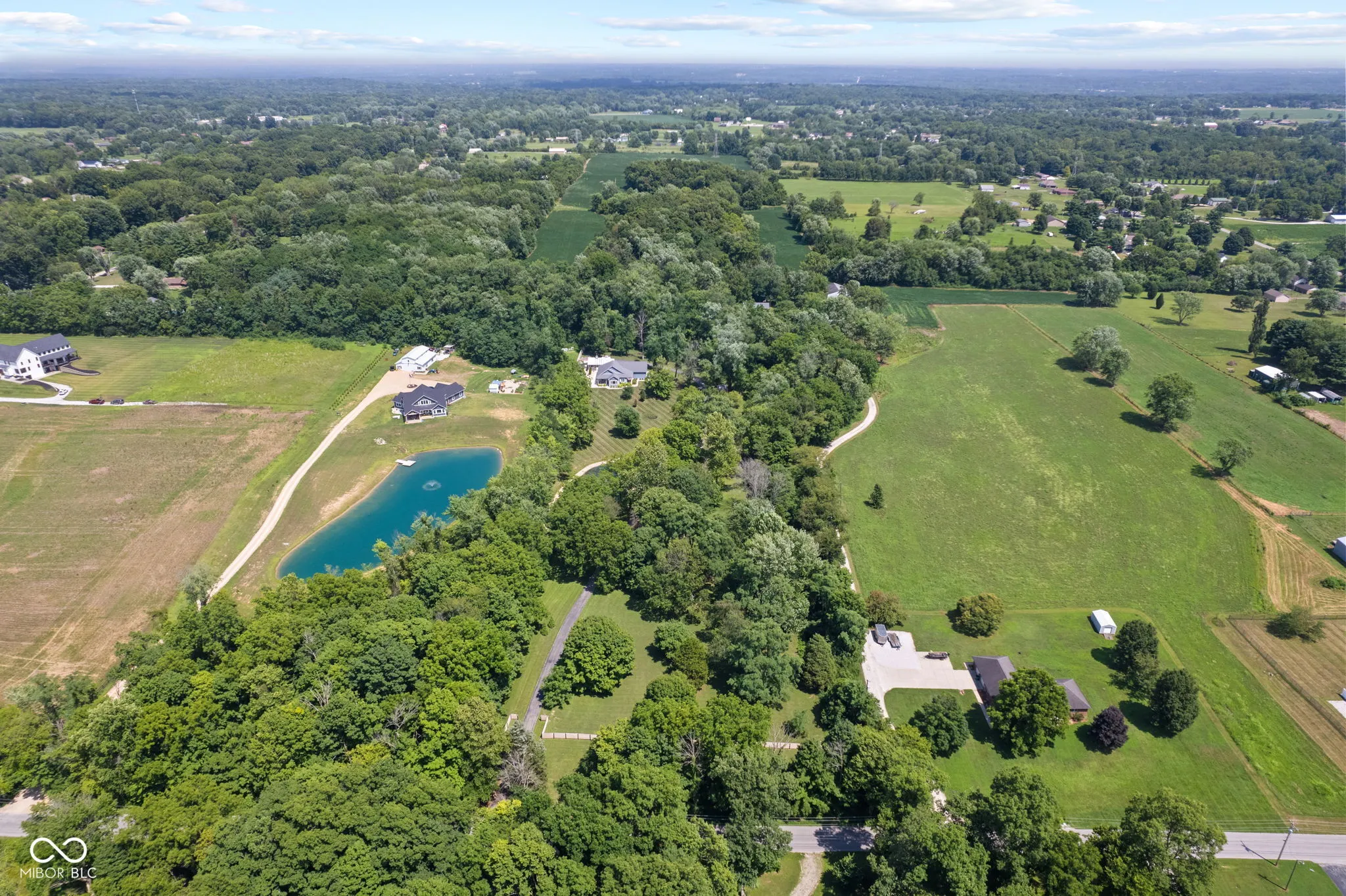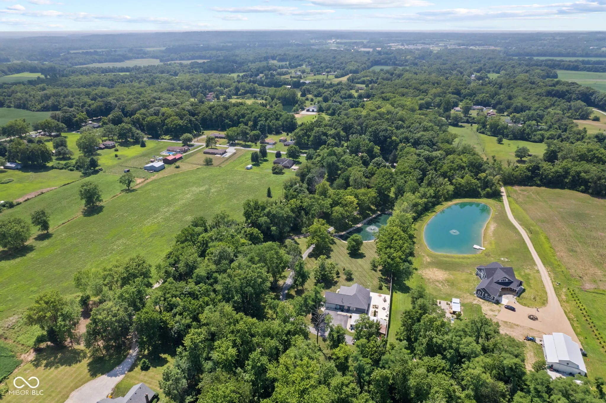 Custom-built in 2016, this updated 3BR/2BA home sits on nearly 6 wooded acres with a private pond, long driveway, and complete privacy. The open floor plan showcases a great room with cathedral ceilings, exposed wood beam, and abundant natural light. The kitchen features Amish-crafted cabinets, granite countertops, reverse osmosis, breakfast bar seating, and all appliances included. The primary suite offers a private retreat with a double-sink vanity, full shower surround, and walk-in closet. Fresh paint, new lighting, and thoughtful finishes throughout make the home move-in ready. There is attic space that provides additional square footage for future finishing. Outdoors is designed for entertaining and relaxation-2,000 sq ft of patio space, gas fire pit, and plumbing already in place for a future outdoor kitchen. The landscaped pond with fountain creates a serene backdrop. Multiple barns add versatile storage or hobby space, complementing the attached 2-car garage. A rare retreat that blends modern updates with serene surroundings-yet just minutes from town. Come check it out! Please do not drive down the driveway unless you have a private showing scheduled!