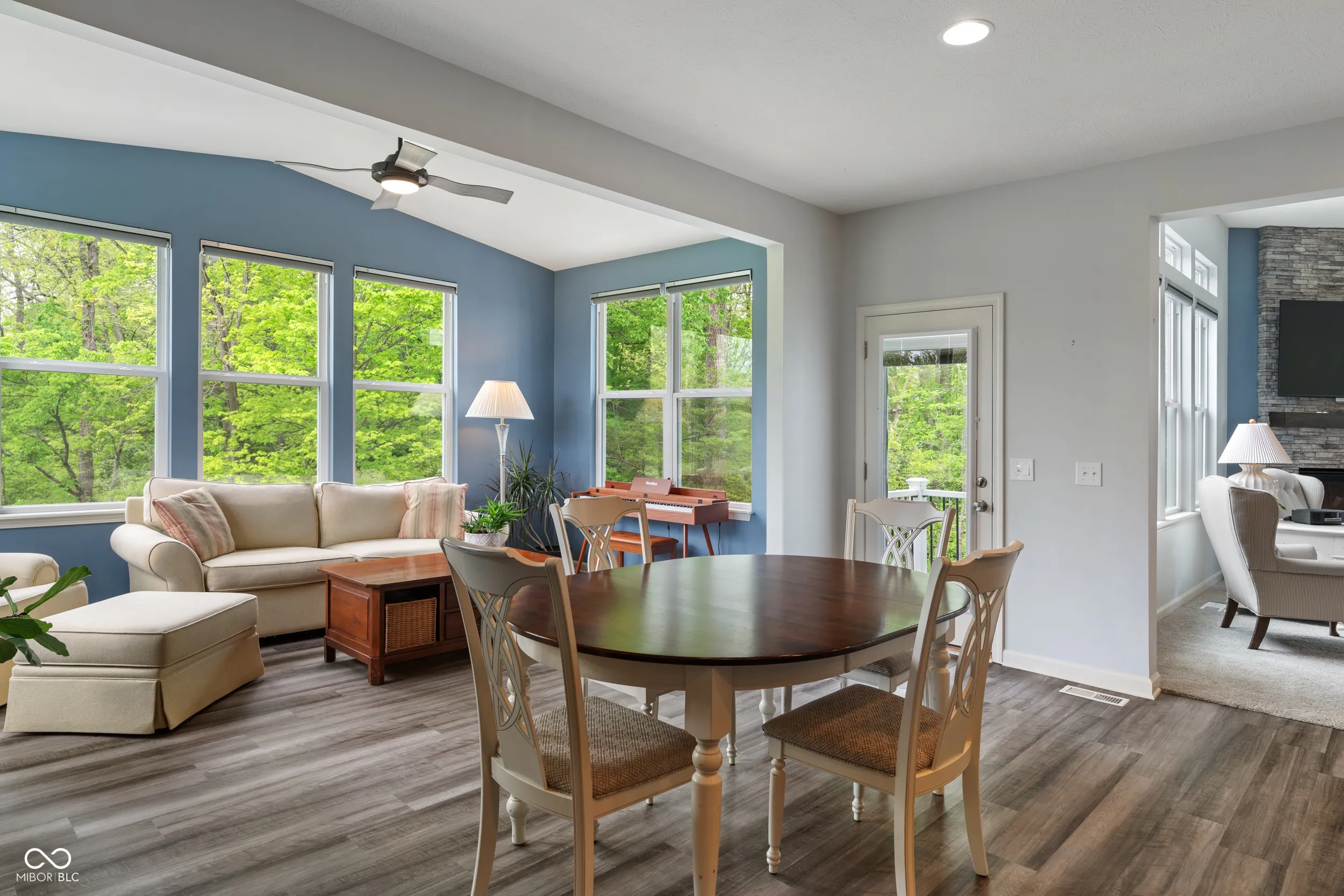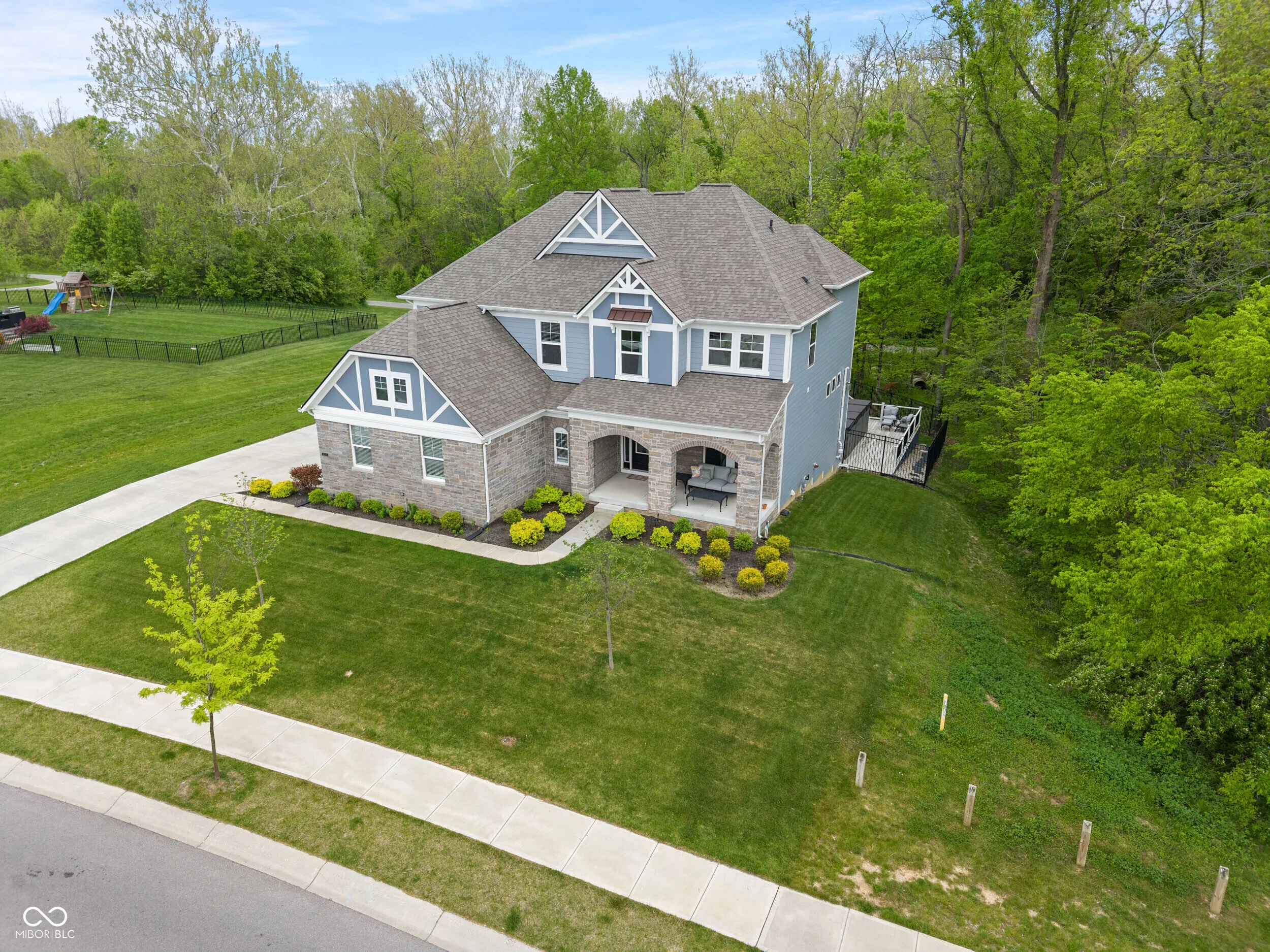 Tucked at the edge of a scenic wooded trail in Fishers, this 6-bedroom, 4-bath home offers the rare privacy typically found on acreage – while still being part of a vibrant community. Surrounded by mature trees and a wide easement on one side, the setting provides a sense of seclusion that’s hard to find in a neighborhood. With added square footage on all levels and upgraded finishes throughout, it stands apart from others in the community. A soaring great room, main-level guest suite, and upgraded kitchen with quartz counters anchor the open layout. The sunroom and expansive deck overlook peaceful woods, creating a true indoor-outdoor connection. Upstairs, you’ll find spacious secondary bedrooms, a large bonus room, and a luxurious primary suite with serene views. The walk-out basement offers flexible living and entertaining space with a theater, guest bedroom, full bath, and ample room for a family game area and home gym. The oversized 3-car side-load garage and fenced yard round out the home’s functionality. Nestled in a tranquil setting yet just minutes from Hamilton Town Center, Ruoff Music Center, Geist Reservoir, and I-69, this home delivers space, privacy, and style in the award-winning HSE school district.