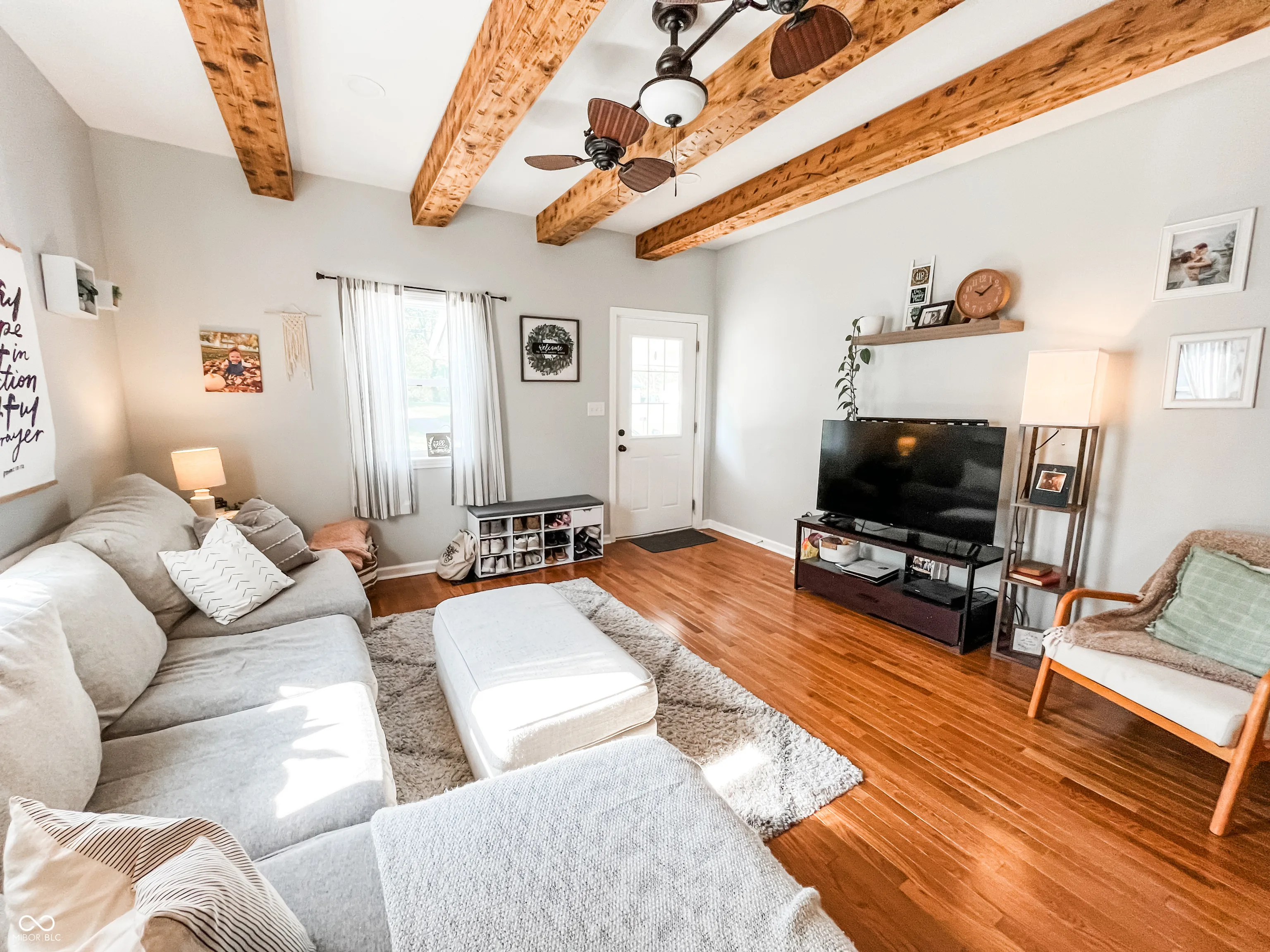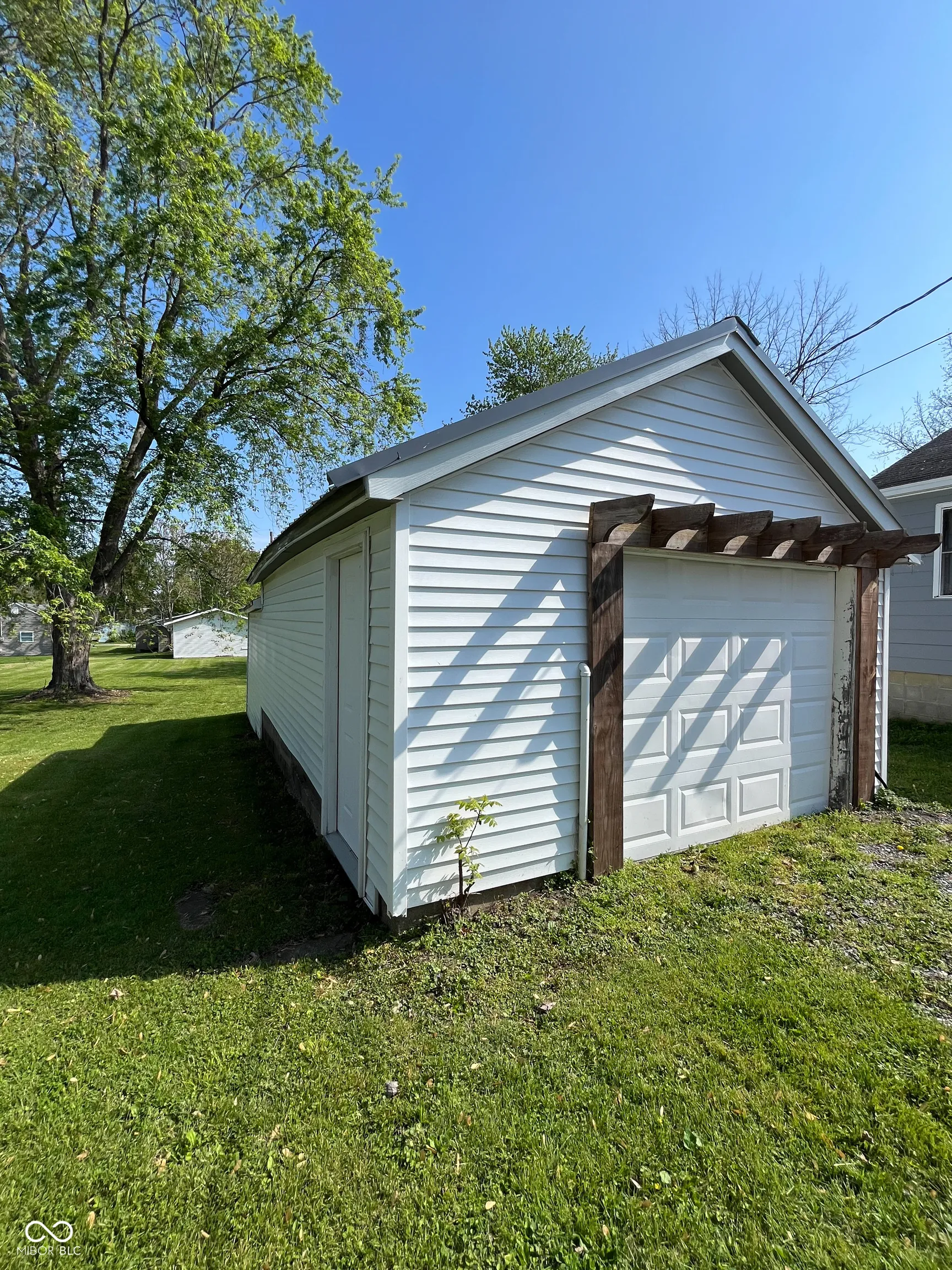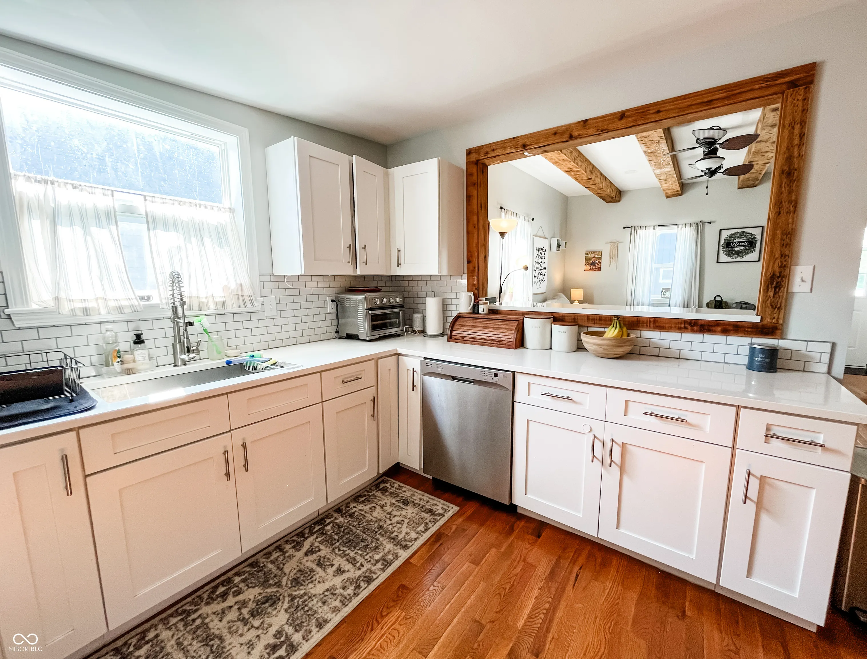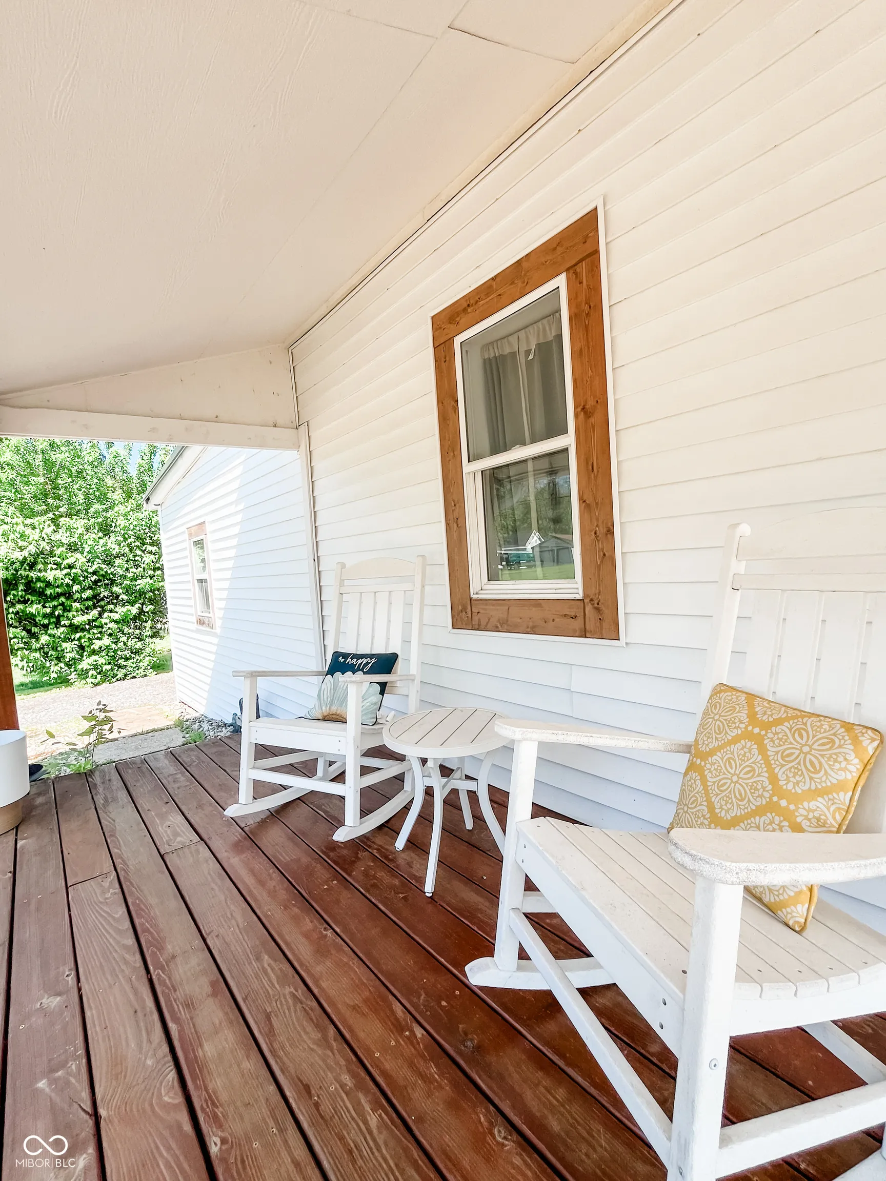 This fully renovated gem in Crawfordsville leaves nothing to be done except move in! Stepping inside, your eyes are immediately drawn upward to the tall ceiling with custom wood beams adorning the light and bright living room. The stylish kitchen features a peek-through breakfast bar with wood corbels, white cabinets, granite counters, stainless steel appliances, and a stylish tile backsplash. A custom, rustic sliding barn door reveals a large walk-in pantry with laundry hookup and convenient access with stairway entry to the basement. The dining room offers ample seating and anchors the center of the home, complementing the open modern layout. Retreat to either of two updated bathrooms with fully tiled showers, granite-topped vanities, and tile floors. The primary bedroom includes a private en suite. Two additional generous-sized bedrooms provide comfortable living and ample storage, allowing you to personalize each space with ease. Relax on the back deck overlooking the spacious yard, perfect for hobbies and entertaining. A detached garage gives you exterior storage and secure parking; two driveways provide additional off-street parking. The home boasts updates throughout with newer oak hardwood floors, fresh paint, updated lighting, a newer HVAC, electrical, plumbing, roof, siding, gutters, and windows. This home offers true peace of mind with your purchase!