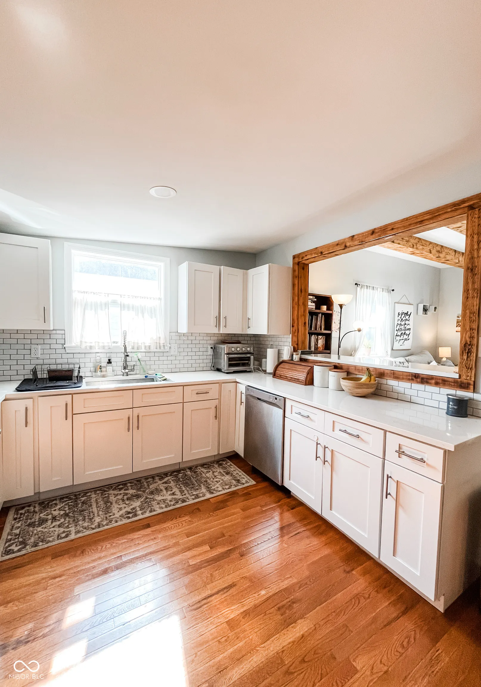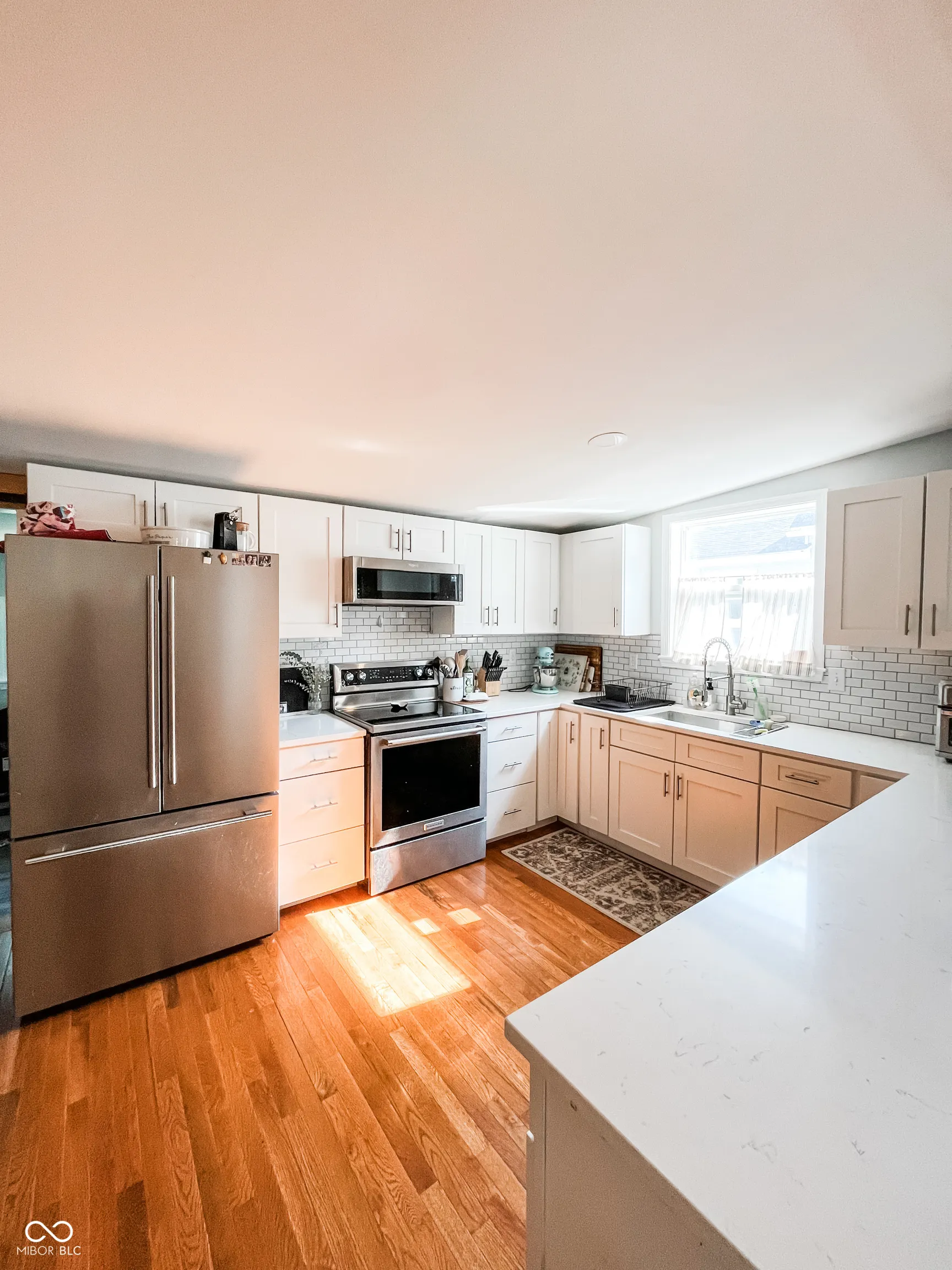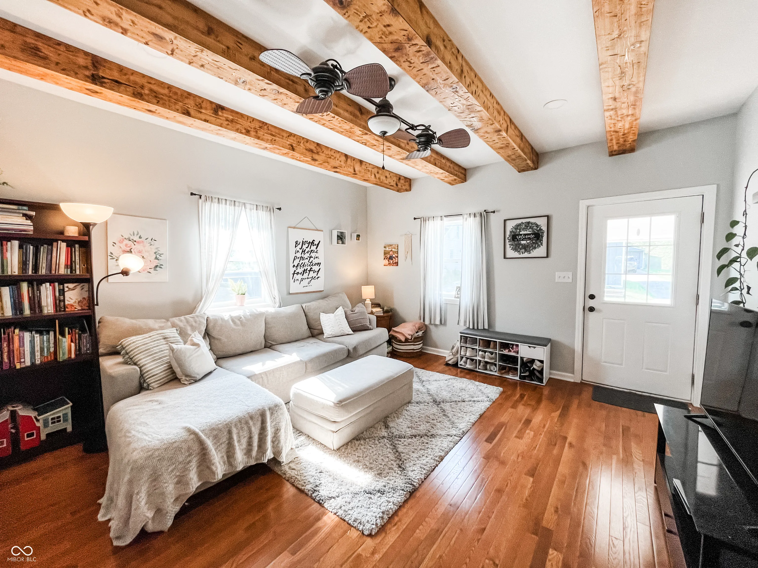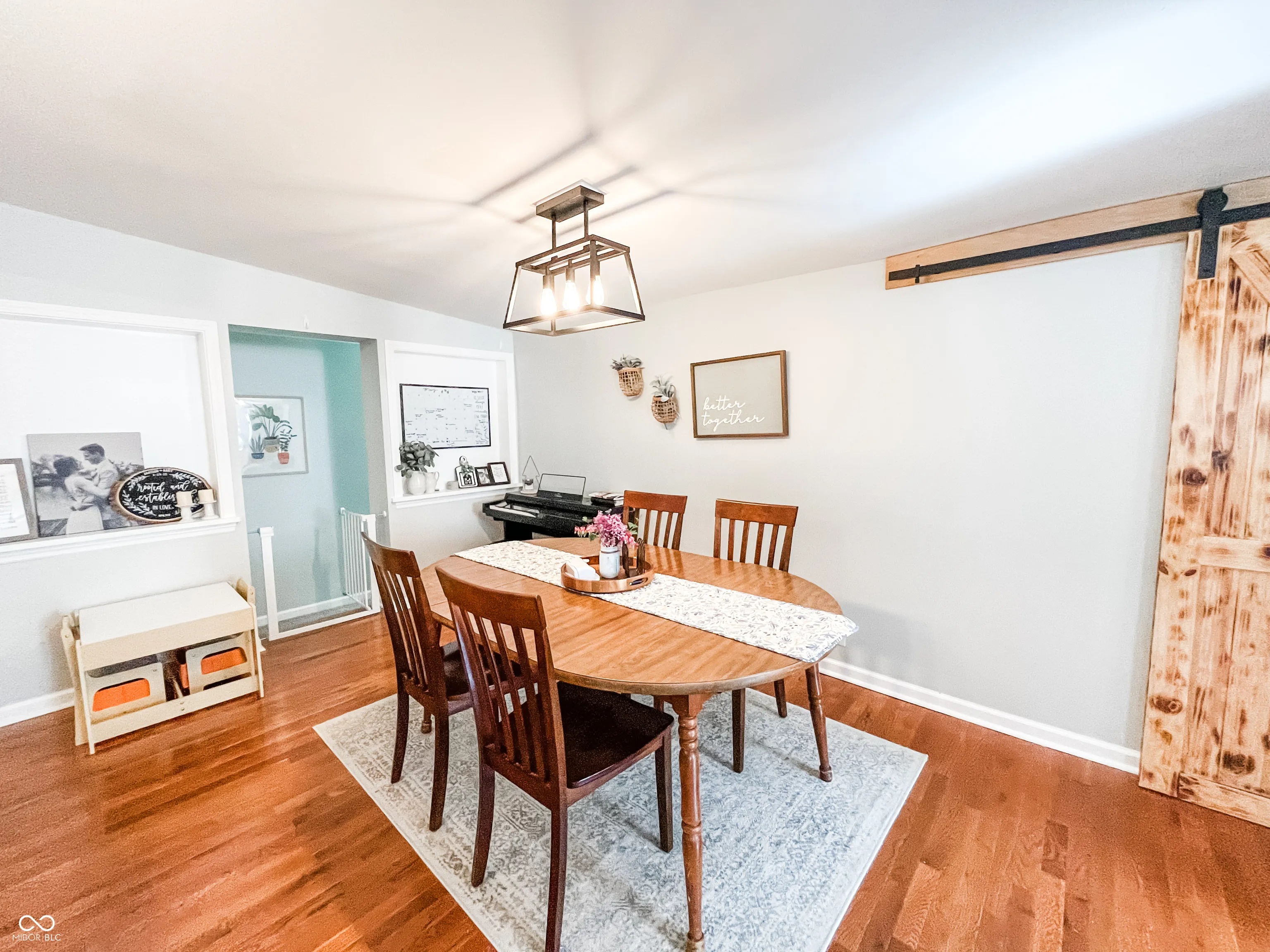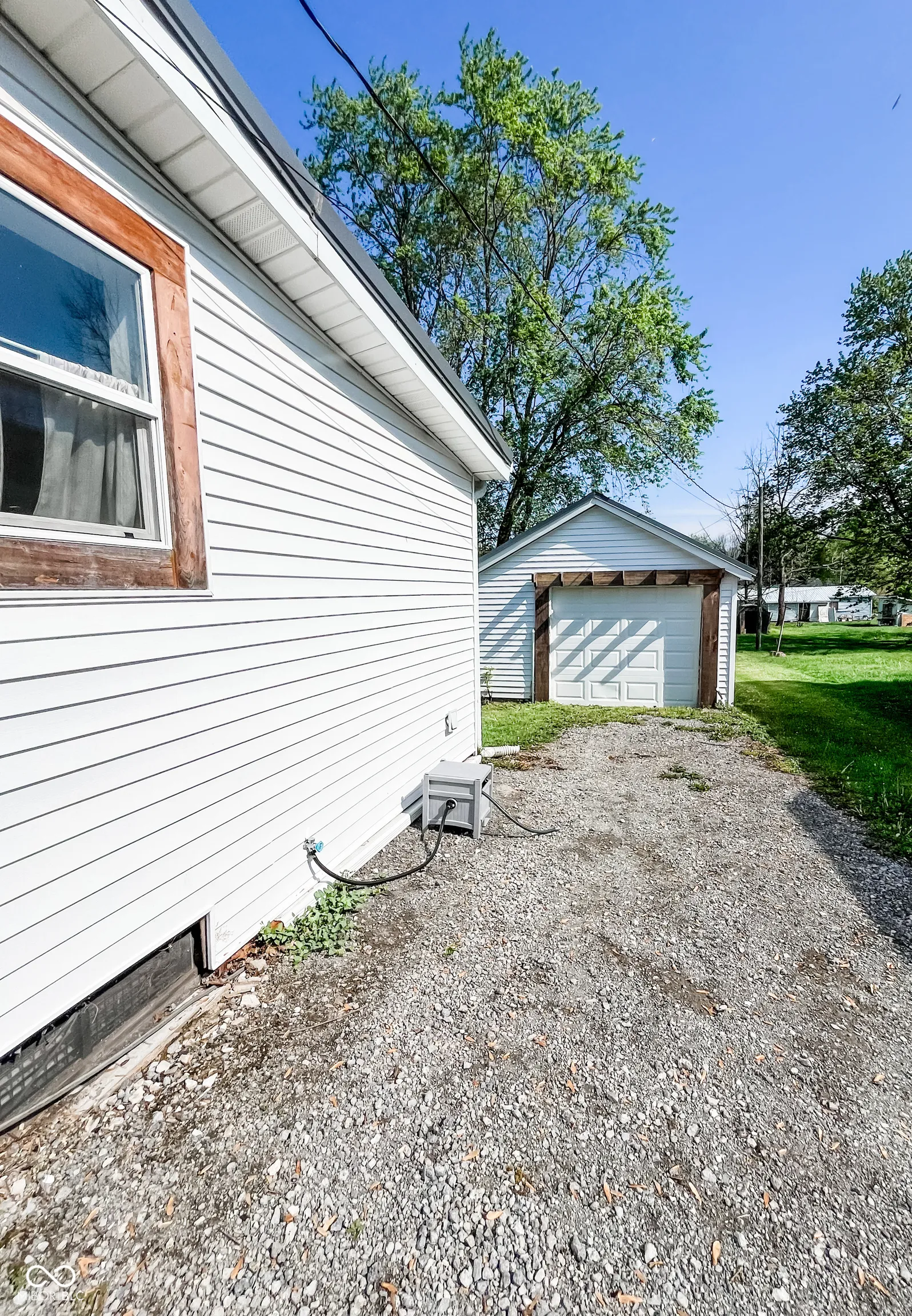 This fully renovated gem in Crawfordsville leaves nothing to be done except move in! Stepping inside, your eyes are immediately drawn upward to the tall ceiling with custom wood beams adorning the light and bright living room. The stylish kitchen features a peek-through breakfast bar with wood corbels, white cabinets, granite counters, stainless steel appliances, and a stylish tile backsplash. A custom, rustic sliding barn door reveals a large walk-in pantry with laundry hookup and convenient access with stairway entry to the basement. The dining room offers ample seating and anchors the center of the home, complementing the open modern layout. Retreat to either of two updated bathrooms with fully tiled showers, granite-topped vanities, and tile floors. The primary bedroom includes a private en suite. Two additional generous-sized bedrooms provide comfortable living and ample storage, allowing you to personalize each space with ease. Relax on the back deck overlooking the spacious yard, perfect for hobbies and entertaining. A detached garage gives you exterior storage and secure parking; two driveways provide additional off-street parking. The home boasts updates throughout with newer oak hardwood floors, fresh paint, updated lighting, a newer HVAC, electrical, plumbing, roof, siding, gutters, and windows. This home offers true peace of mind with your purchase!