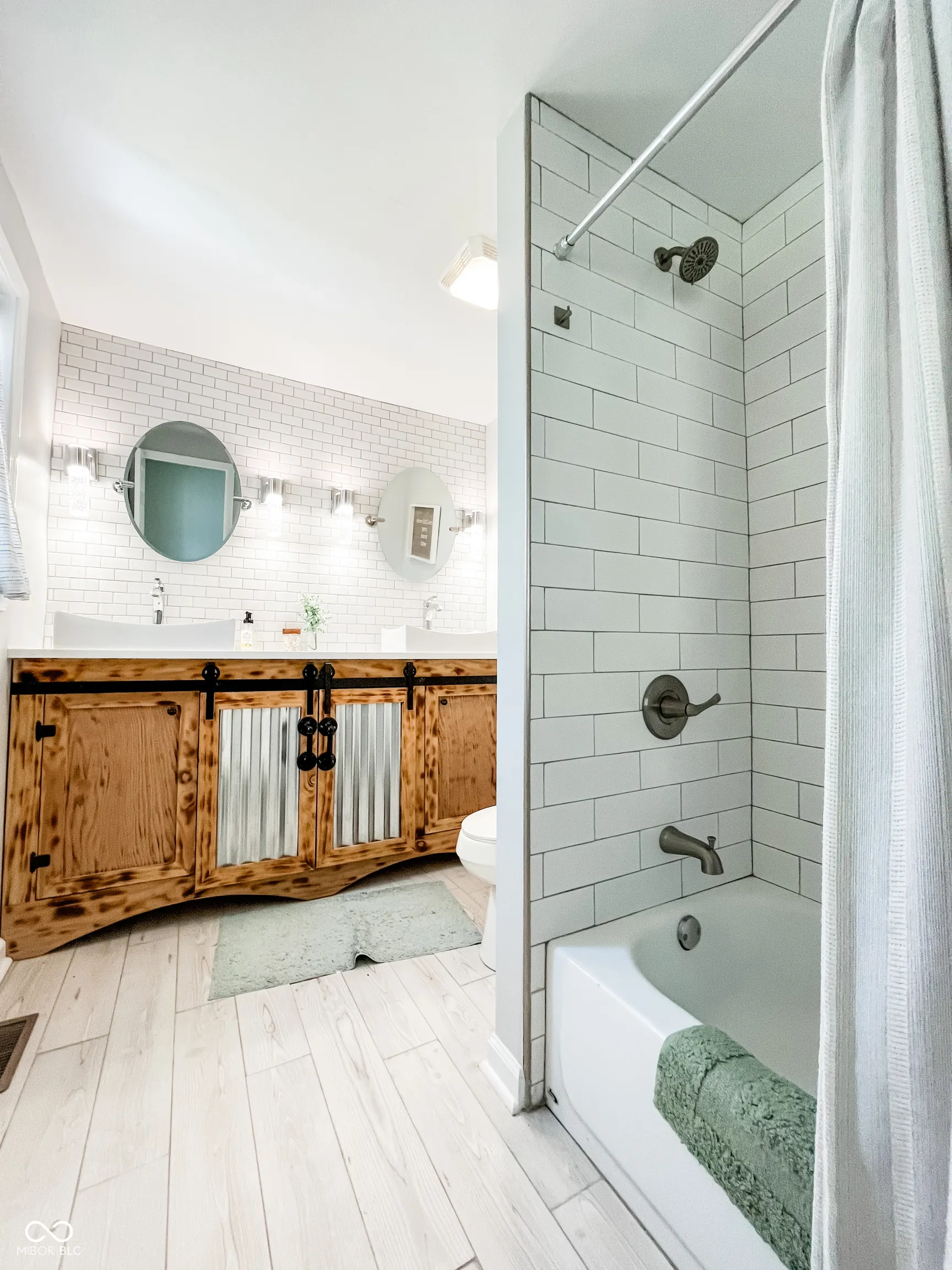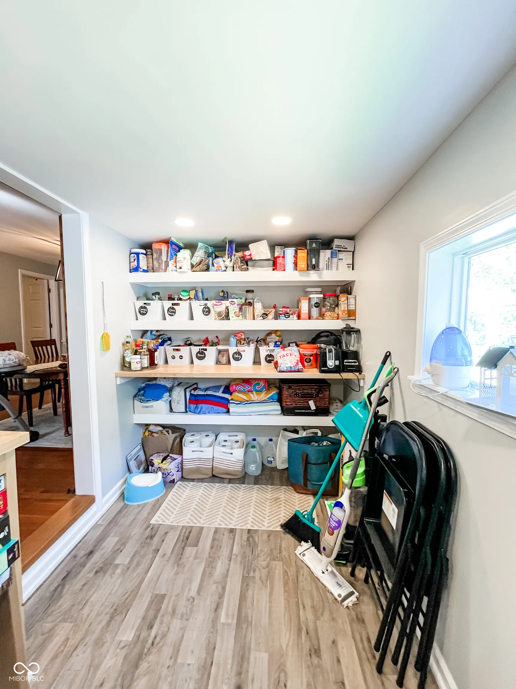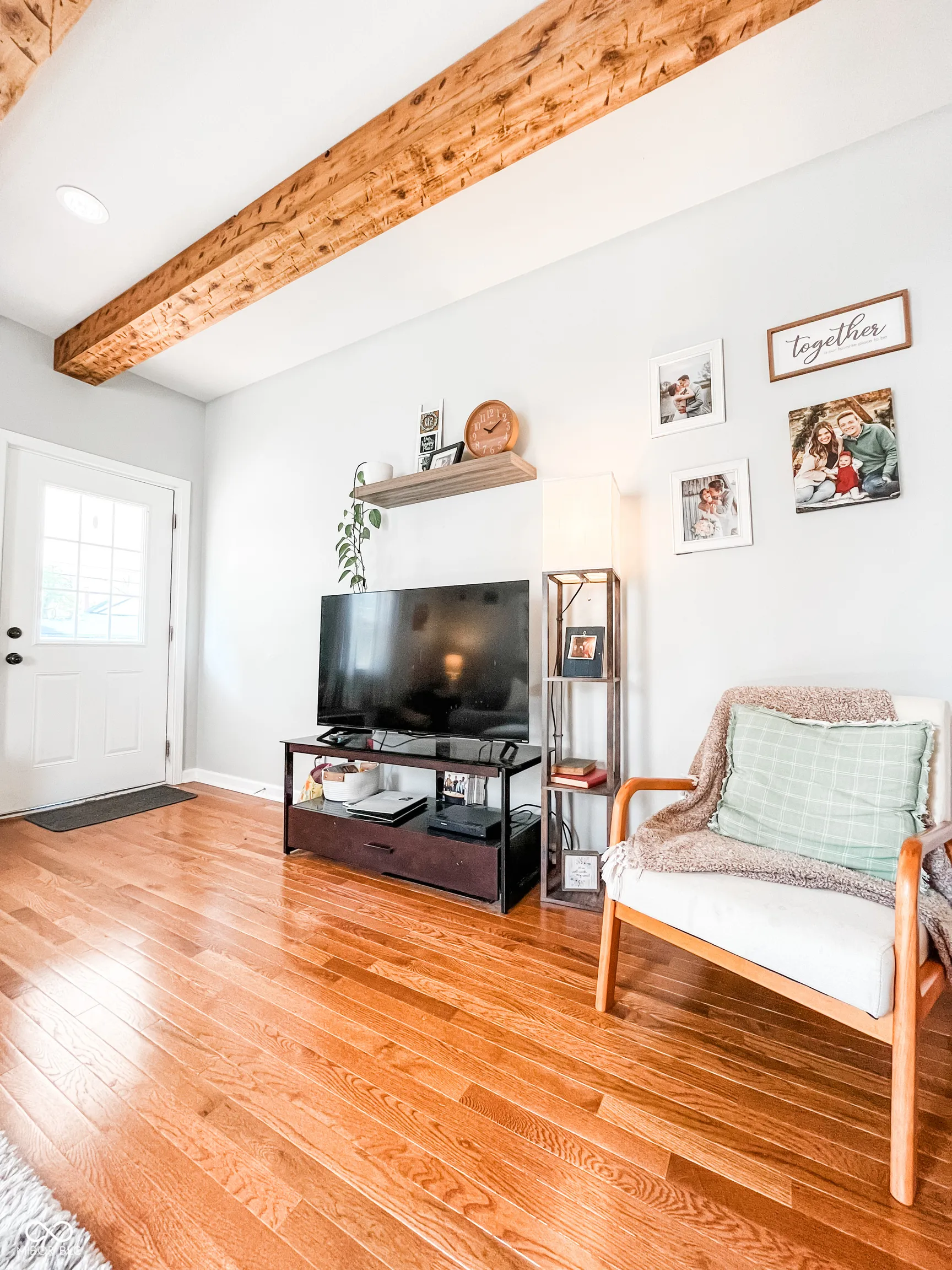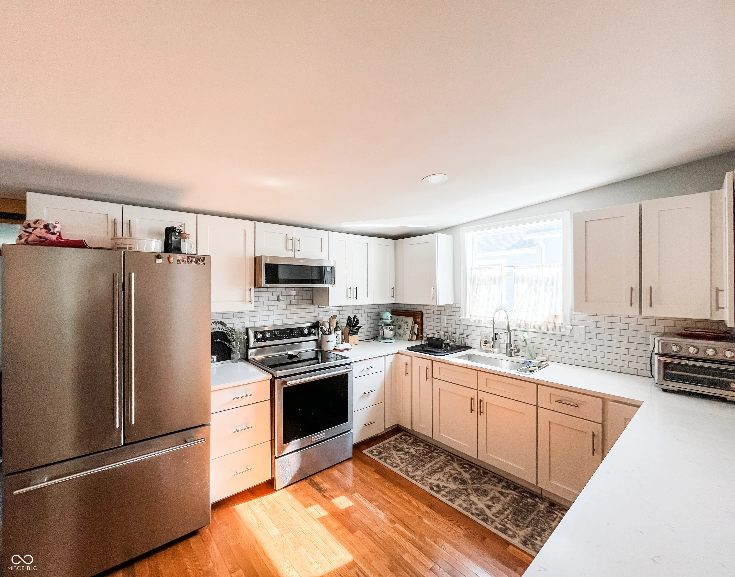This fully renovated gem in Crawfordsville leaves nothing to be done except move in! Stepping inside, your eyes are immediately drawn upward to the tall ceiling with custom wood beams adorning the light and bright living room. The stylish kitchen features a peek-through breakfast bar with wood corbels, white cabinets, granite counters, stainless steel appliances, and a stylish tile backsplash. A custom, rustic sliding barn door reveals a large walk-in pantry with laundry hookup and convenient access with stairway entry to the basement. The dining room offers ample seating and anchors the center of the home, complementing the open modern layout. Retreat to either of two updated bathrooms with fully tiled showers, granite-topped vanities, and tile floors. The primary bedroom includes a private en suite. Two additional generous-sized bedrooms provide comfortable living and ample storage, allowing you to personalize each space with ease. Relax on the back deck overlooking the spacious yard, perfect for hobbies and entertaining. A detached garage gives you exterior storage and secure parking; two driveways provide additional off-street parking. The home boasts updates throughout with newer oak hardwood floors, fresh paint, updated lighting, a newer HVAC, electrical, plumbing, roof, siding, gutters, and windows. This home offers true peace of mind with your purchase!
