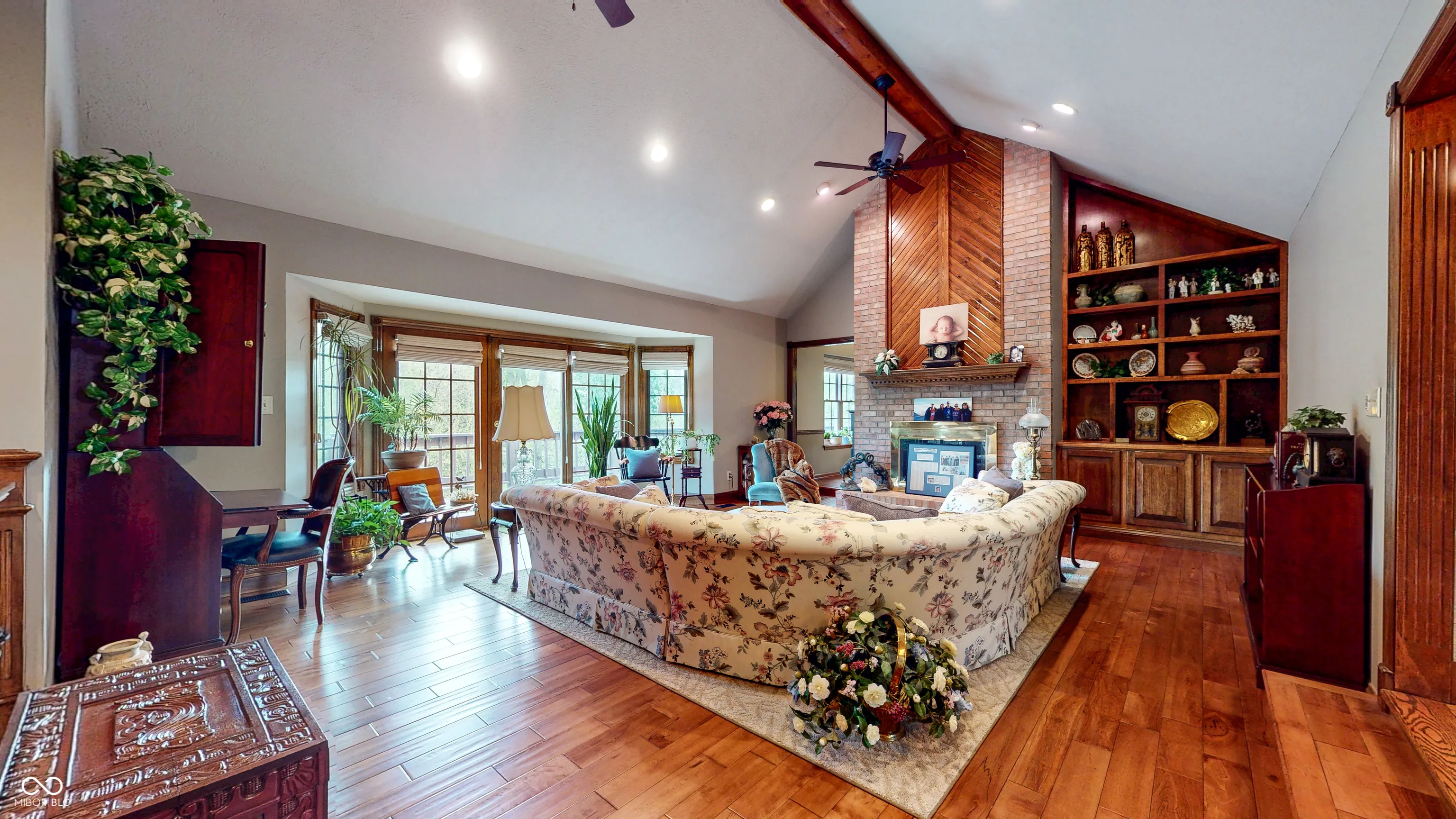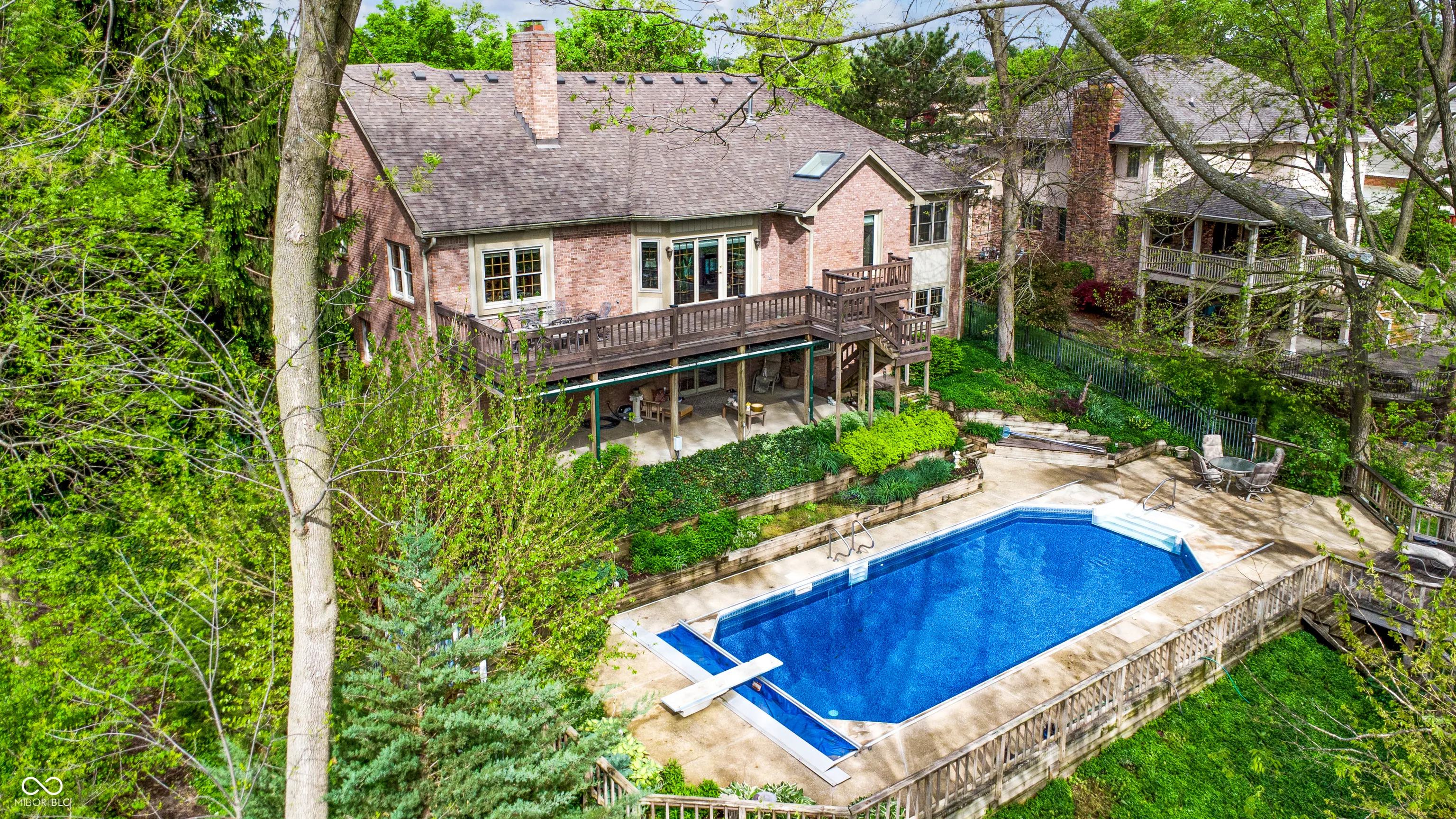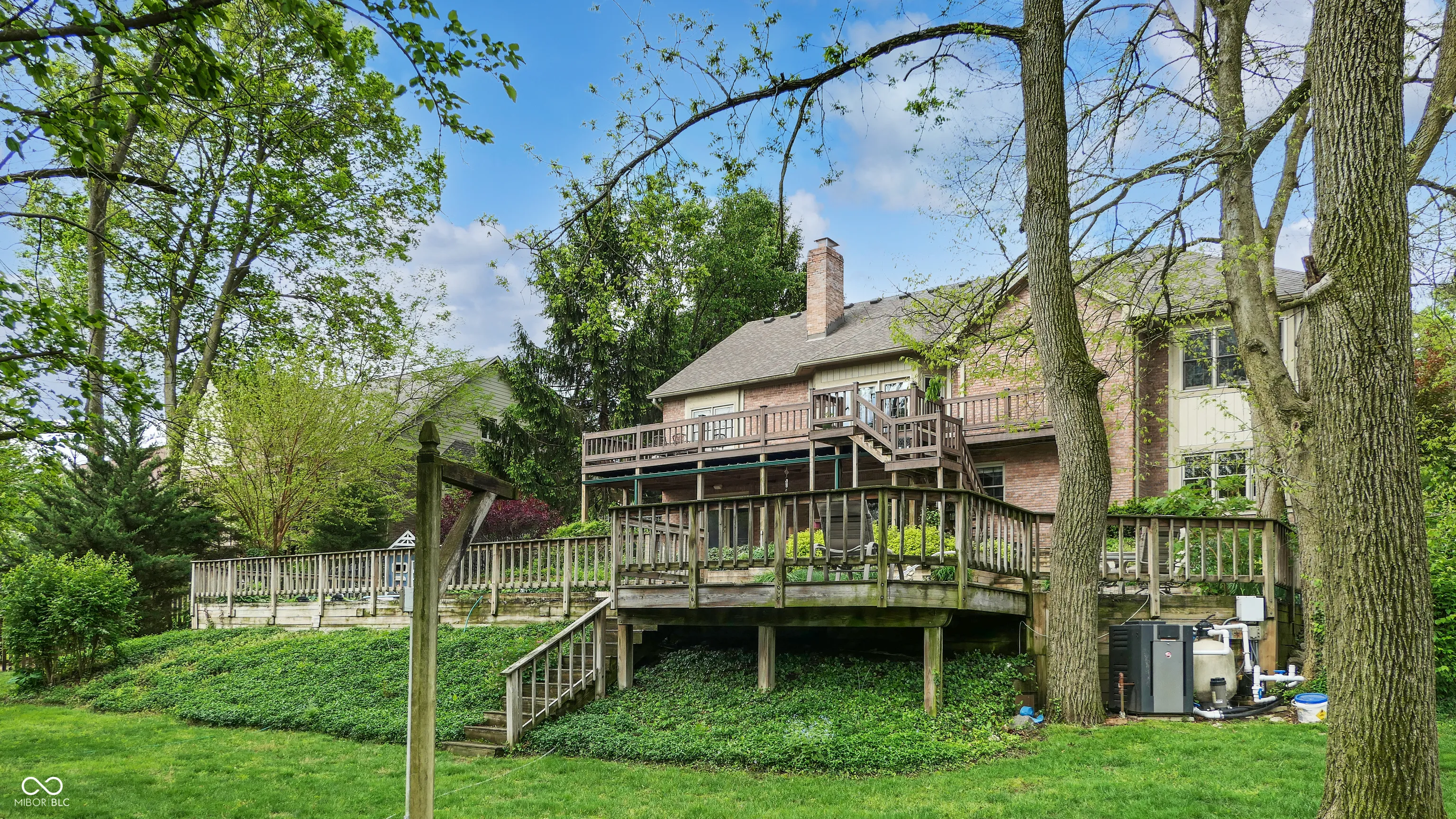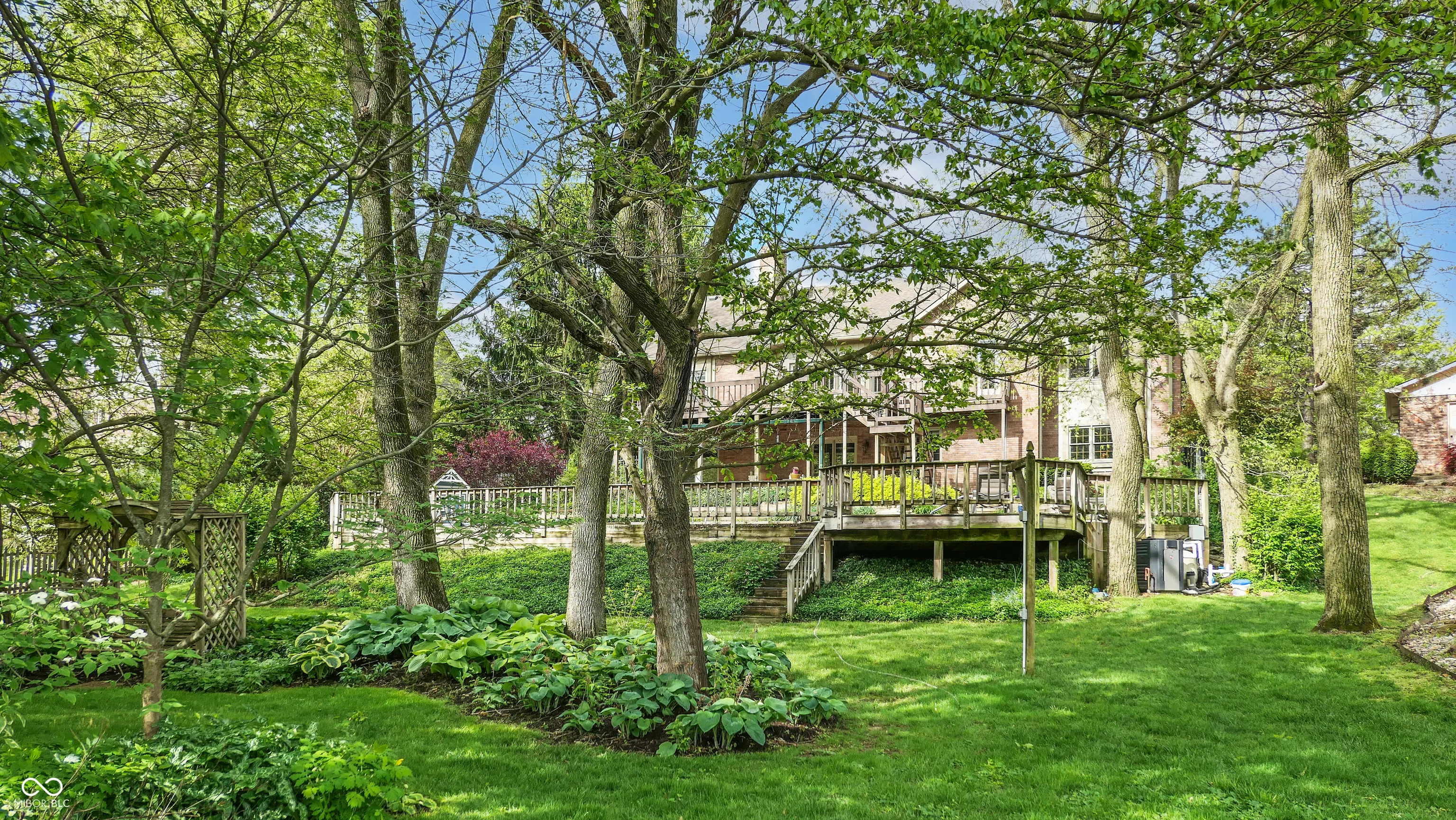 You simply must see this breathtaking 4 bedroom, 4.5 bathroom home with a walk-out basement and in-ground pool on a 1.2 acre lot in Greenwood! Explore this home via interactive 3D home tour, complete with floor plans, video & more. Entertainers will love the finished, walk-out basement with family room, wet bar, several bonus rooms, and a full bathroom. The large swimming pool features a diving board and electric pool cover. Relax outside on the covered back patio or on the wood deck that looks out over the pool and expansive backyard. Enjoy a park-like backyard with beautiful landscaping, mature trees, and over an acre of land. Primary bedroom features a tray ceiling and custom bathroom with direct access to the deck. Formal living room with towering cathedral ceiling, stylish wood beam, built-in bookshelves, and a stunning brick fireplace. Upper level office could be a den or a 5th bedroom with an attached full bathroom. Huge garage with tandem parking for up to 4 vehicles. Storage shed with water and electricity. Gorgeous custom finishings throughout the home including woodwork, crown molding, entrance foyer, and so much more in the hidden gem neighborhood of Greenwood Commons.