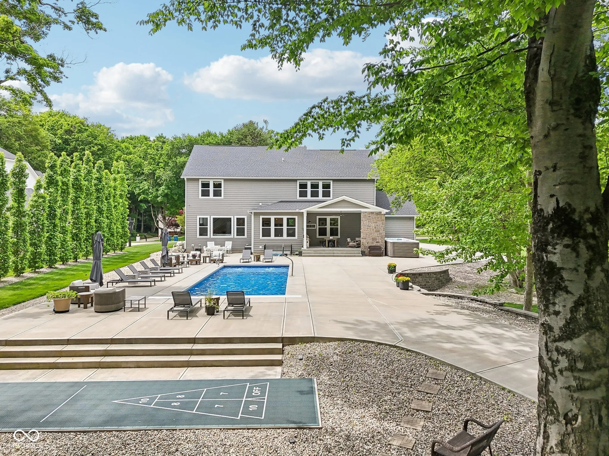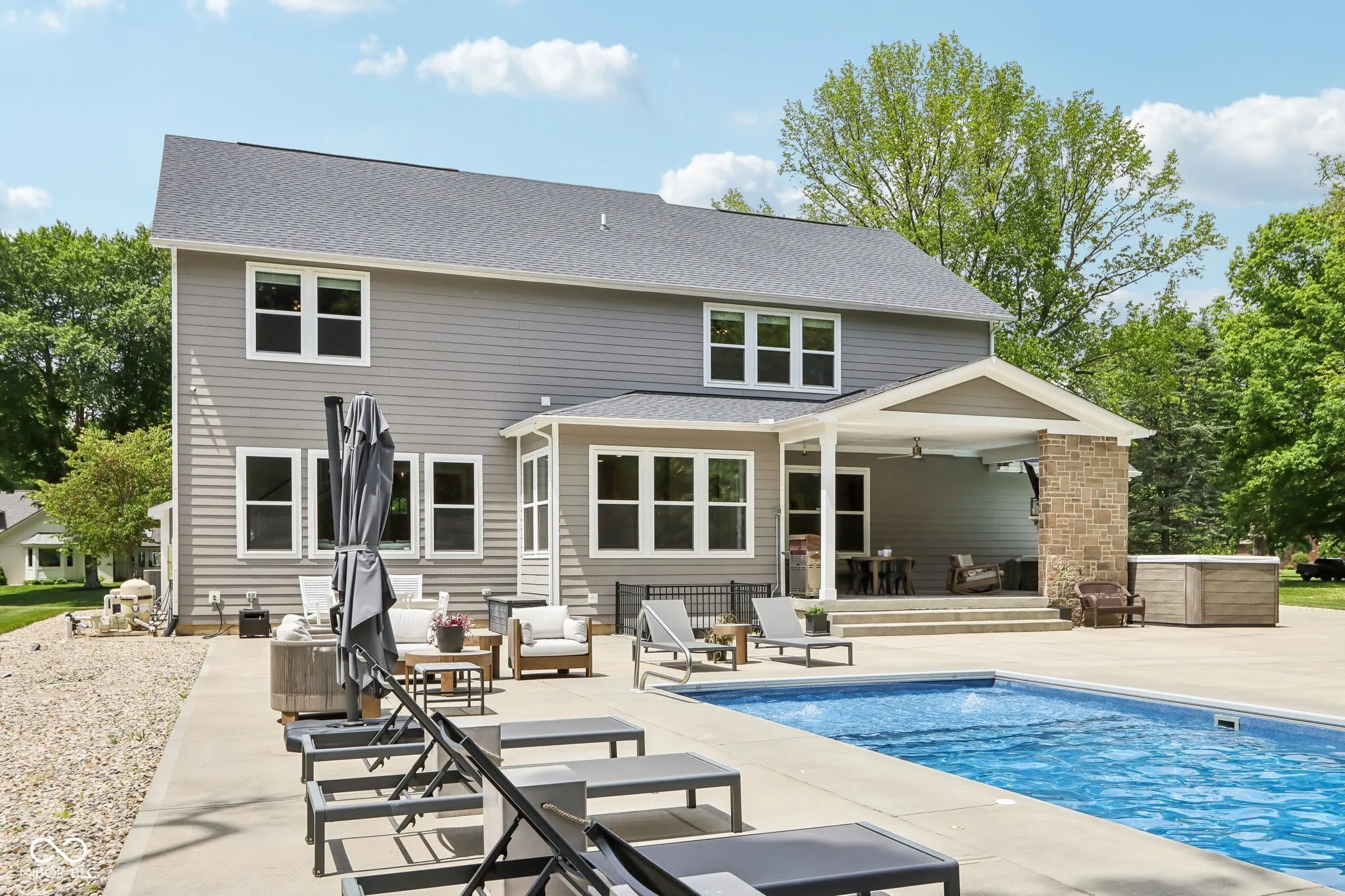 Step into this beautiful, luxurious, custom-built home and you won’t want to leave. It’s like arriving at a Five Star resort with all modern conveniences at your finger tips. Built in 2019, no expense has been spared both inside and out. Open plan living-kitchen-breakfast room with huge windows overlooking the stunning property. Separate formal, paneled dining room. Gorgeous chef’s kitchen with Quartz island & high-end SS appliances leads into massive pantry, planning center, half bath, mud room, and attached heated garage with EV charger. Four generous bedrooms – including primary suite with massive spa bathroom; huge marble shower; double vanities; his & her closets; separate W/C. Retreat to the den/office for work, or to the awesome basement rec room for fun. The sunny basement offers a family room, wet bar, full bathroom, and great storage. Second-to-none outdoor living space with stone masonry gas fireplace; 17′ Garden Leisure Swim Spa; 40′ swimming pool with tanning ledge; custom-built heated pool house w/ rest room; 10K+ sq ft of pristine concrete pool deck & patio all set in 1+ acres of lush landscape. It’s like being on retreat every day. All home wired and wifi integrated network; full property home security & all home automation control system inc exterior video cameras; HVAC digital remote thermostat controls. Convenient to Carmel, Indianapolis, Keystone at the Crossing, and the Monon Trail-this home won’t stay on the market long! Say yes before someone else snaps it up, and move into your new dream home!
