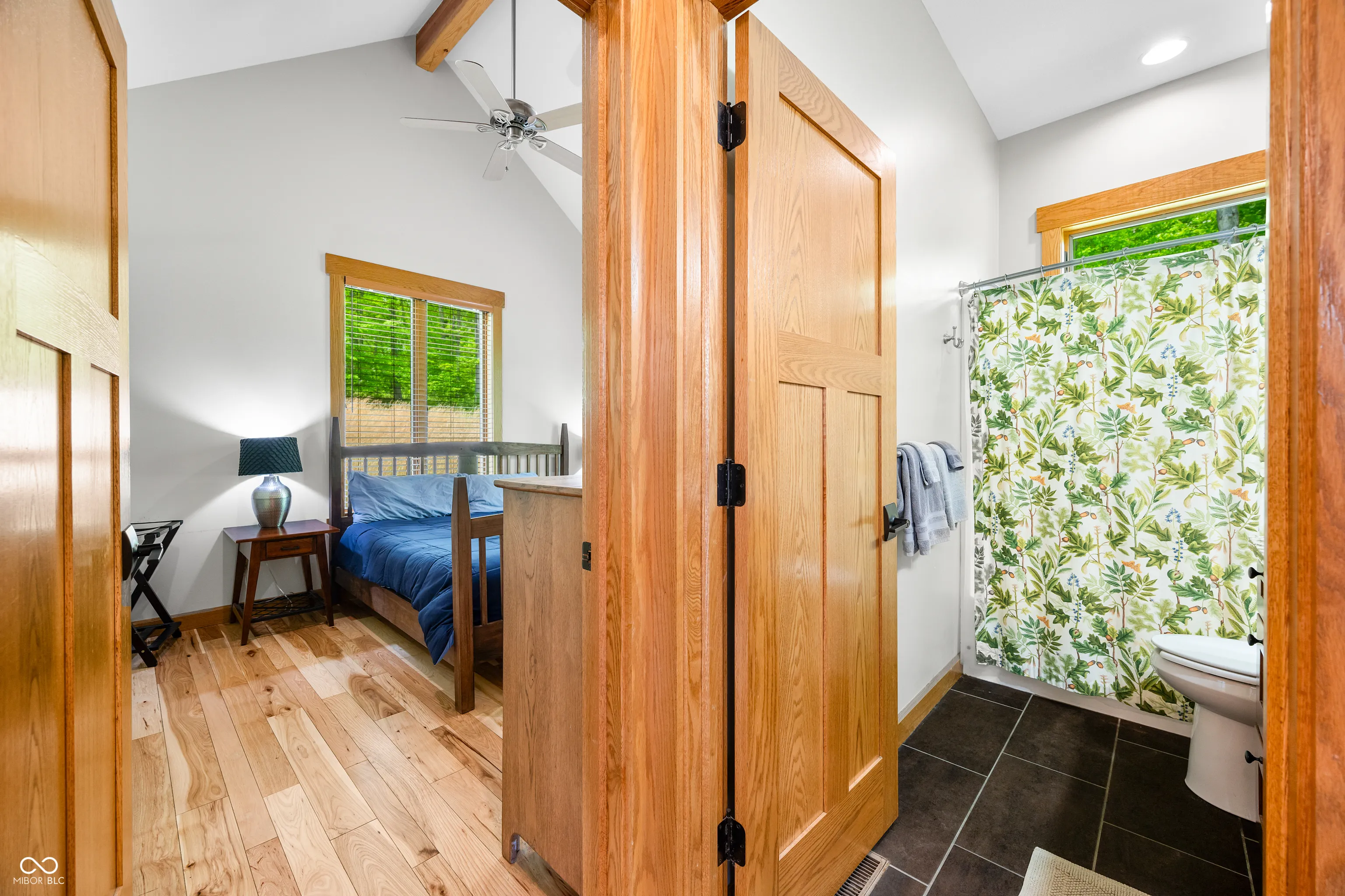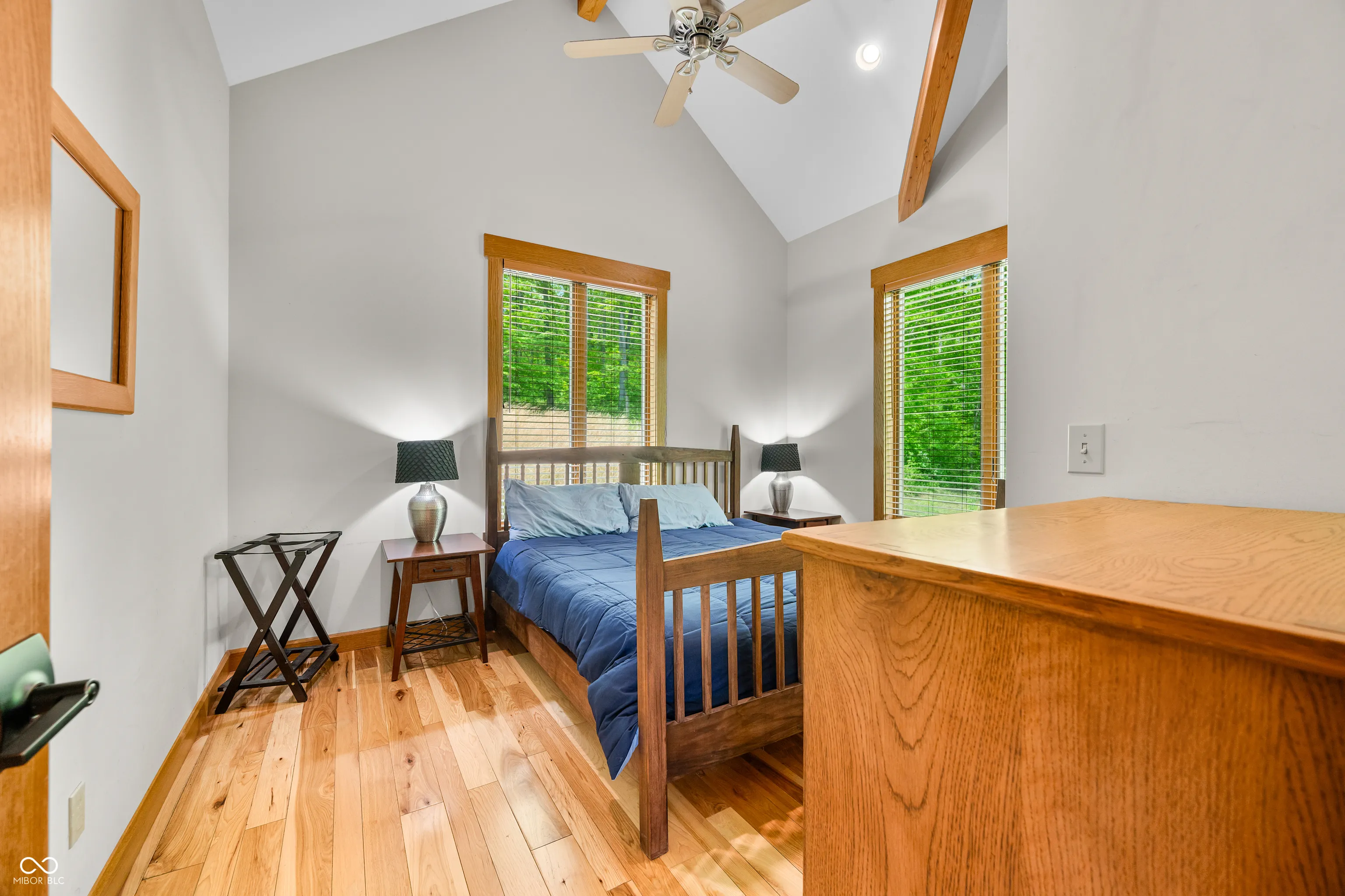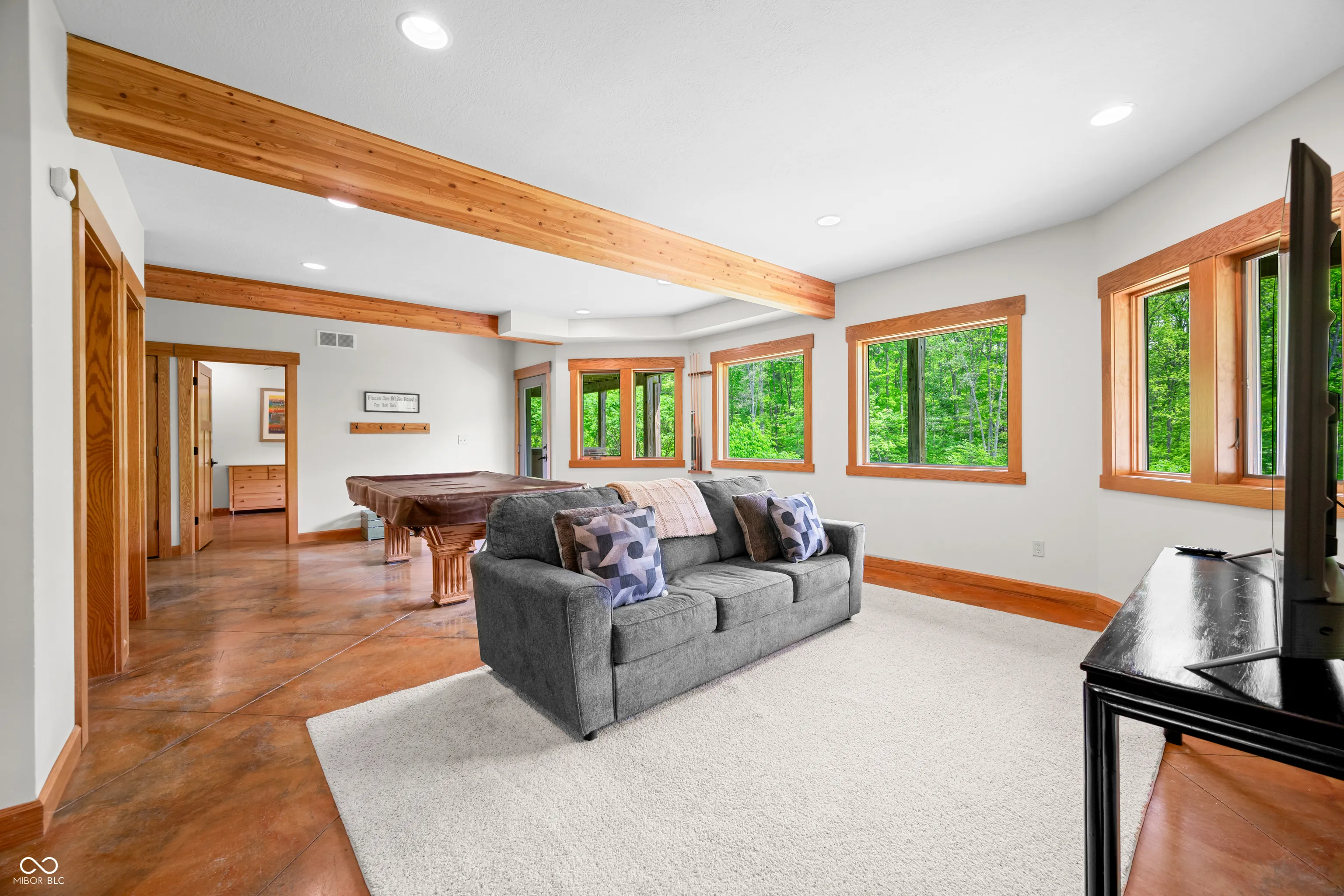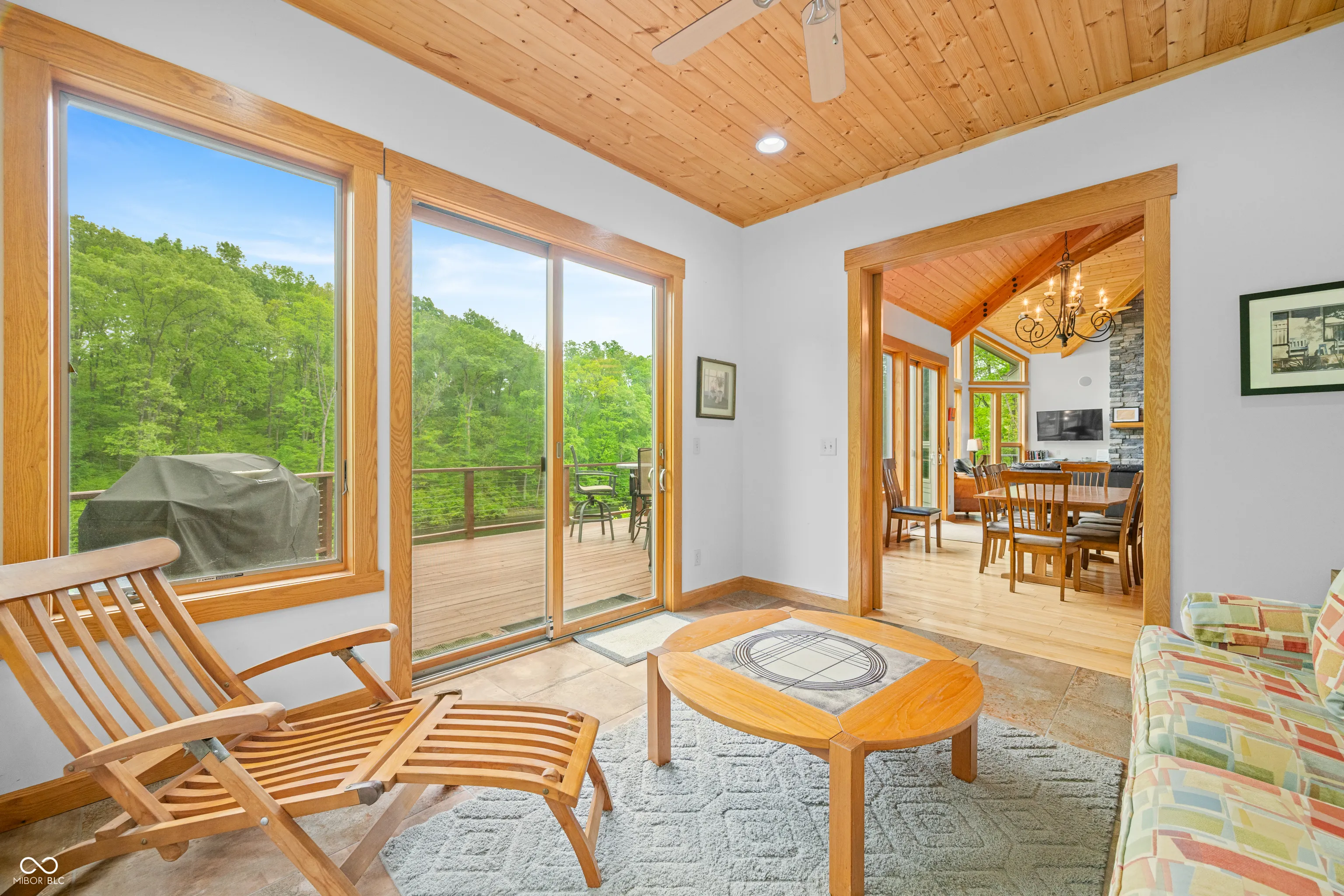 “Lake Forest Cabin” is a stunning 4-bedroom, 3.5-bath timber frame retreat perched at the edge of a serene, 3-acre stocked lake on 12.26 acres of land. Nestled at the end of a quiet, county-maintained road bordered by Brown County State Park and Sycamore Land Trust. This property holds a special exception for overnight tourist rental, making it a turnkey opportunity for both personal enjoyment and income-generating potential – approved for up to 8 guests. Inside, the main level boasts soaring ceilings, rich hickory hardwood and ceramic tile flooring, and breathtaking lake views through expansive windows that flood the space with natural light. The master suite and a second bedroom offer comfort and privacy, while the spacious kitchen – featuring cherry cabinetry, a center island with seating, and ample granite countertop space – is ideal for entertaining. The great room’s gas-log fireplace and adjacent dining area create a warm, inviting atmosphere, while the sunroom provides a peaceful spot to unwind. A full-length deck spans the lake side of the home, offering panoramic views and plenty of room for outdoor dining or relaxation. Custom ironwork railings lead you to the finished walk-out lower level, where you’ll find two additional bedrooms, a generous recreation and family room with wet bar, a full bath with double vanities, and several versatile bonus and storage rooms. Step out to the covered lower-level patio and enjoy the private hot tub. Efficiency and comfort come together with a lake-looped geothermal HVAC system, two tankless water heaters, dual 200-amp electric panels, and high-speed fiber optic internet. The home also includes numerous handicap-accessible features, ensuring ease of access for all. As an added opportunity, the adjoining property at 468 Upper Schooner Rd – also a licensed tourist rental – is available for purchase (See BLC #22037147 for details.)