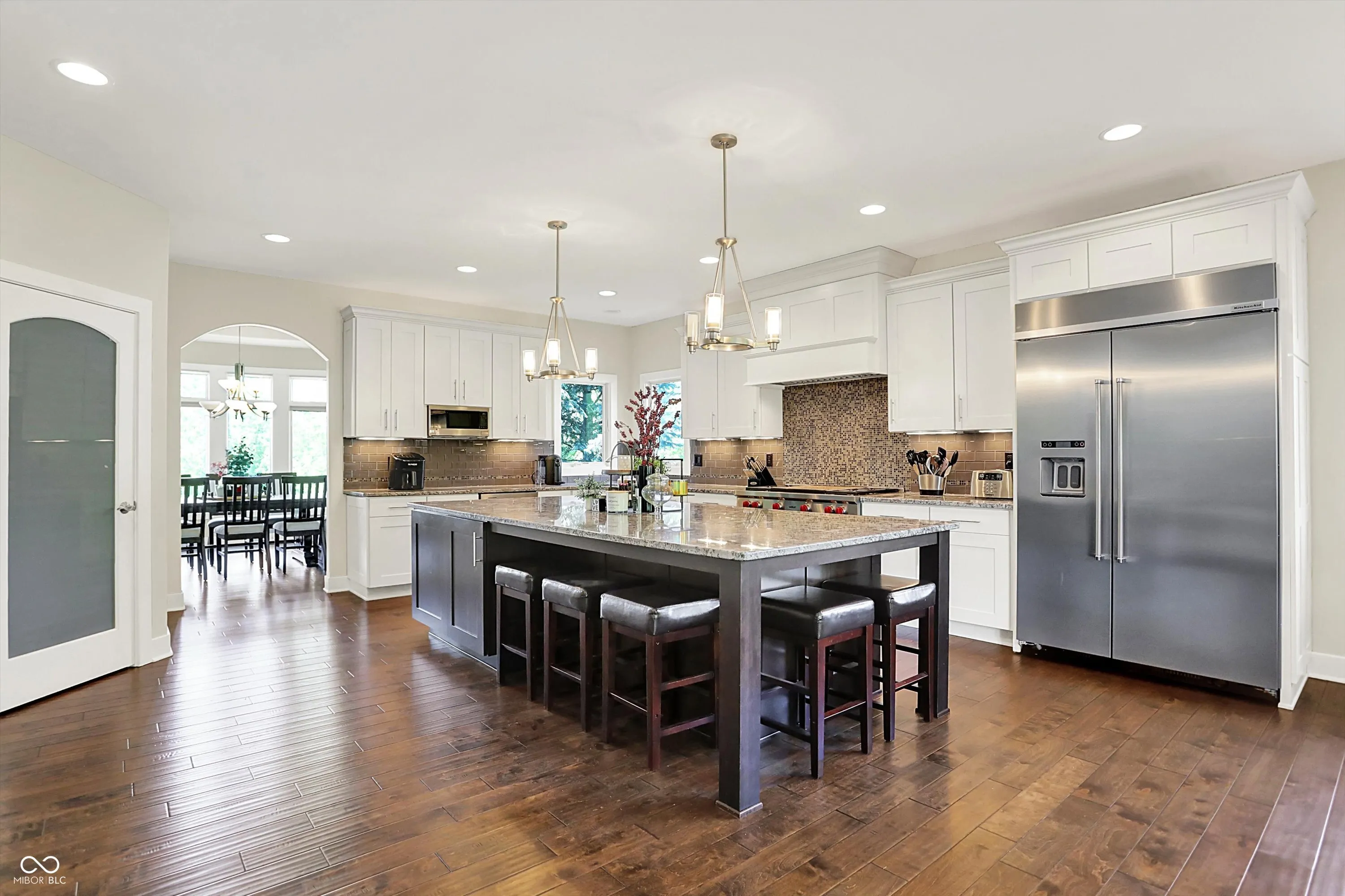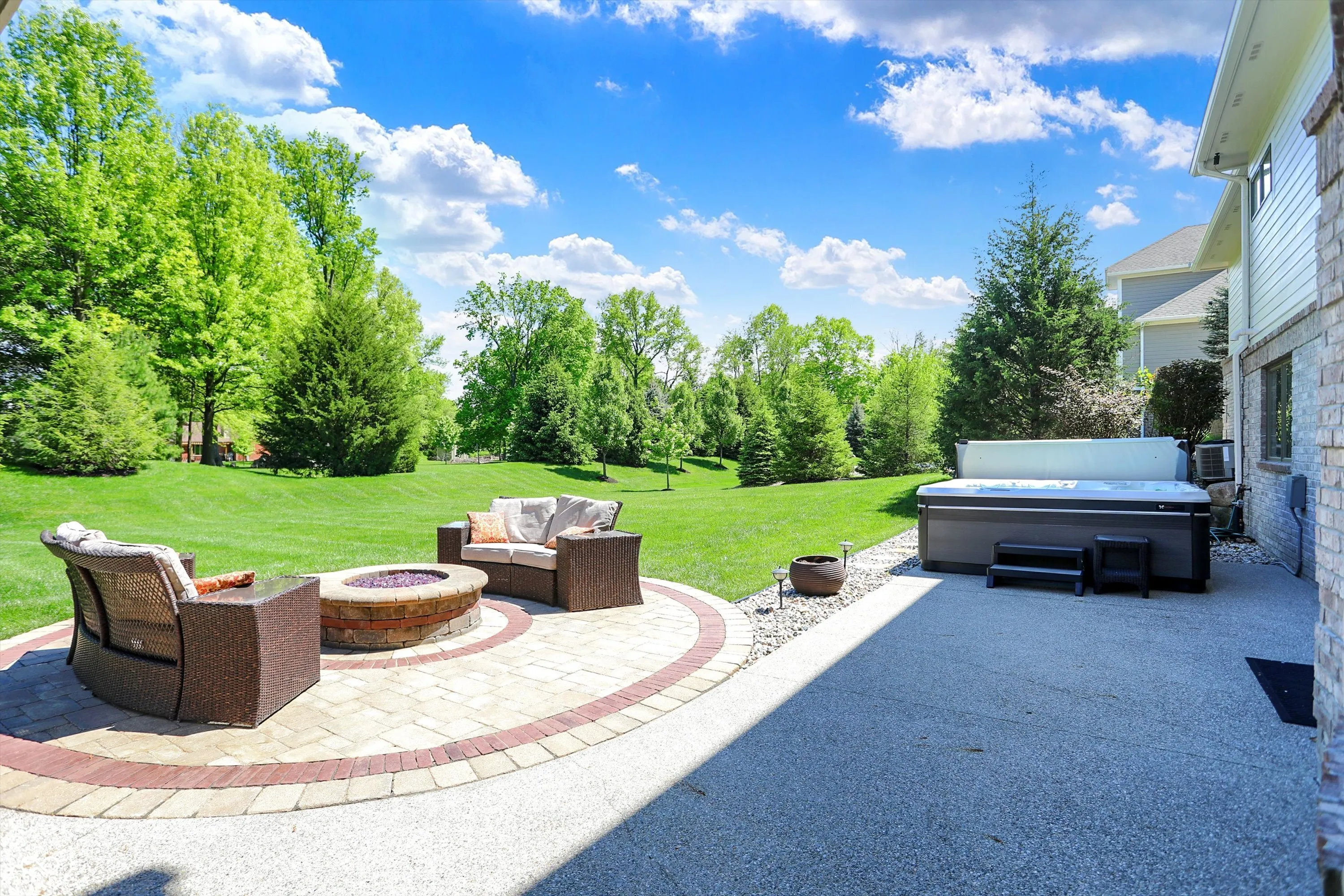 Amazing Gollner-built 5BD/5BA stone & brick custom home in sought-after Brookside! Main floor primary, huge bedrooms, tons of natural light, and an east-facing, super private, tree-lined irrigated lot-perfect for a pool. Fresh int & ext paint! Dream kitchen features Wolf cooktop, built-in fridge, and oversized island. Finished basement boasts guest suite, fireplace, step-down theater (A/V stays), and custom bar. Enjoy the sunroom, office, formal dining, and dreamy outdoor living with hot tub (negotiable), firepit, Trek deck, custom landscaping & exposed aggregate. Massive finished 4-car garage. Short golf cart ride to Bridgewater Club Country Club or community pool or Kroger!